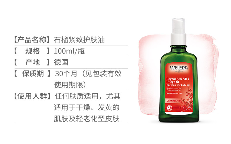 【品牌旗舰】WELEDA维蕾德有机红石榴身体按摩油SPA 护肤油100ml