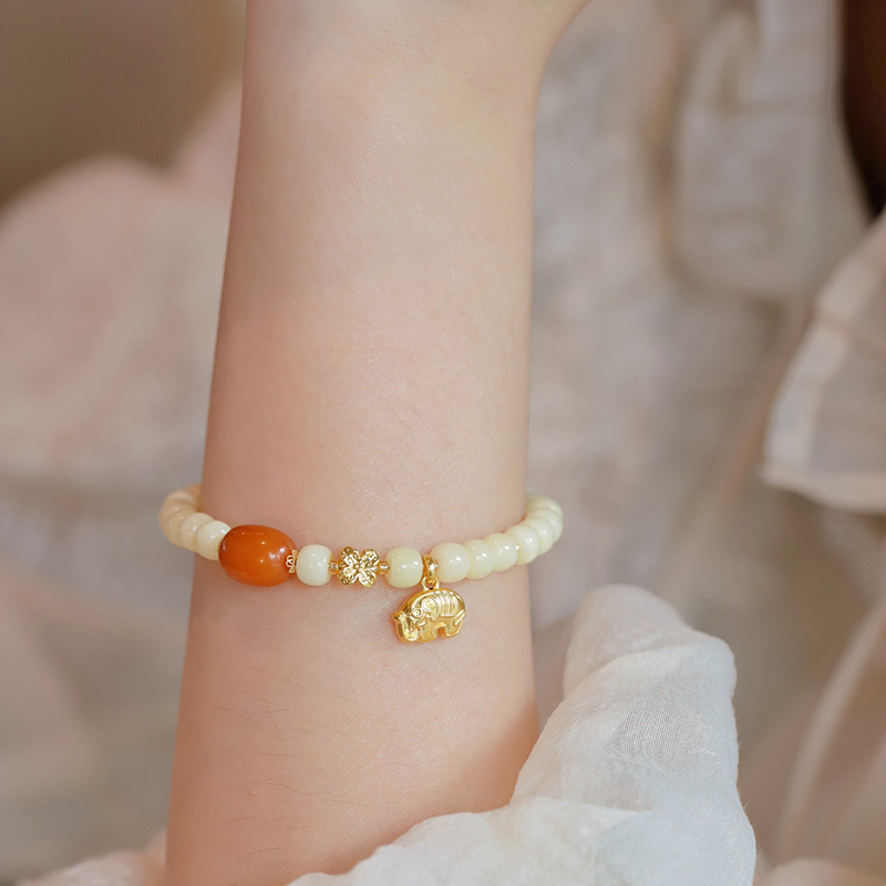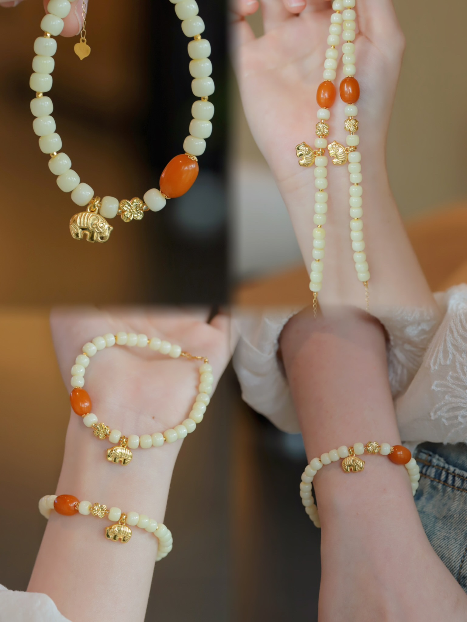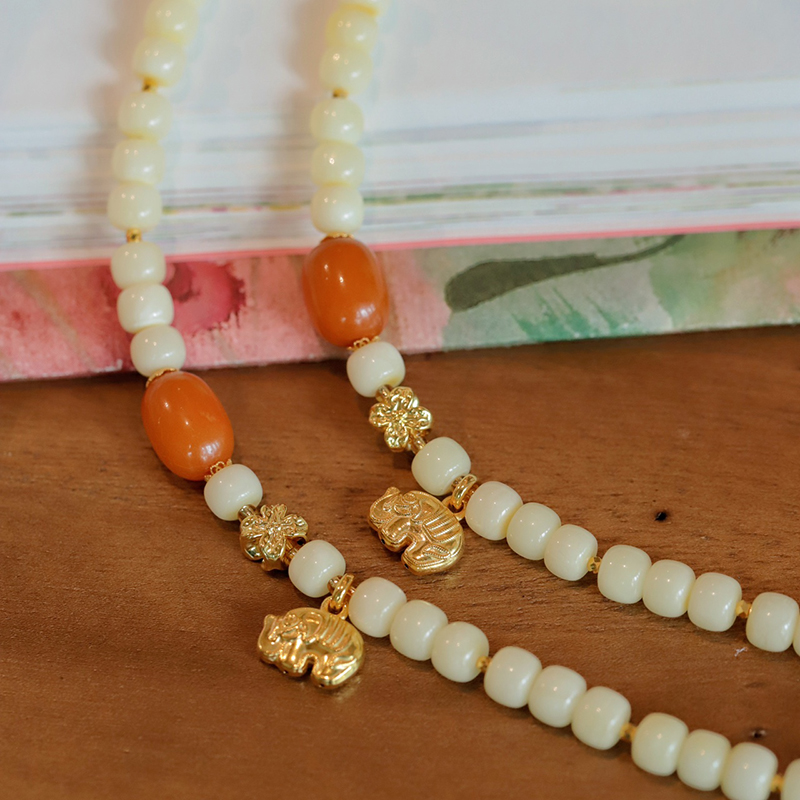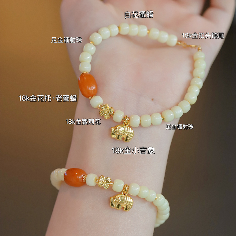 属于文玩女孩的快乐,奶黄色老型珠白蜜蜡,如漫月茶般温柔细腻,感觉能量低可以多戴蜜蜡,提升自身磁场 多静心安神 足金蹦迪珠+18k金小吉象的+18k金配件