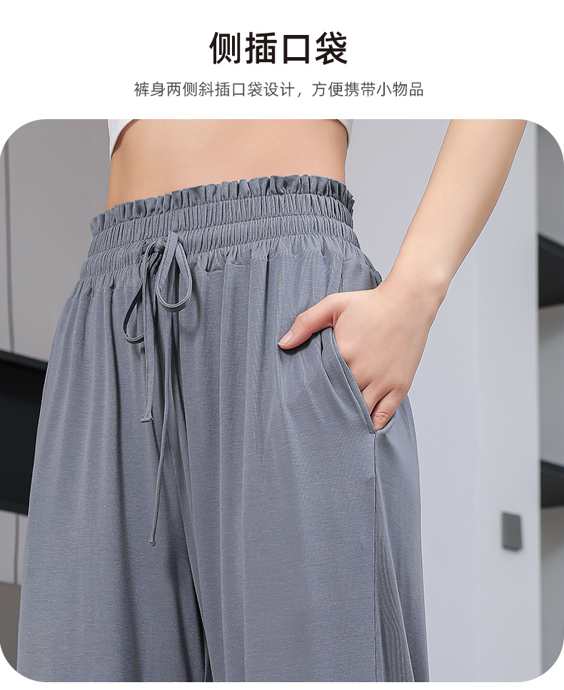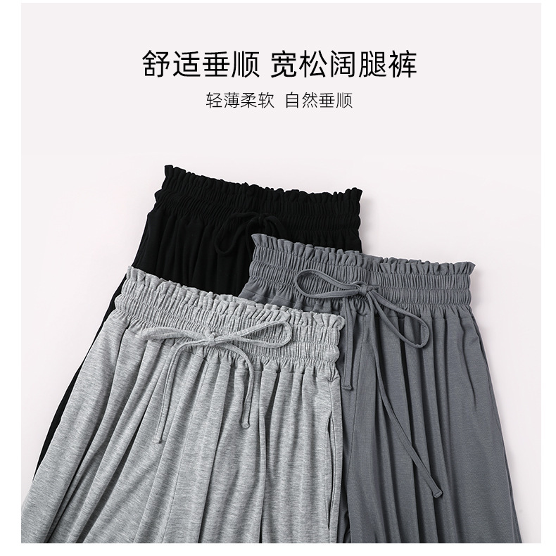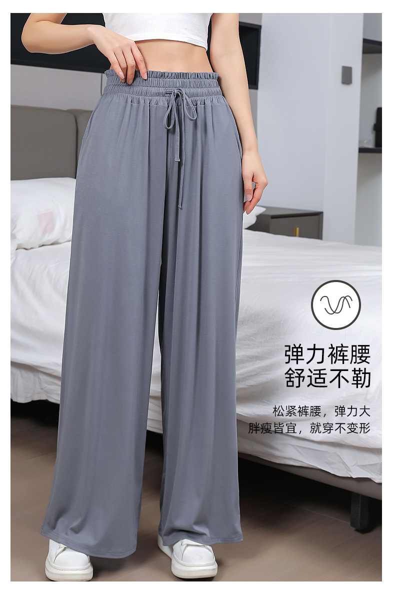 【舒适亲肤!宽腿阔腿裤】修身显瘦,松紧裤腰,弹力十足,旧穿不变形,高弹裙裤长款黑色,垂感阔腿裤薄款休闲长裤,高腰直筒裤女L