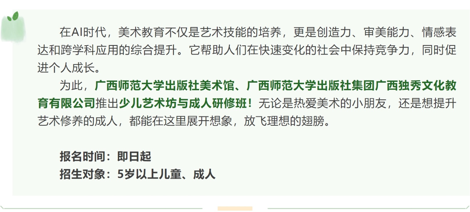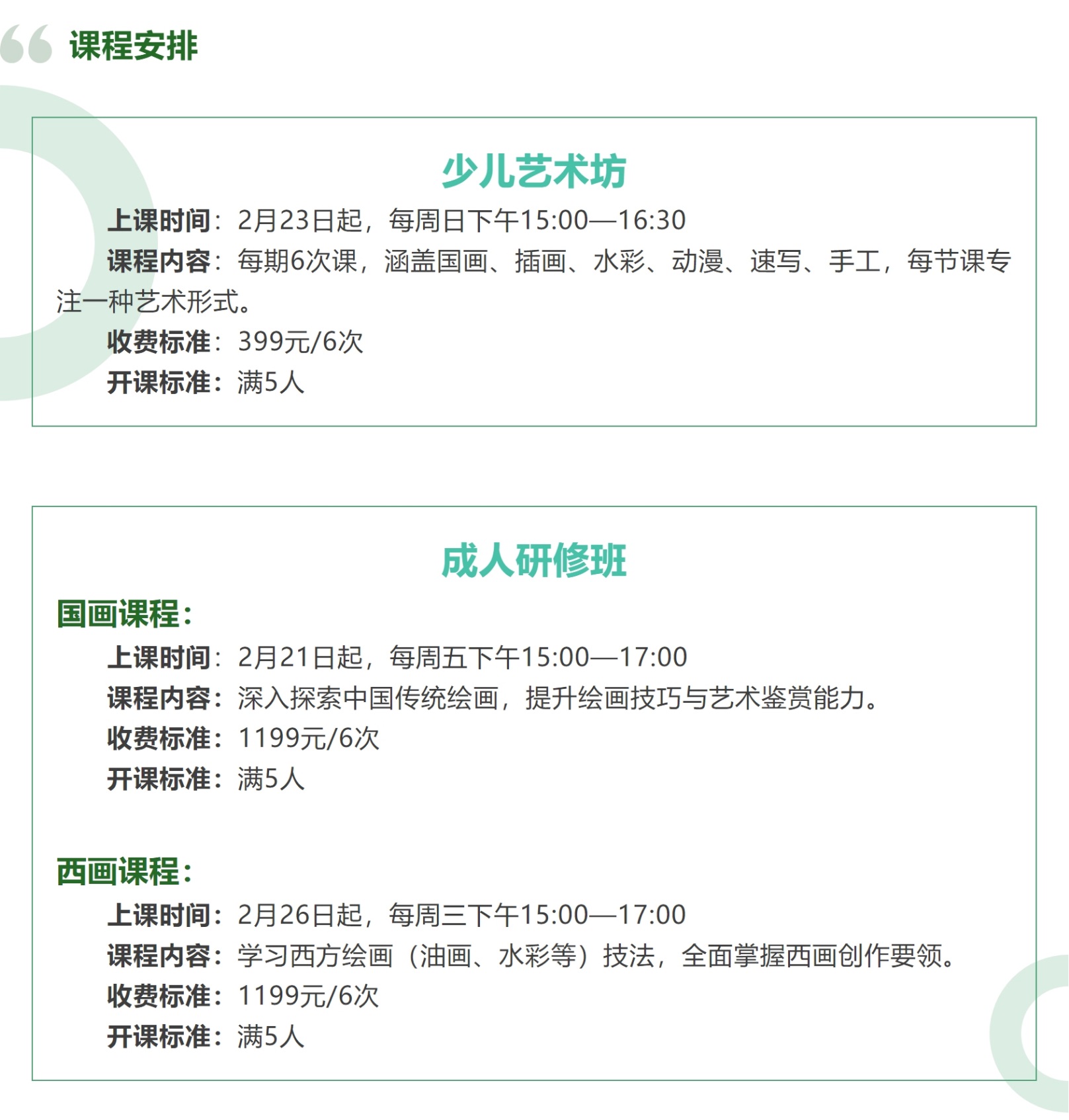 美术班 可选课程 儿童艺术坊/成人研修班(国画)/成人研修班(西画)