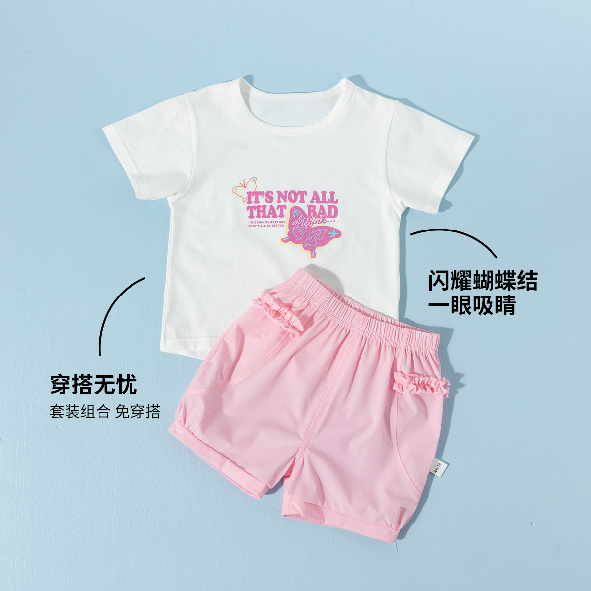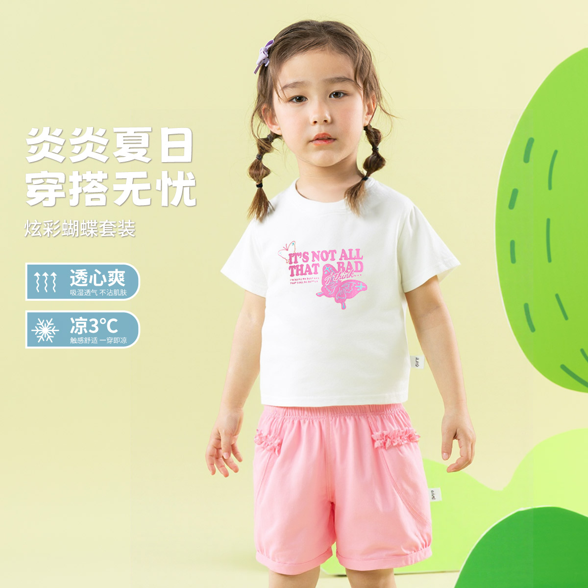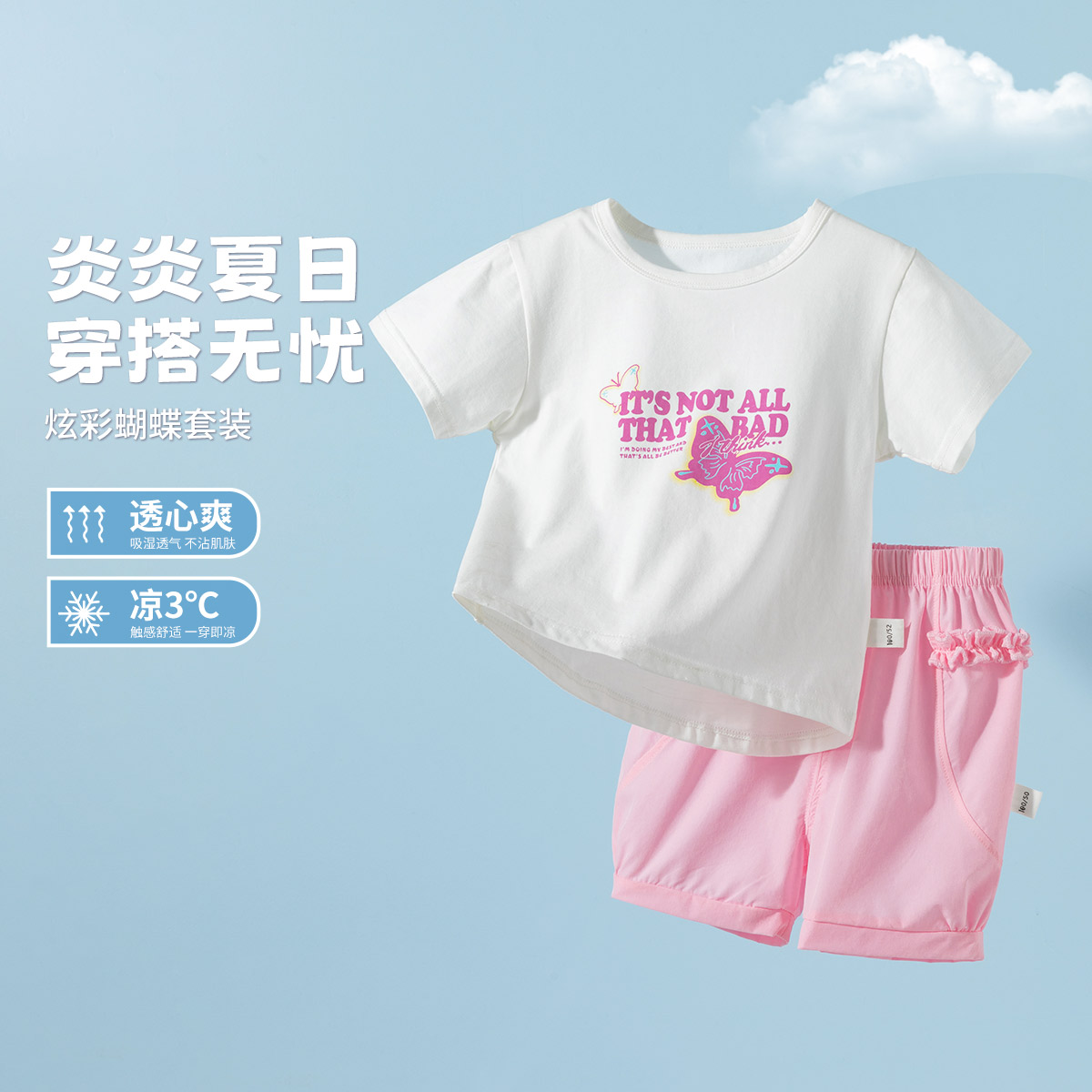 ZB2ET005贝贝怡2025夏季新款女童短袖套装中小童凉感T恤冰感短裤运动休闲两件套