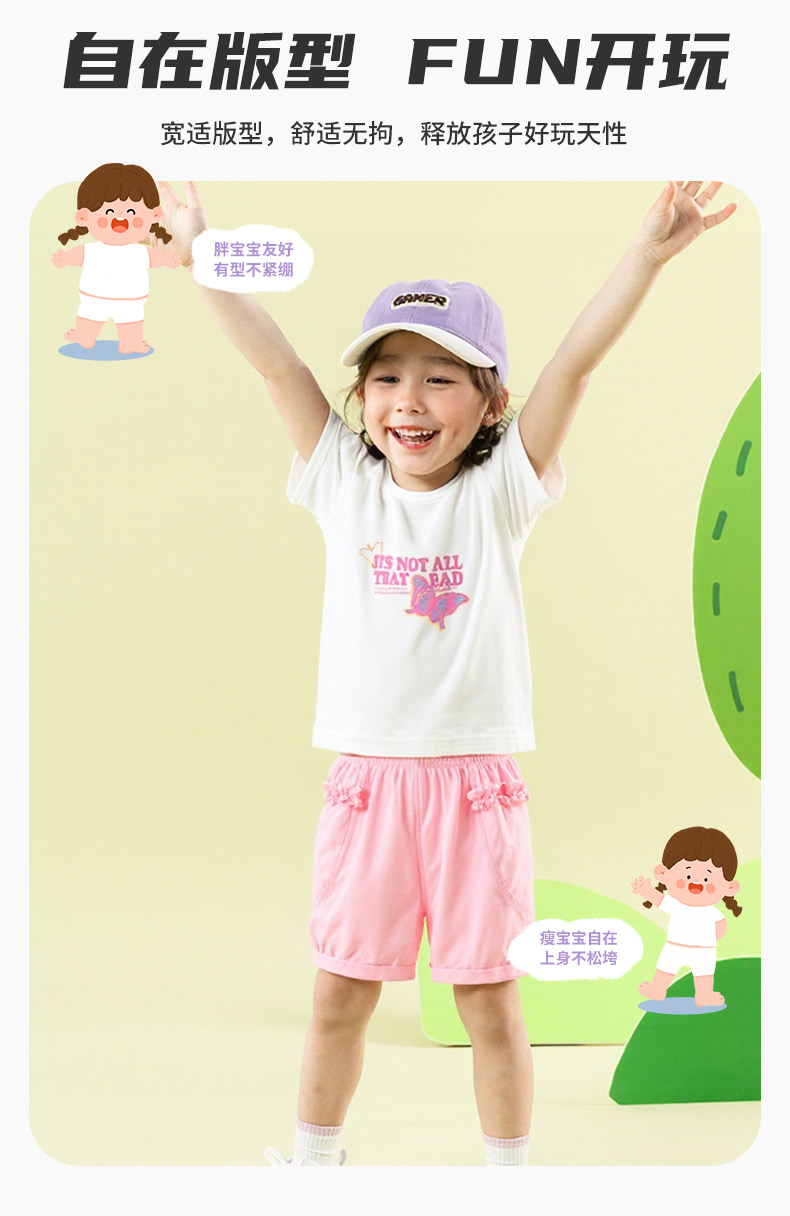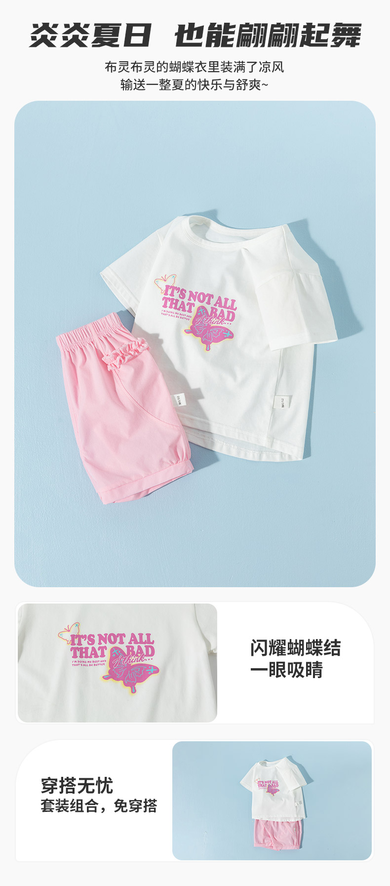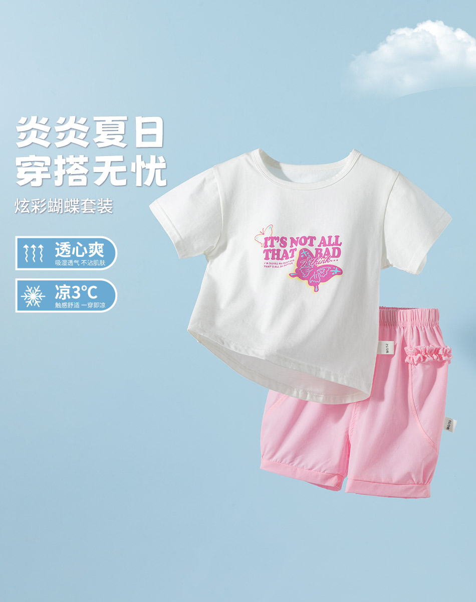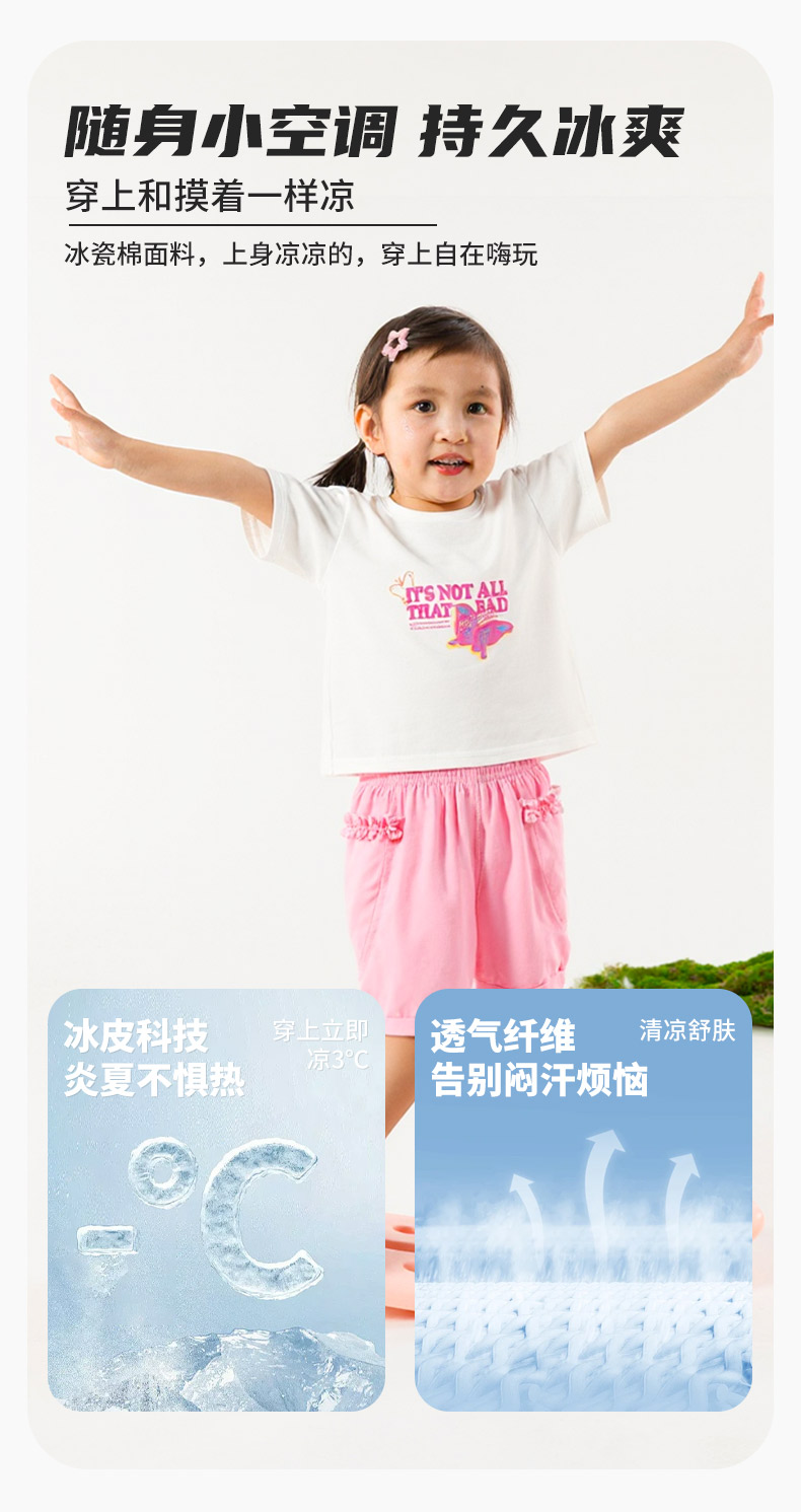 ZB2ET005贝贝怡2025夏季新款女童短袖套装中小童凉感T恤冰感短裤运动休闲两件套