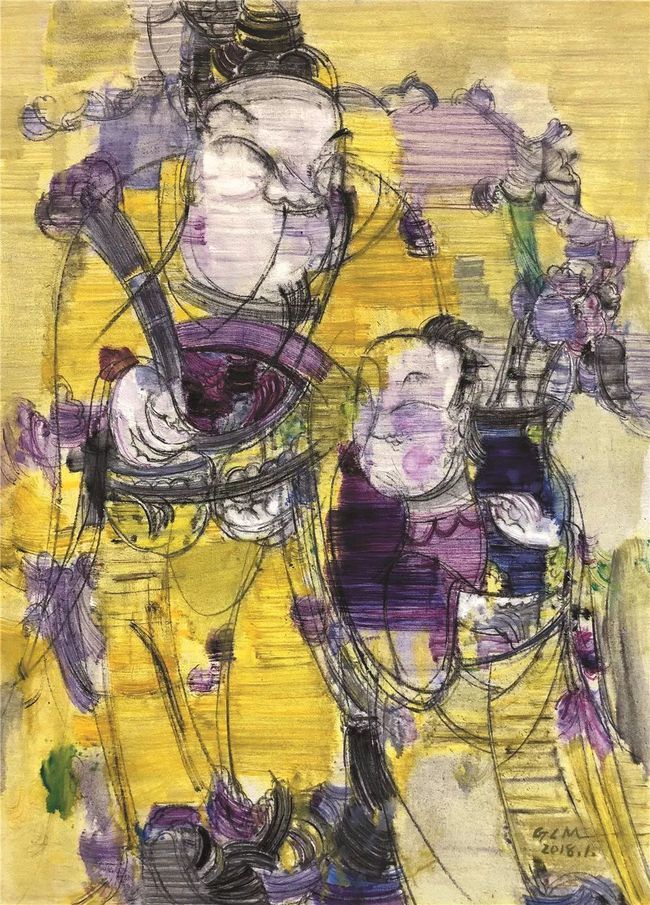 在造型上,我吸收了魏、晋及汉代人物的古朴与飘逸,又加上西方现代主义的简约与激情表现,形成传统与现在多重的交叠形象;