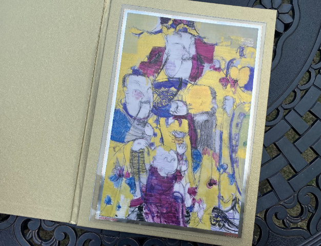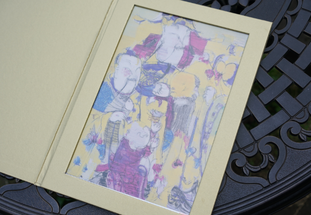 临走前,走近细看之,主人说这是年画,却不是普通人创作的,是美院教授所作,制作之式也非同一般,是“画”在999Ag足银制作的银箔上的,单单银箔重量就有20克;