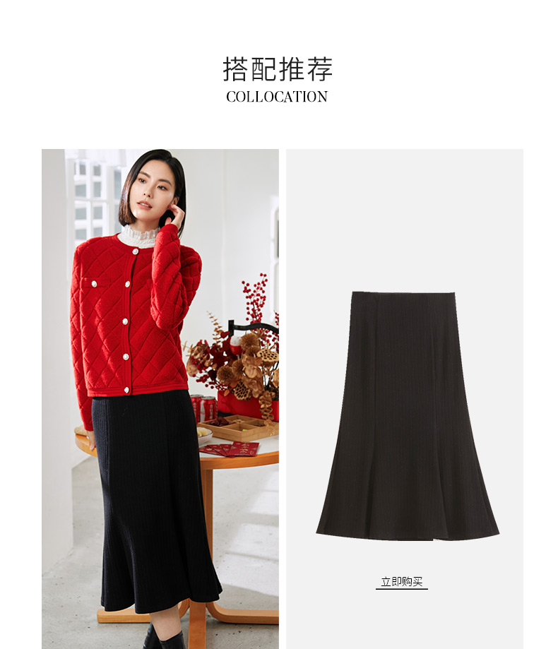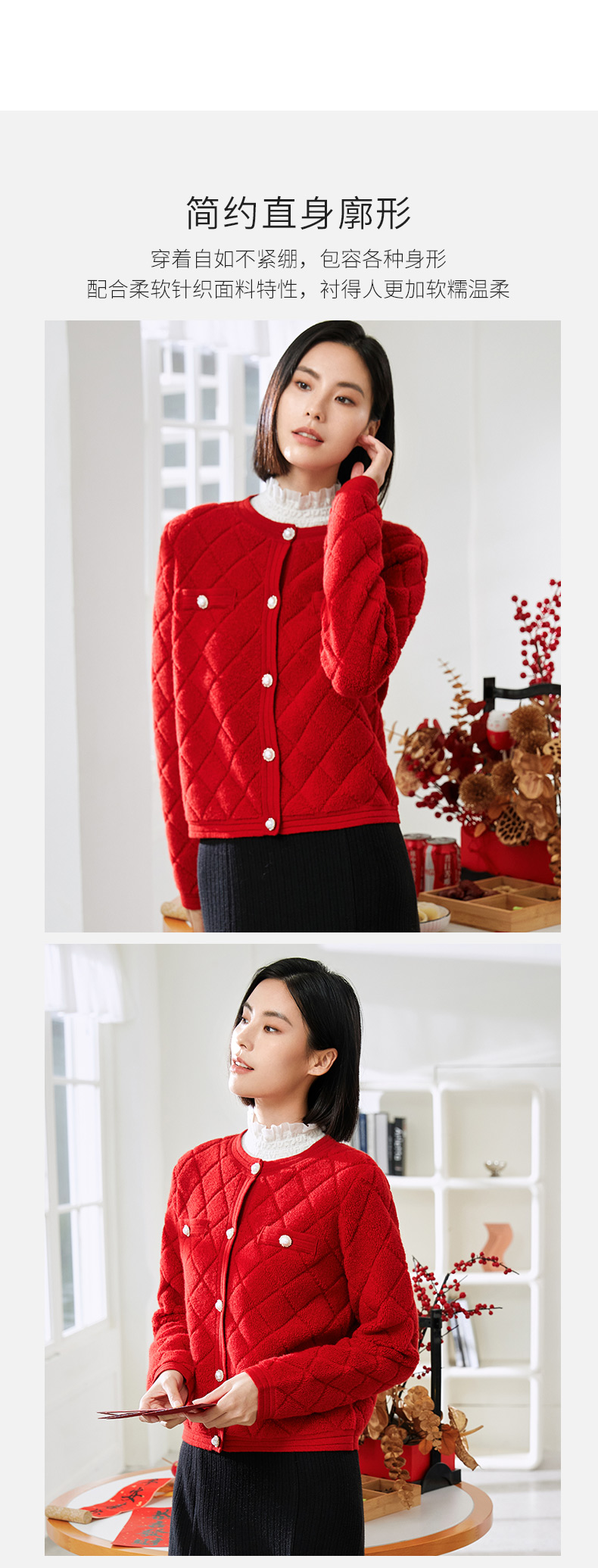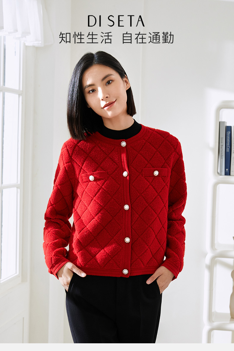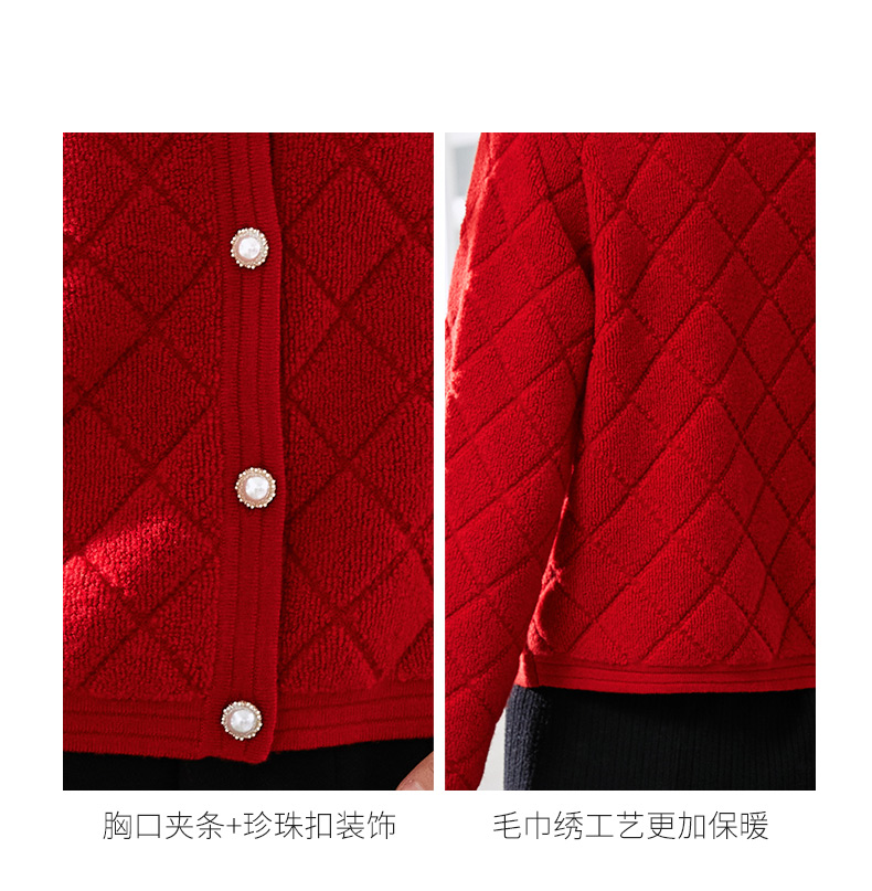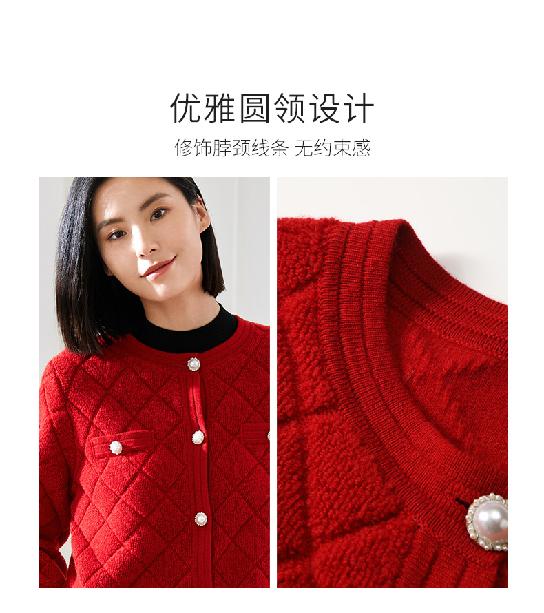 玳莎红色氛围感小香风针织开衫女秋冬新款优雅毛巾绣圆领毛衣 DD33317