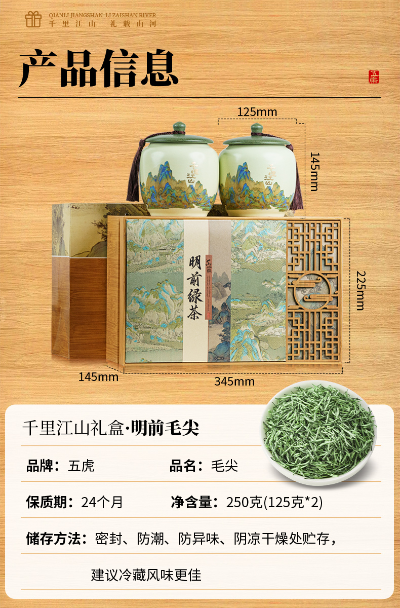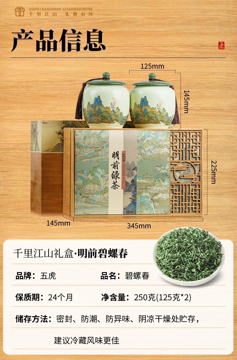 【年货茶礼】茶叶 碧螺春 龙井 毛尖 绿茶 春茶 茶叶礼盒 茶饮 五虎 250g