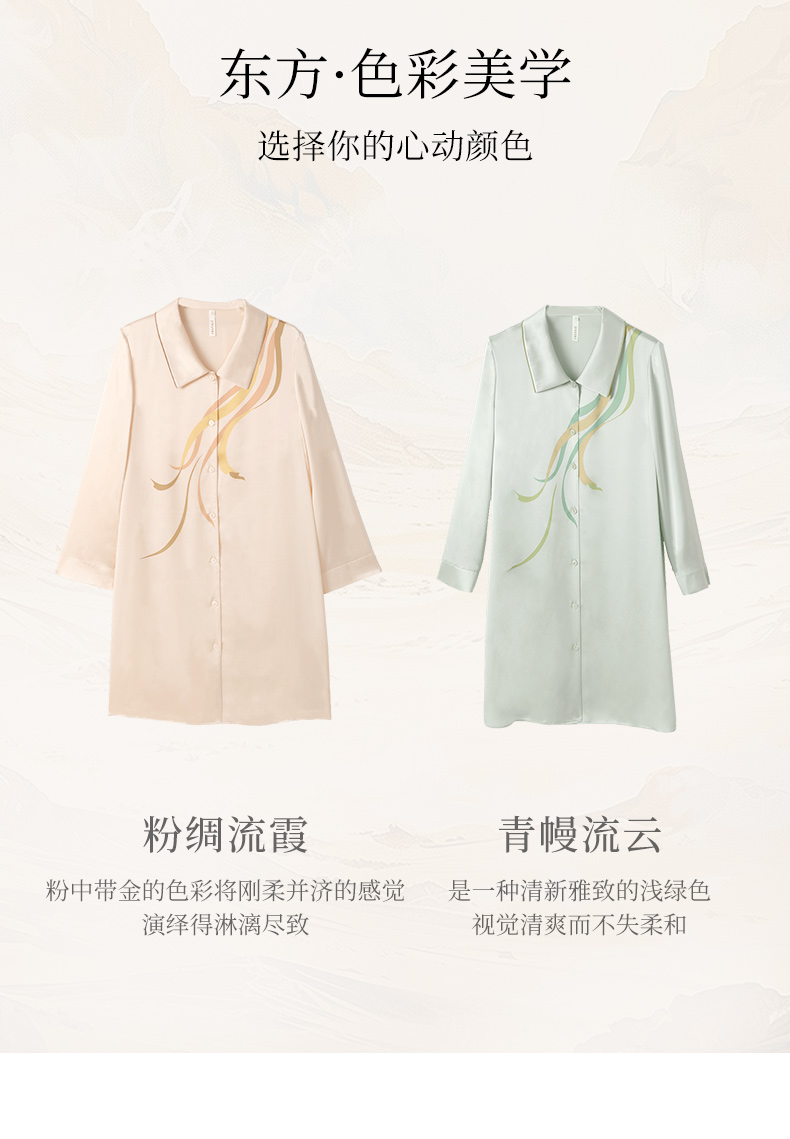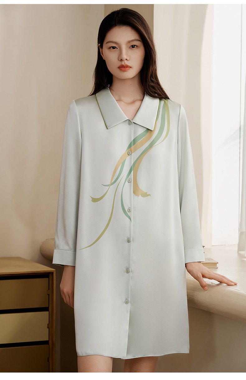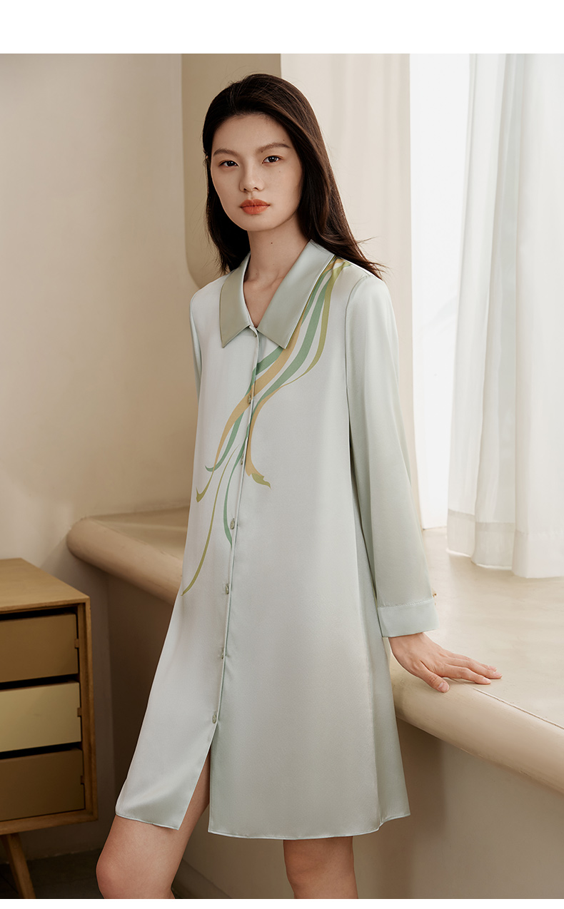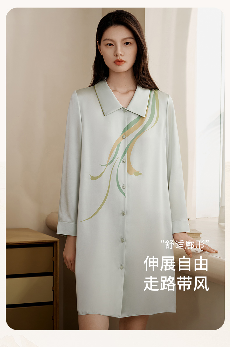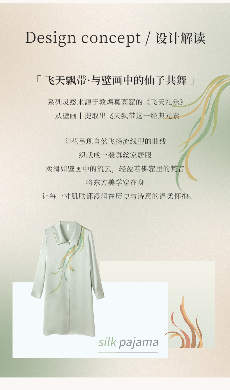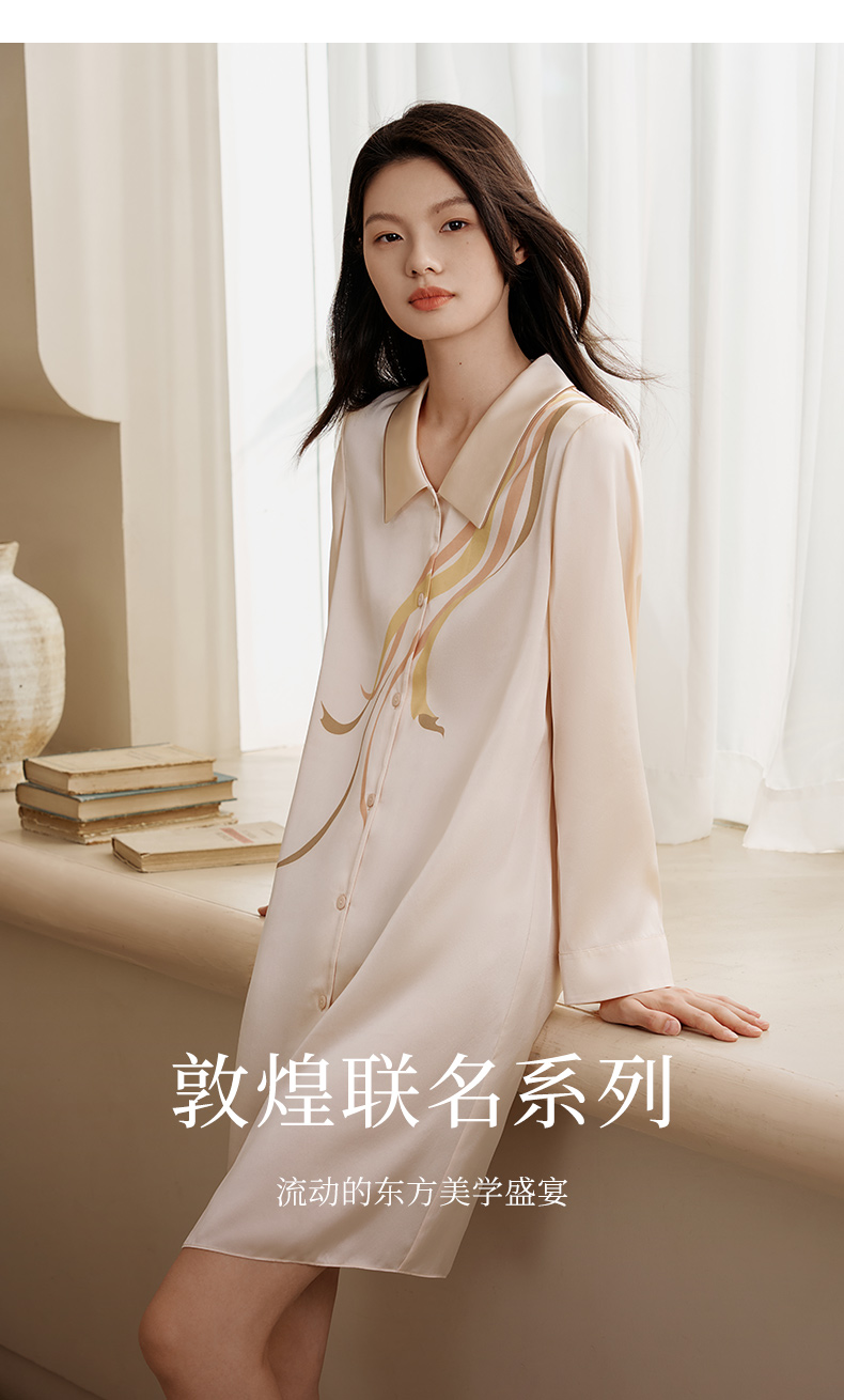 金三塔敦煌联名重磅真丝睡裙女100%桑蚕丝印花宽松睡衣家居服新品 YSFFC301