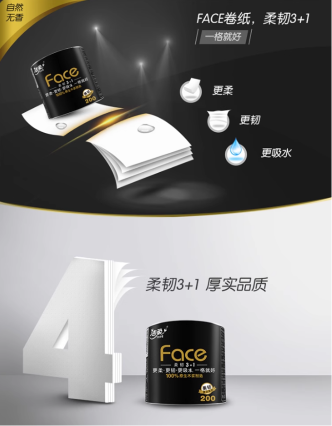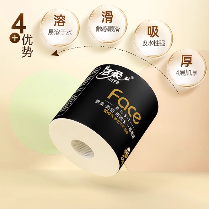 洁柔4层卷纸200g单卷