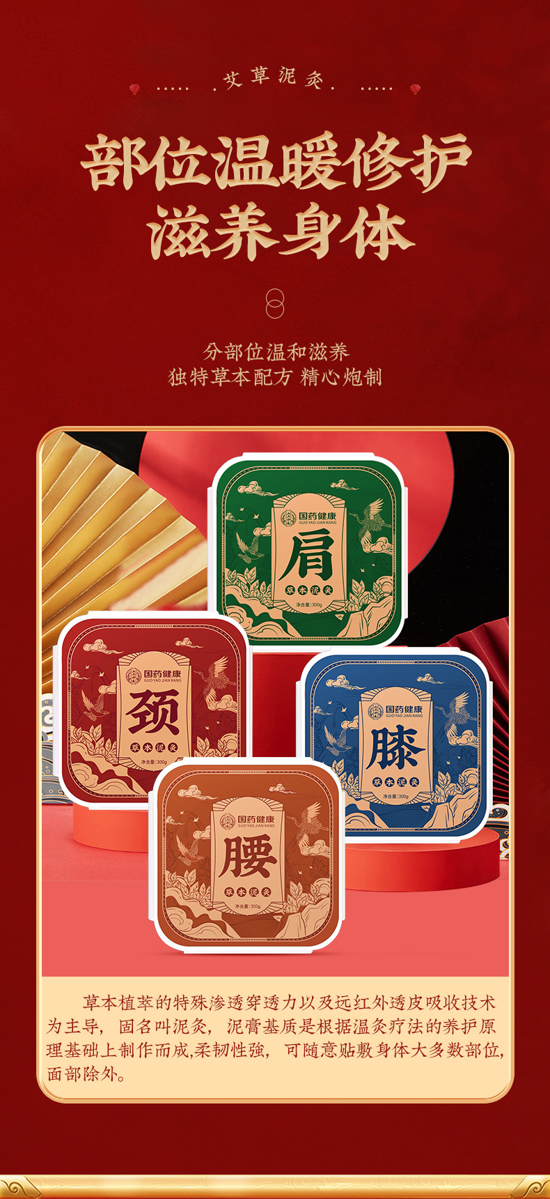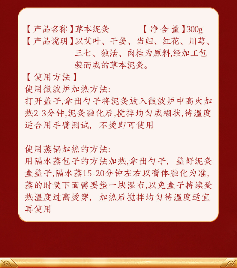 【草本配方❗️国药健康艾草热敷泥灸】甄选艾草 川穹 干姜 当归 三七 独活 红花 肉桂等!膝盖关节发热泥灸颈肩腰膝热灸膏温灸膏
