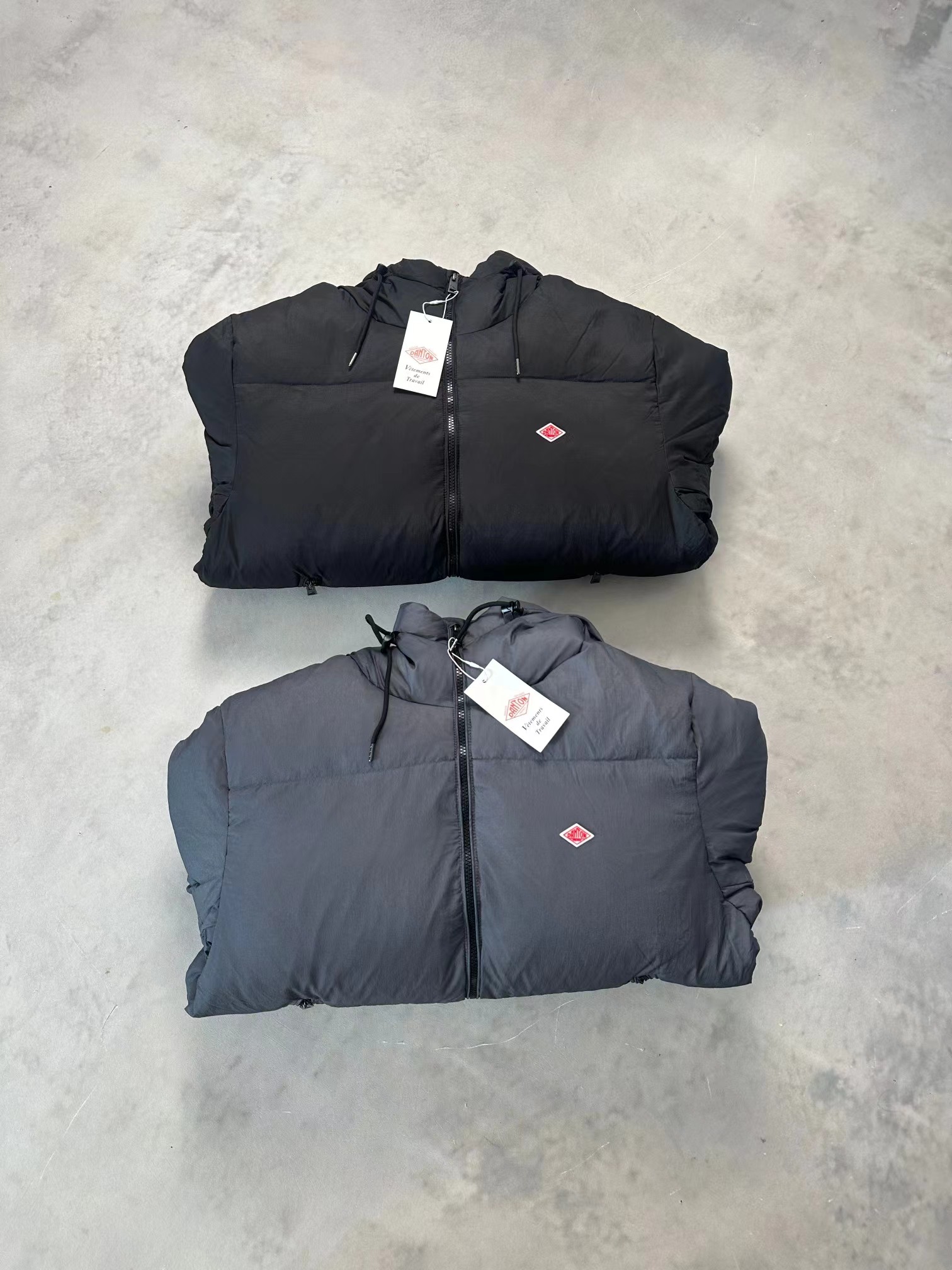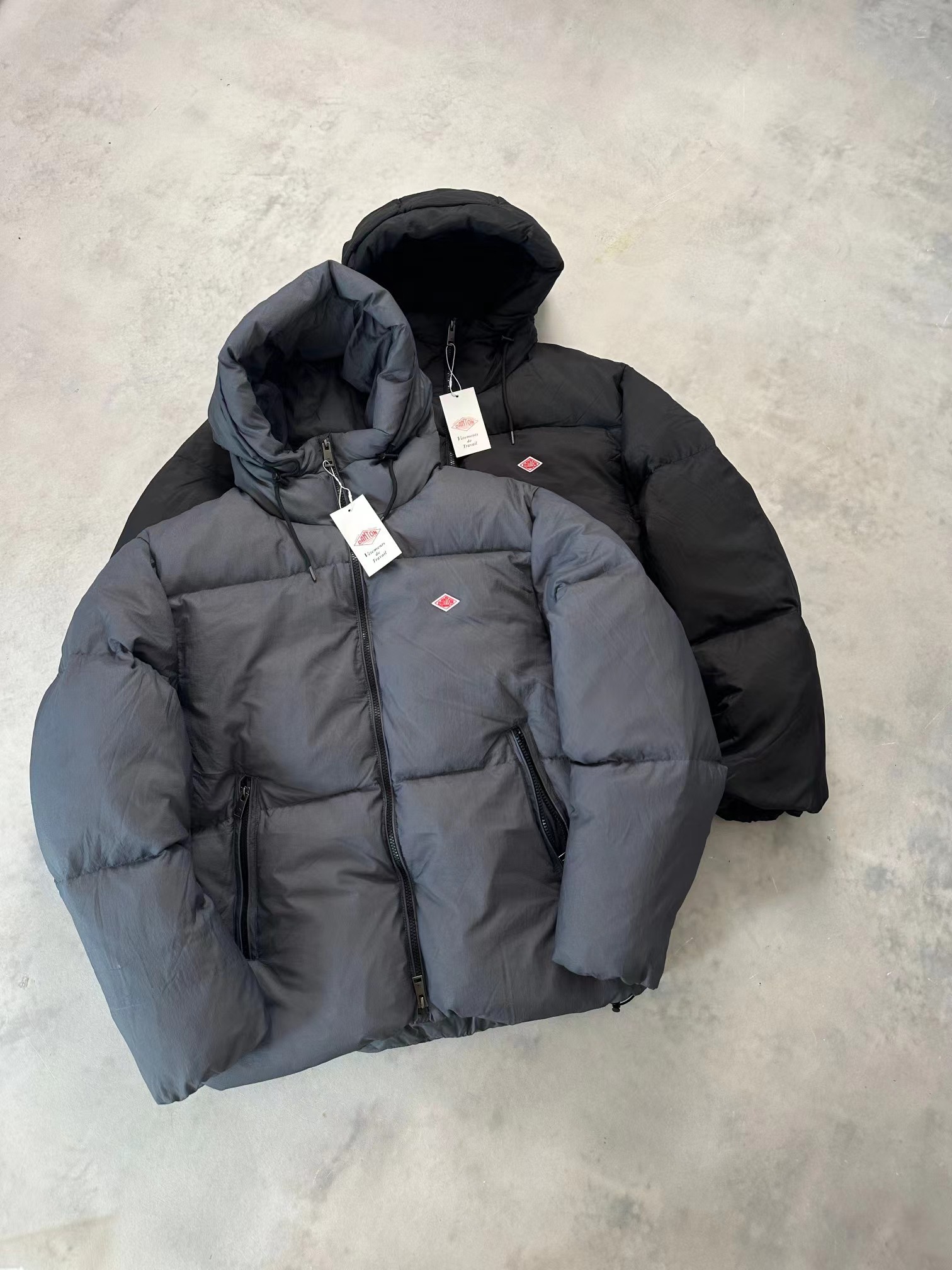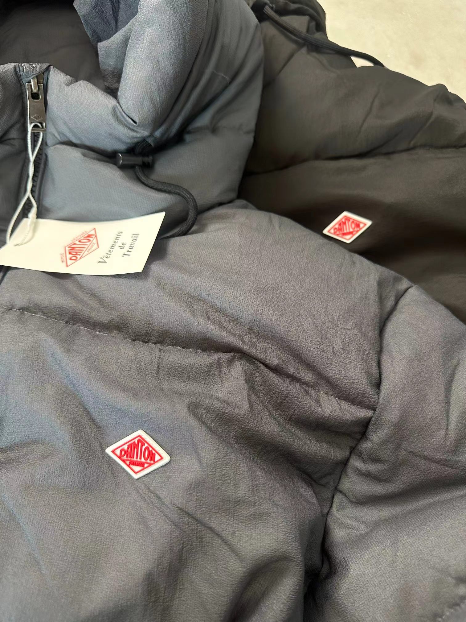 羽绒服因轻量化设计和受到欢迎,适合叠穿且不显臃肿! Danton 连帽拉链徽标羽绒服 标志性的菱形徽标超有辨识度 超薄尼龙10d面料,填充220克90白鸭绒, 蓬松度600加,非常保暖。男女同款!