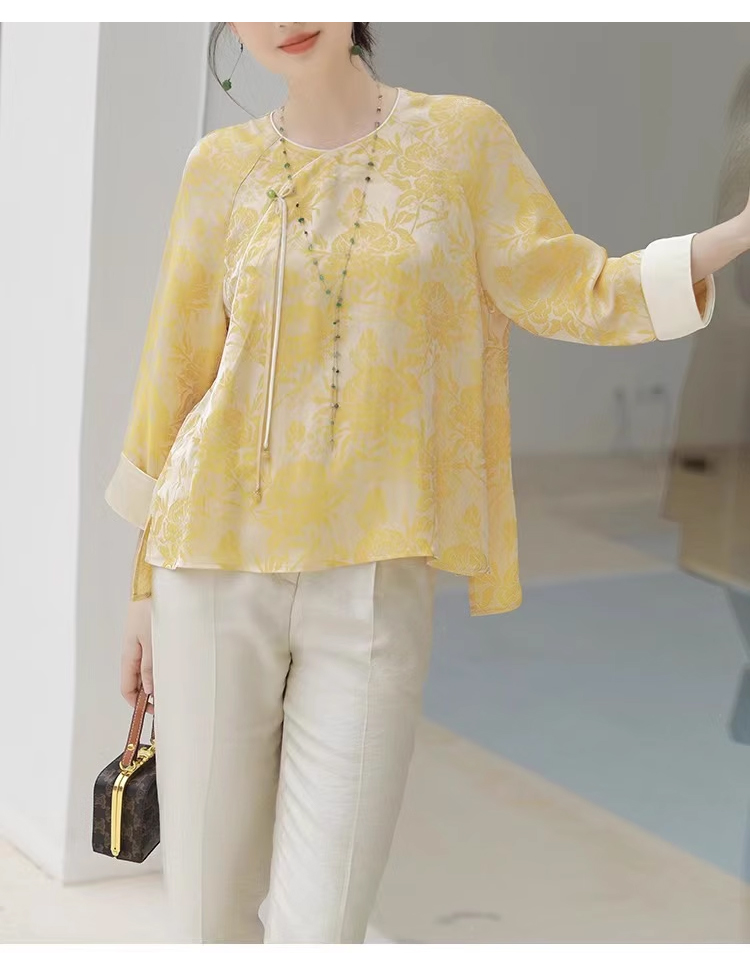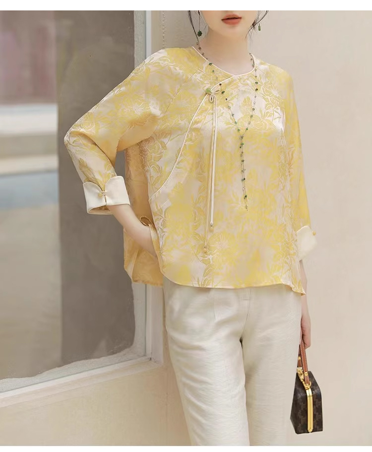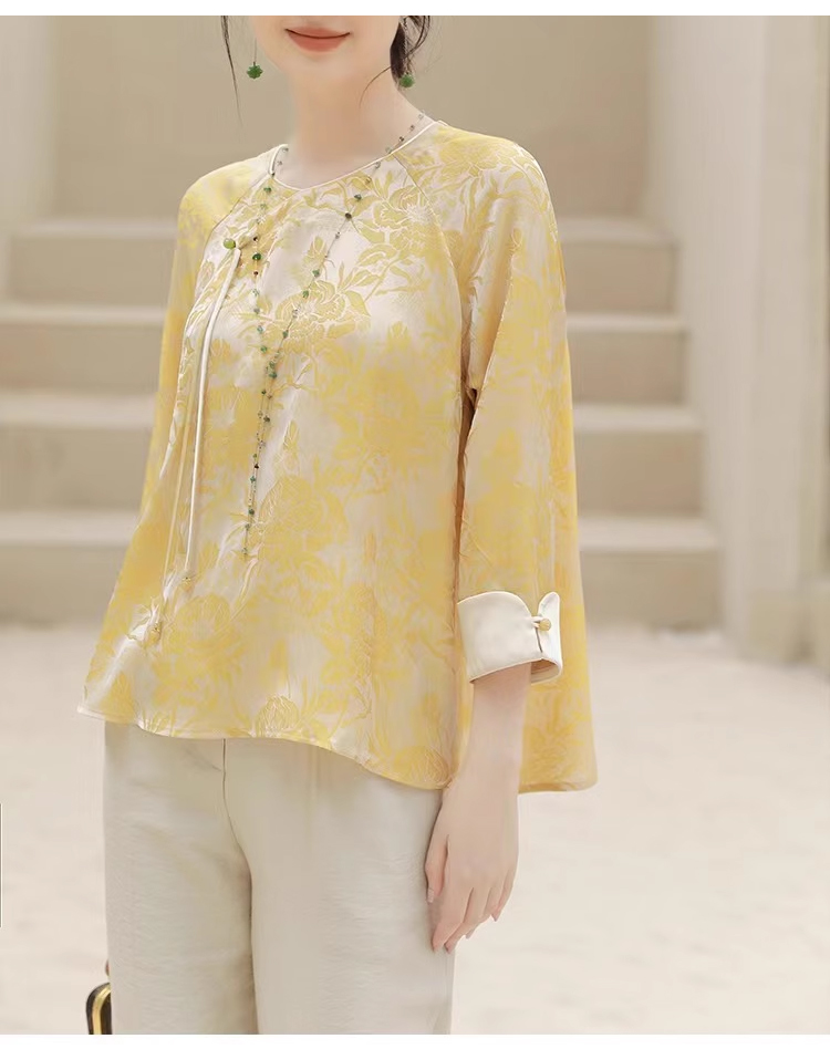 裁缝学苑AQ246春夏新中式国风女装人丝提花唐装旗袍式上衣宽松禅意茶服文艺衬衫