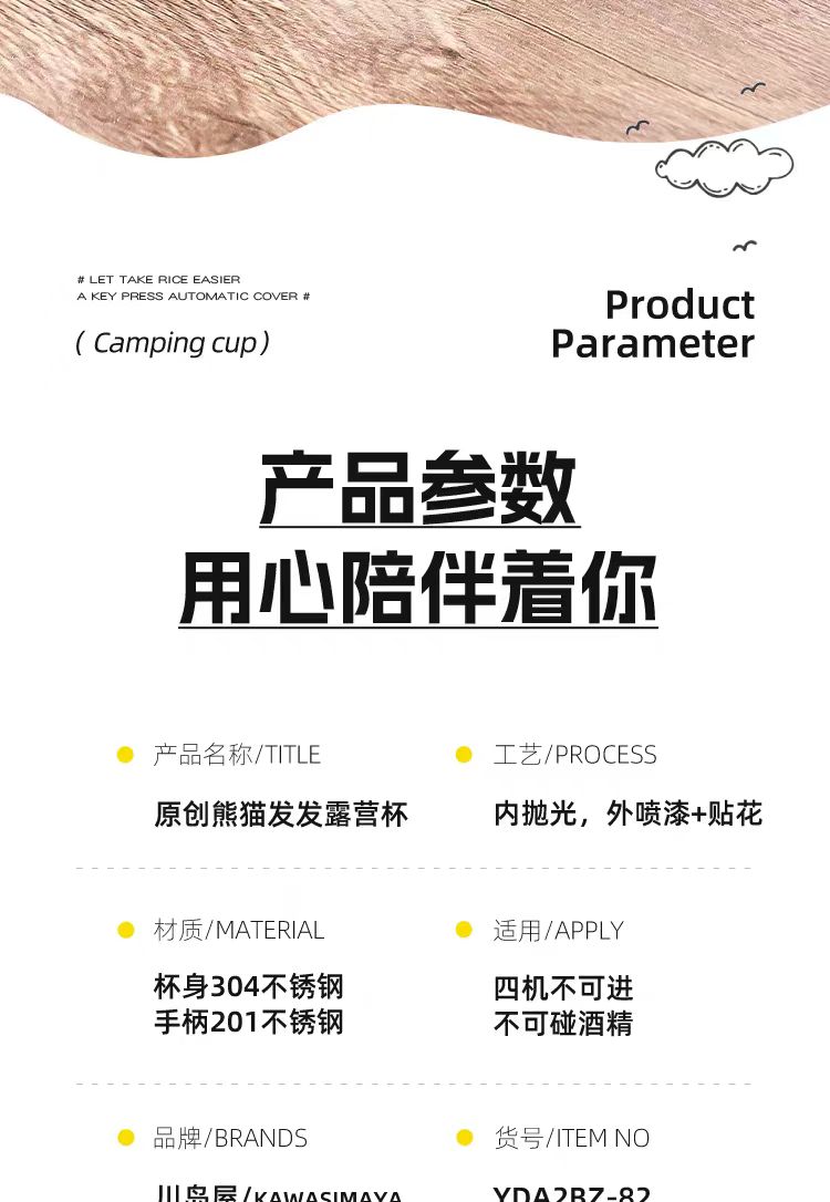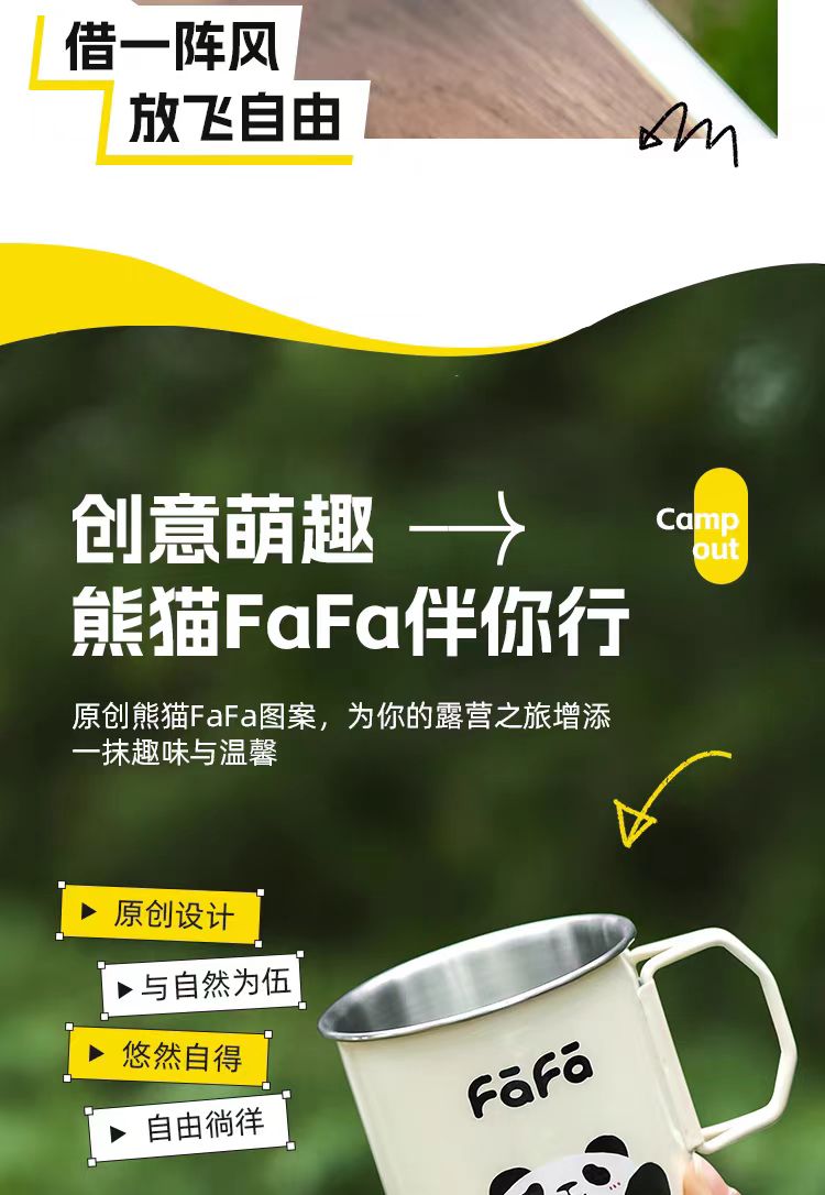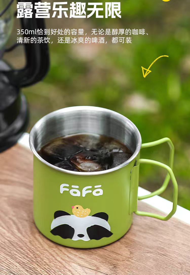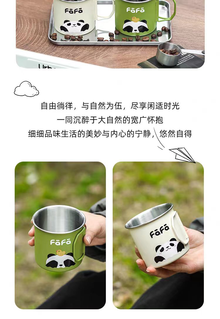 4楼Eubelle欧蓓 川岛屋熊猫不锈钢咖啡杯350ml 户外露营马克杯 活动价:22.8元