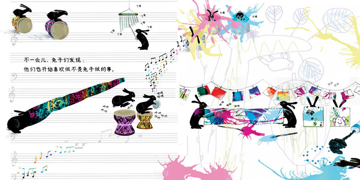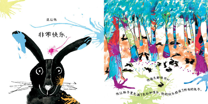 《兔子喜欢做的事》是广西师大出版社魔法象图画书王国推出的作品之一。 这是一只与众不同的大兔子。他不但喜欢做兔子做的事,譬如蹦蹦 蹦、跳跳跳、捻捻胡须、揉揉耳朵……还喜欢做不是兔子做的事,比如画画、玩音乐。他每天都很开心,他让林子里充满了色彩和音乐,他的快乐感染了所有的兔 子。有一天,大兔子突然消失了,兔子们到处找不到他,非常难过,林子里变得灰蒙蒙的。但没多久兔子们在一个又黑又深的洞里发现了大兔子留给他们的礼物,于 是兔子们也喜欢上了玩色彩和音乐,重新开始了快乐的生活。 《兔子喜欢做的事》通过清浅的文字讲述了一个看似童趣天真,却耐人寻味再三的故事,有着音乐的悲痛与凄美,用艺术的力量丰富着孩子的美感体验、想象力与创意,直至生命的远方。 |