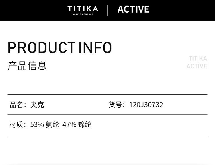 - 2009年,Titika Active Couture诞生于北美时尚之都,重新定义运动服饰,让运动时尚,前卫、性感,更宣扬一种无畏自由的生活态度。TITIKA缇缇卡不断求变,为品牌添加多种元素