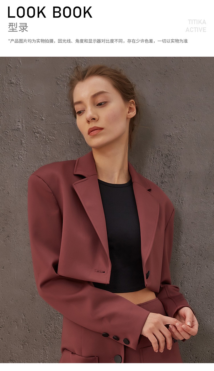 【仅剩xs/s码】TITIKA瑜伽运动休闲外套修身短西服长袖健身上衣女120J30732