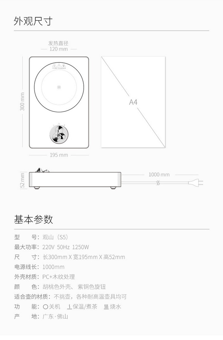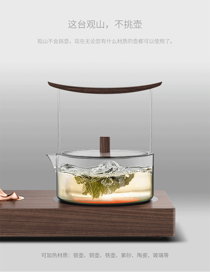 【禅意开关,化繁为简】观山壶电陶炉煮茶器, 迷你陶瓷玻璃泡茶家用