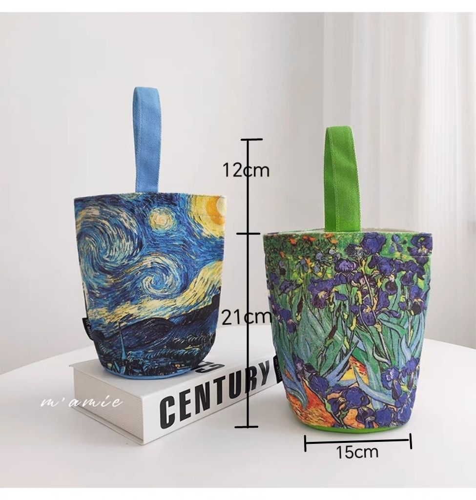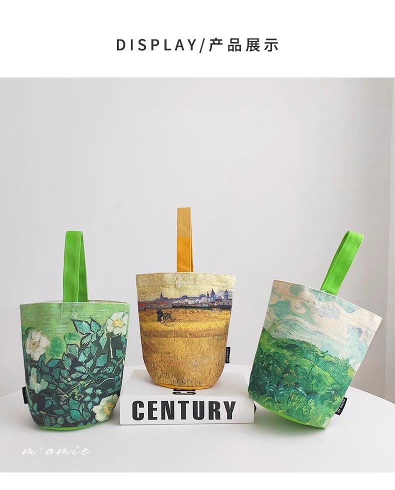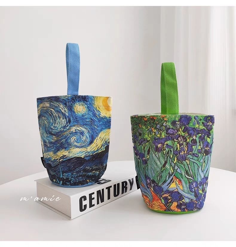 梵高绘画水桶包随身小手提包妈咪包外出手拎包上班便当包