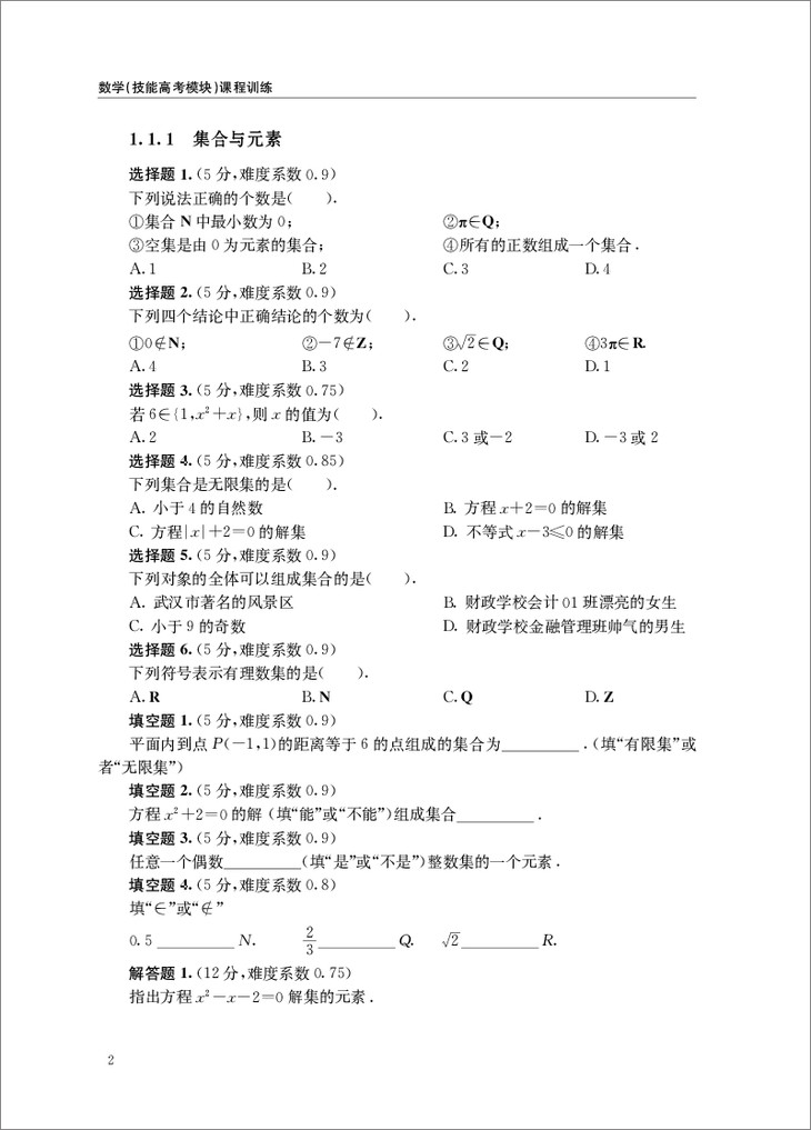 【正版现货】数学(技能高考模块)课程训练 武汉市财政学校课程训练体系丛书 中国建材工业出版社
