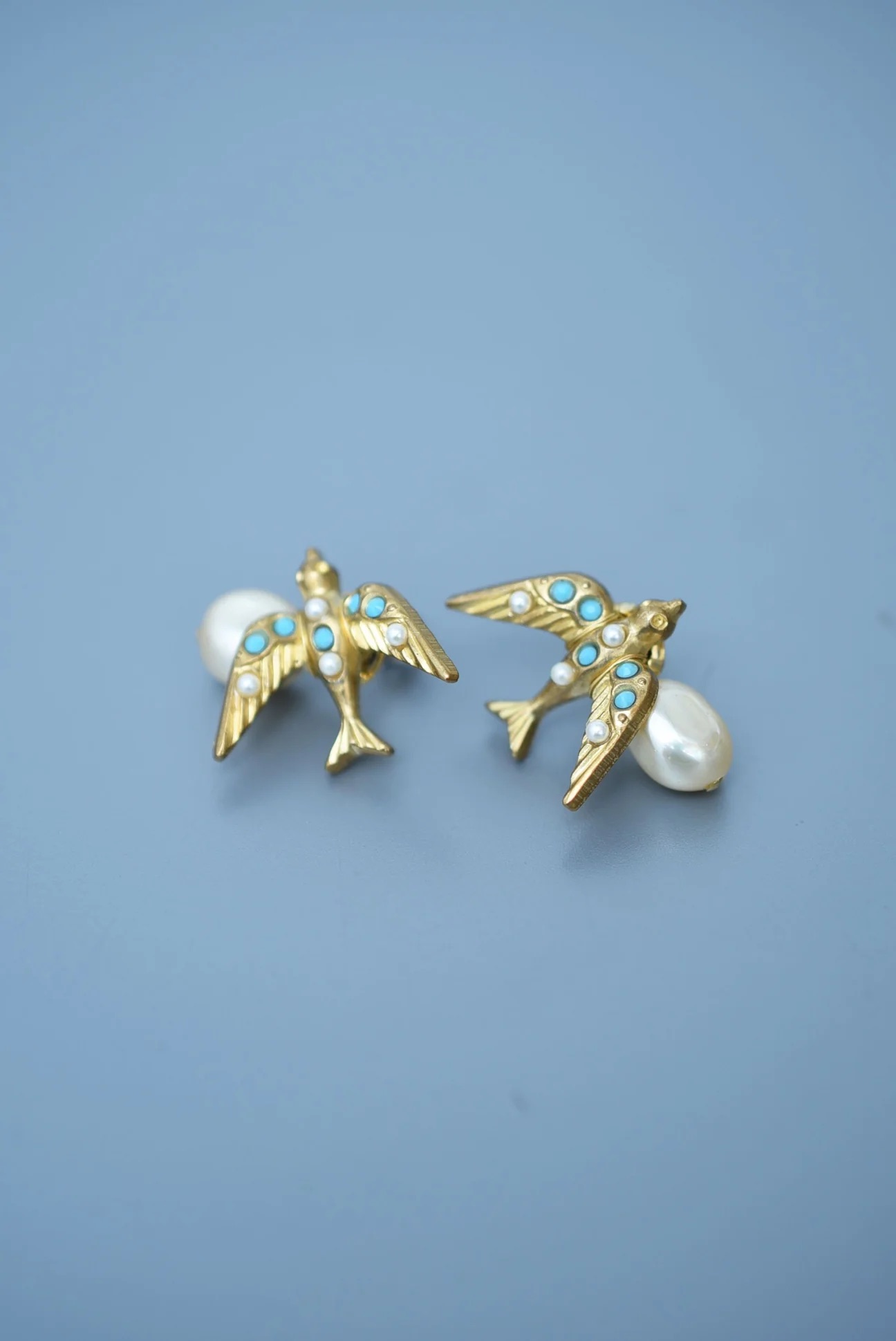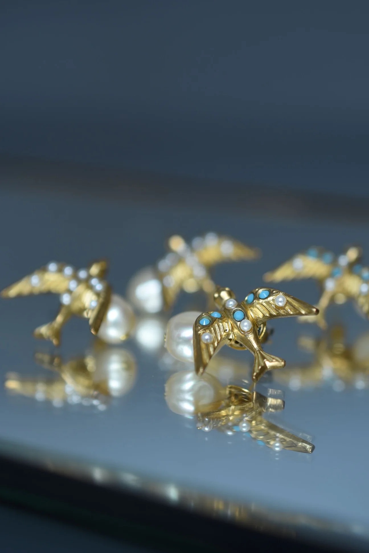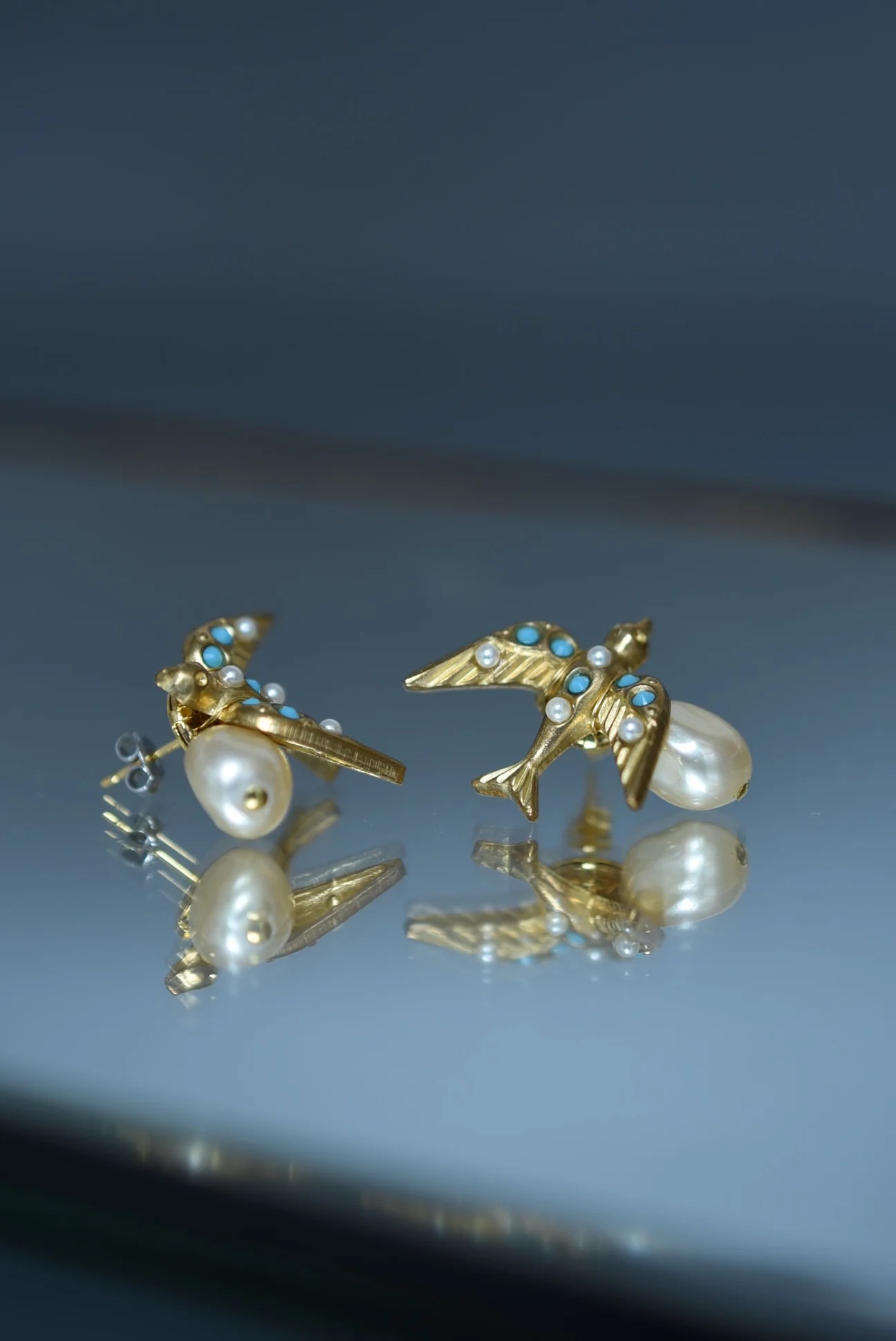 北京仓|Monshiro-TSUGUMI-鸟儿 绿松石 耳环[日本设计师]