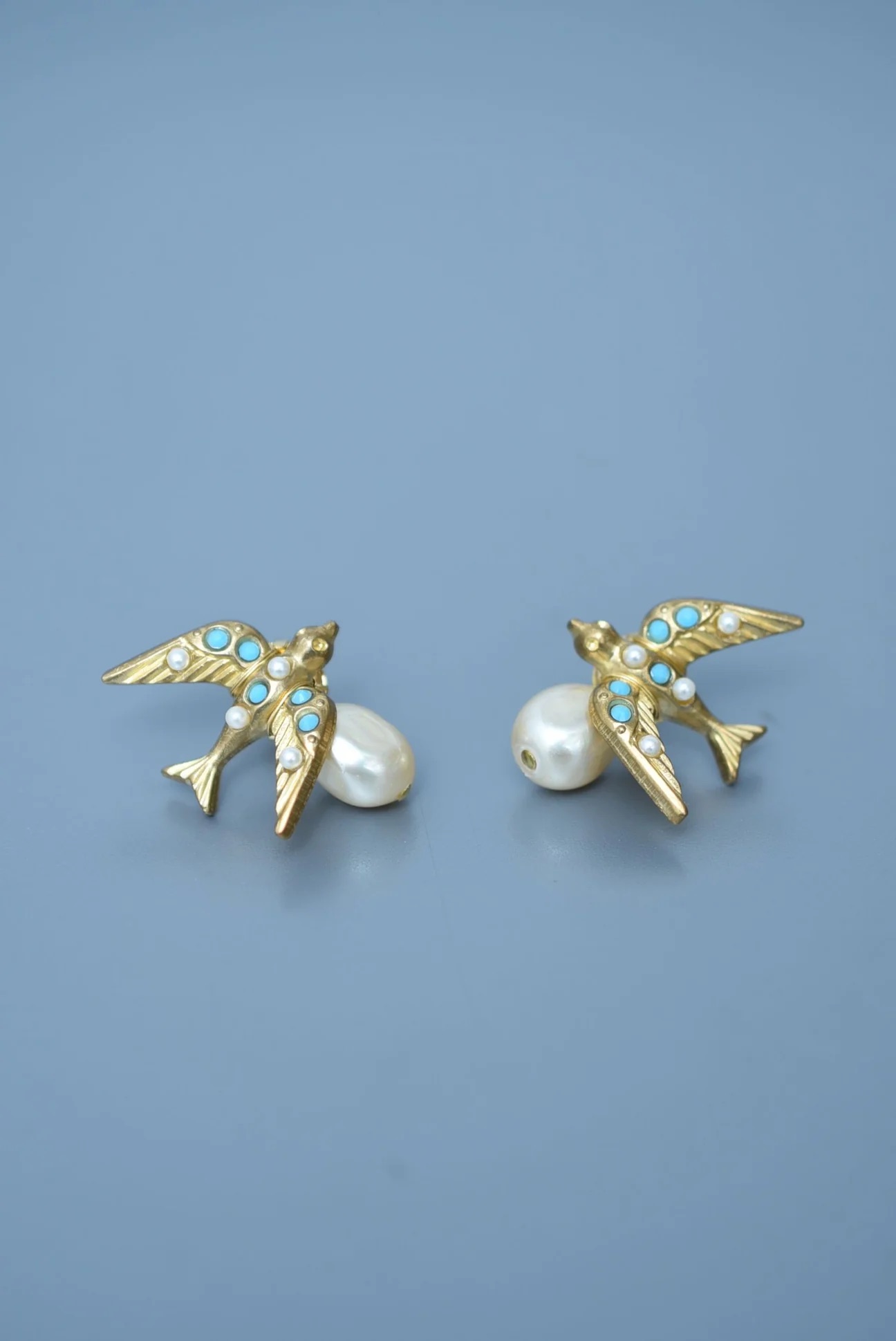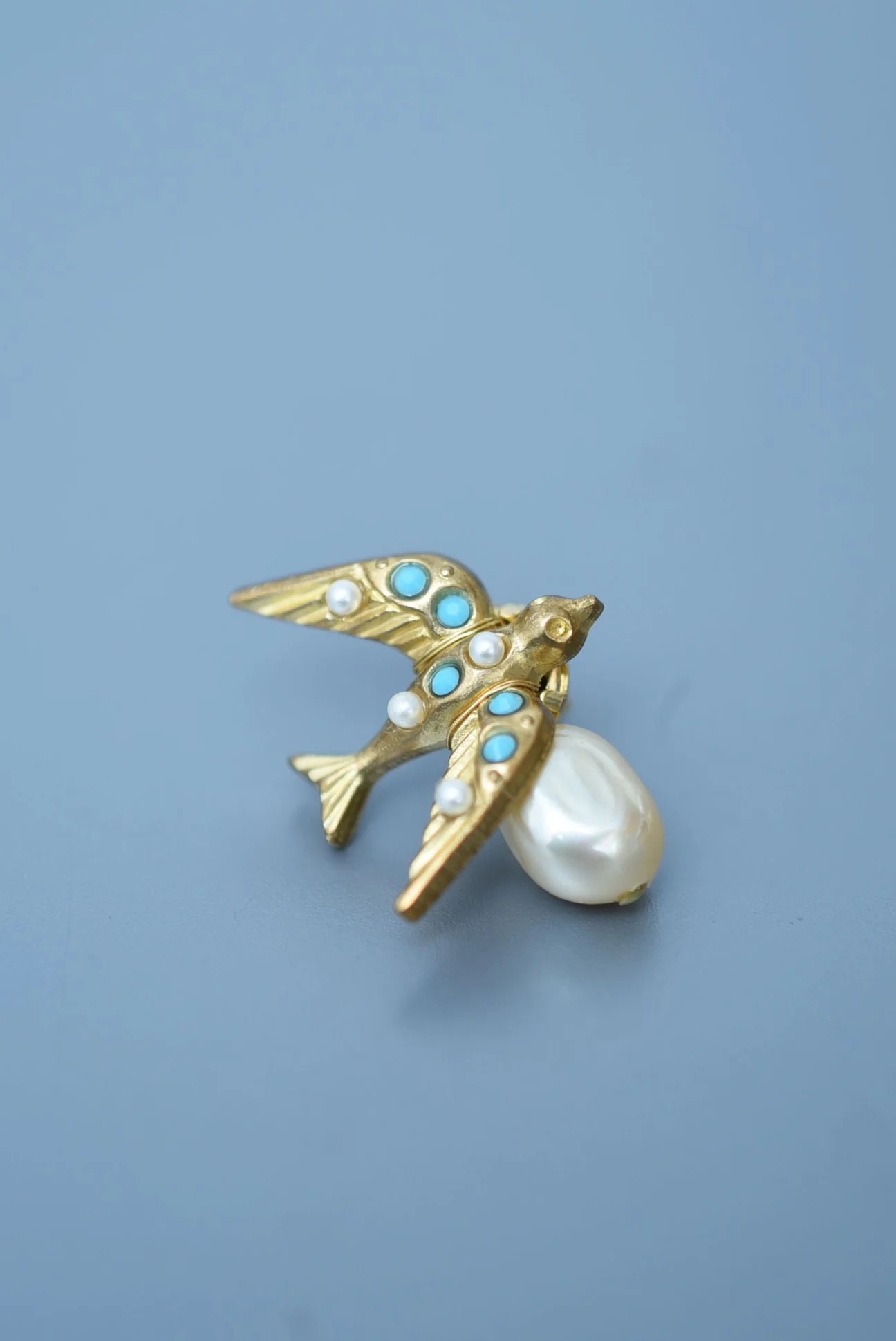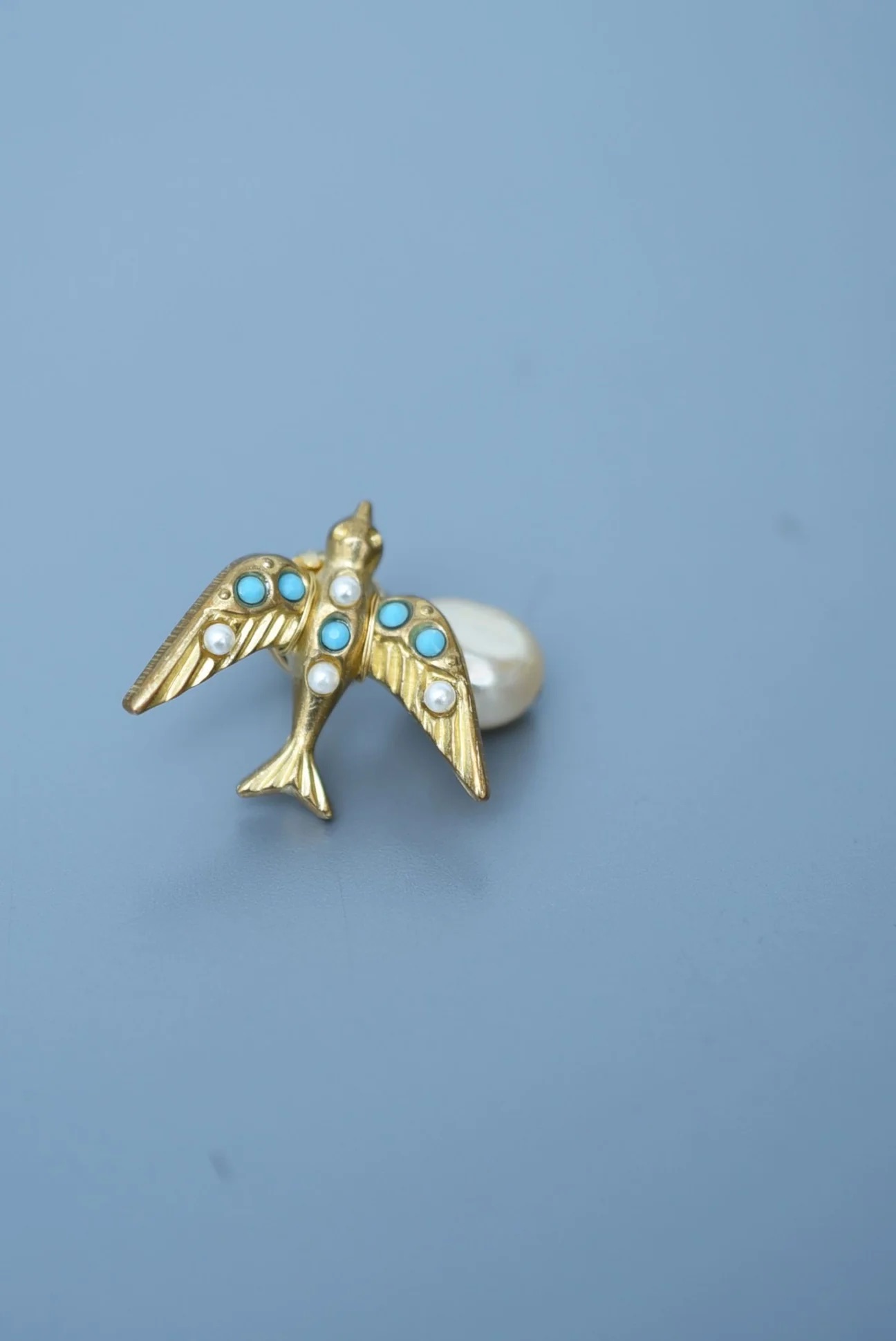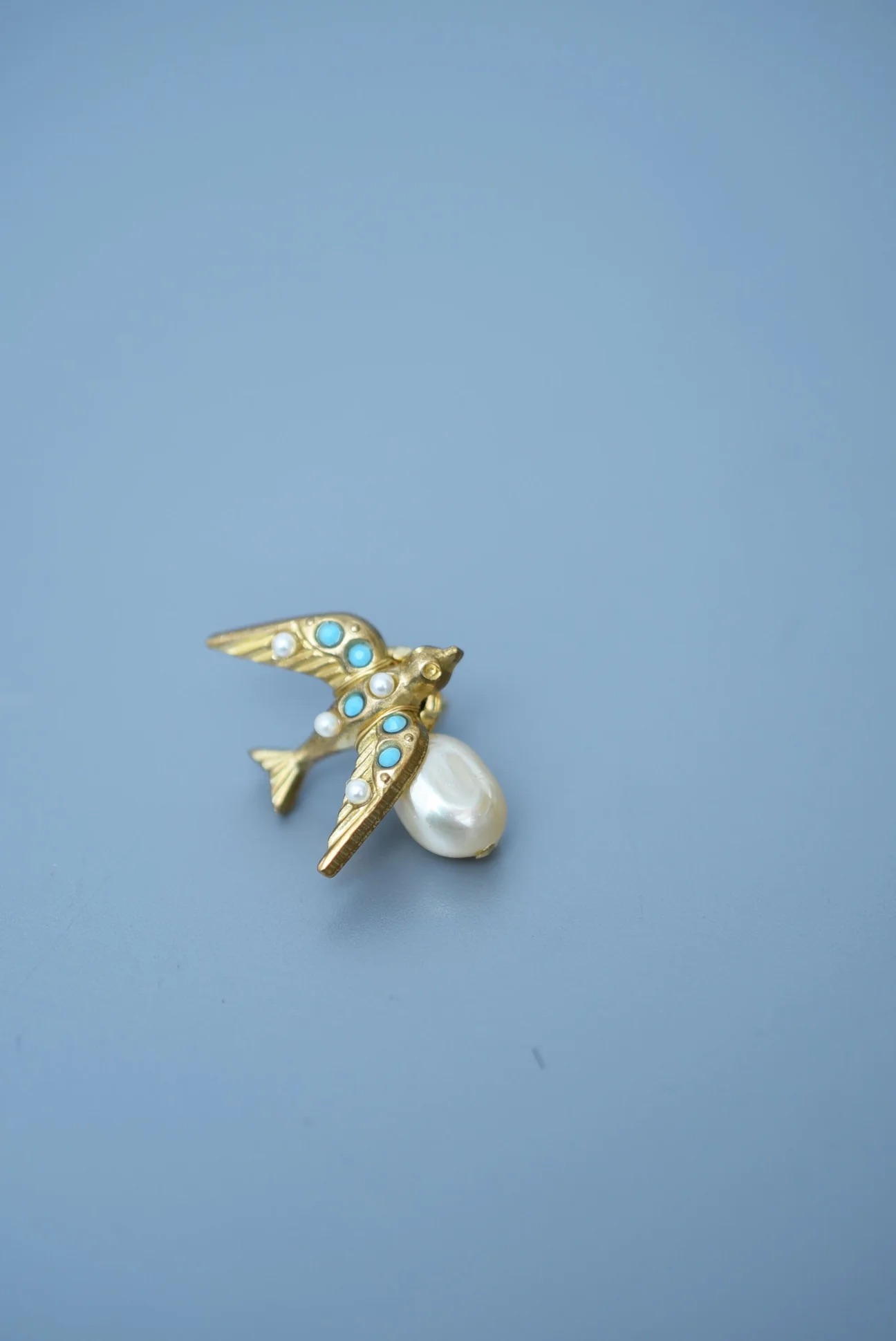 北京仓|Monshiro-TSUGUMI-鸟儿 绿松石 耳环[日本设计师]