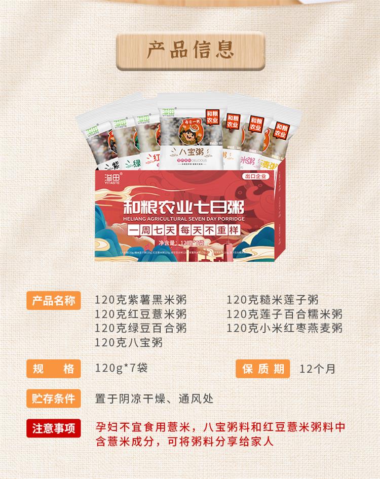 溢田7日杂粮早餐粥120g*7袋【厂家直供】