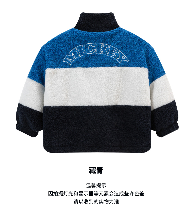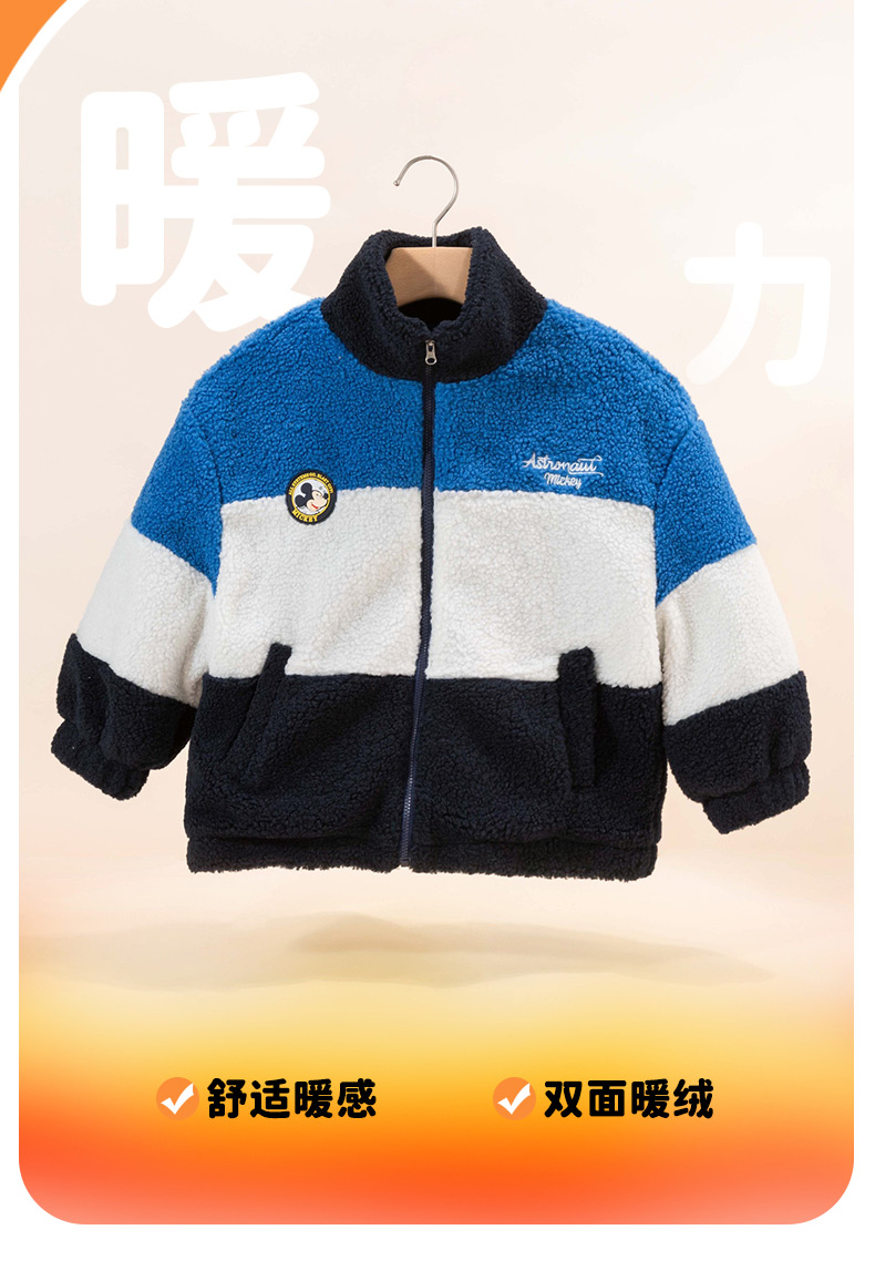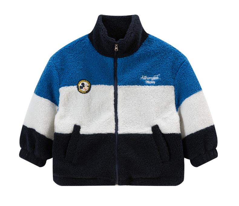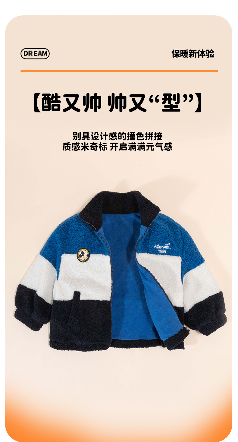 迪士尼童装男童羊羔绒保暖外套春秋冬季中大童帅气撞色学院风外套ZD4DS002