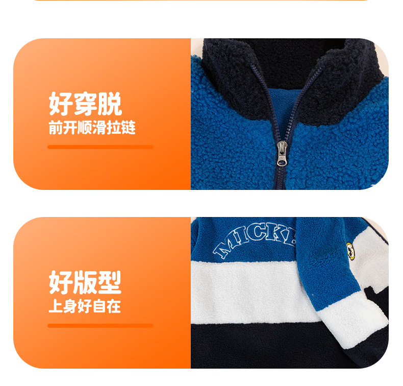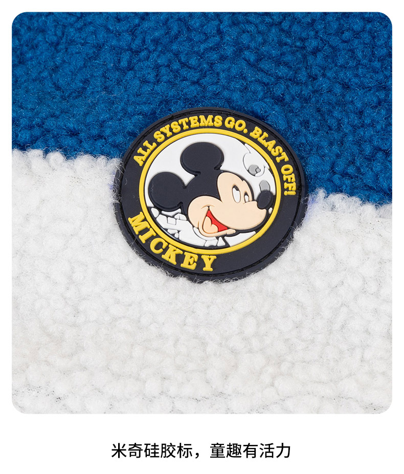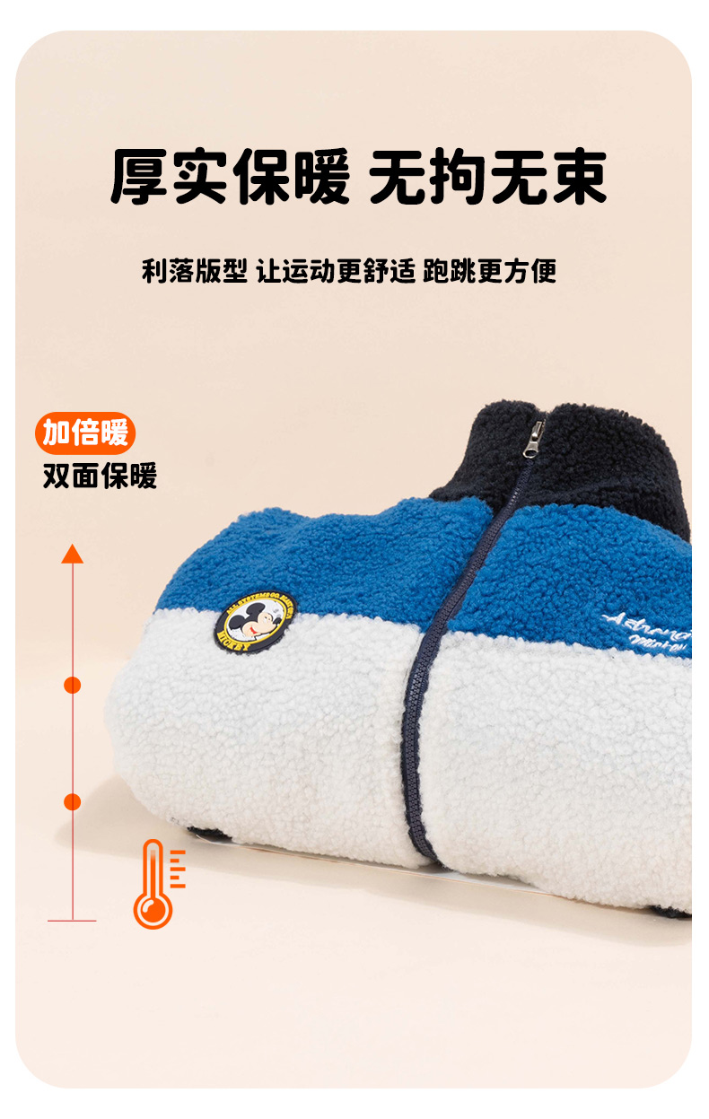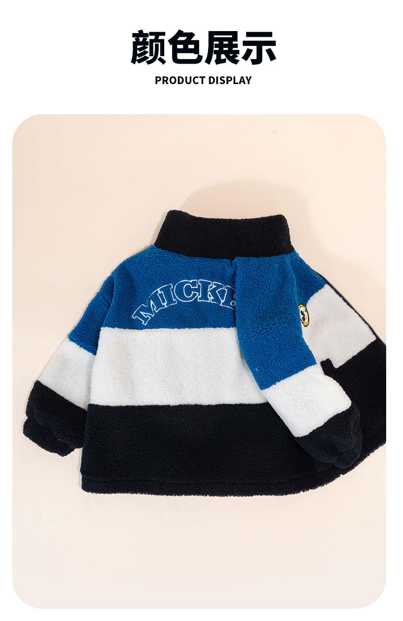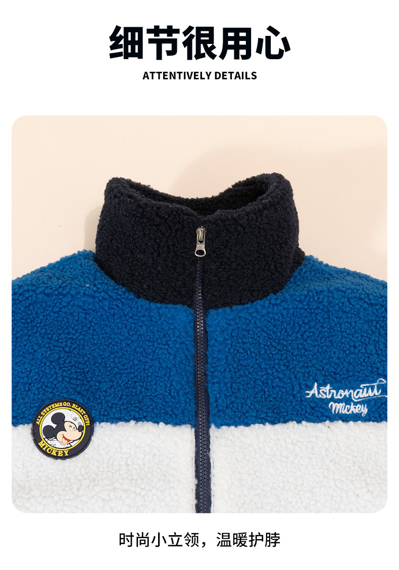 迪士尼童装男童羊羔绒保暖外套春秋冬季中大童帅气撞色学院风外套ZD4DS002