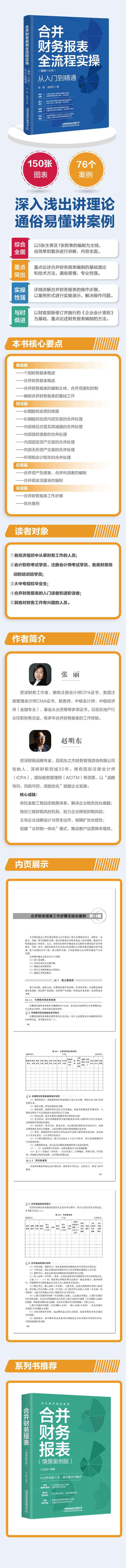 本书紧扣会计准则编写,助力读者掌握合并财务报表知识、提升实战能力。全书共四部分。第一部分基础篇(第1—4章),介绍个别财务报表的结构、合并财务报表的编制概述,以及合并财务报表的编制主体、范围与准备工作。第二部分技法篇(第5—11章),详解合并财务报表的难点内容,如长期股权投资、内部交易事项、与所得税会计有关的合并等。并对这些内容逐项进行详细讲解,为后续实践操作奠定坚实的理论基础。第三部分应用篇(第12—13章),聚焦合并资产负债表、合并利润表和合并现金流量表的概述及编制方法。在理论学习基础上,进一步深入探讨这些主要报表的编制技巧与注意事项,通过详细讲解和案例分析,帮助读者熟练掌握各类报表的编制方法,提升实际操作技能。第四部分实战篇(第14章),以综合案例的形式,模拟真实合并财务报表场景,按照操作步骤逐一分析,并用数据演示实务中可能出现的各类抵销业务,以及合并范围的变更(如增加、减少、跨越年度连续编制等),基本涵盖实务工作中的绝大部分业务,为读者提供实践指导。本书内容通俗易懂,案例丰富实用,适合合并财务报表的入门与进阶读者,也是会计职称和注册会计师考生的优质参考读物。张丽,资深财务工作者,拥有注册会计师CPA证书、美国注册管理会计师CMA证书、税务师、中级会计师、中级经济师(金融专业)、基金从业资格等多项证书。目前在地产行业任职财务总监,有多年合并财务报表的工作经验。赵明东,资深财税战略专家,昆明东之杰财务管理咨询有限公司创始人,深耕财税领域30年。拥有国际注册会计师(ICPA)、国际税务管理师(ACITM)等资质,以“战略导向、风险可控、效能优化”赋能企业发展。核心成就:依托金税工程动态税务体系,解决企业税负优化难题;独创三级财税风控机制,助力企业降低财税风险;主导企业战略设计与资本运作,保障扩张合规性;创建“业财税一体化”模式,推动客户运营降本增效。目录第1篇基础篇第1章个别财务报表概述1.1个别财务报表的结构1.2资产负债表1.3利润表1.4现金流量表1.5所有者权益变动表1.6财务报表附注第2章合并财务报表概述2.1认识合并财务报表2.2企业合并与合并财务报表2.3合并财务报表的合并理论第3章合并财务报表的编制主体、合并范围与控制3.1合并财务报表的编制主体3.2合并财务报表的合并范围3.3合并财务报表的控制3.4控制的评估第4章编制合并财务报表的基础工作4.1合并财务报表的编制原则4.2合并财务报表的构成4.3合并财务报表编制的前期准备事项4.4合并财务报表的编制程序4.5编制合并财务报表需要调整抵销的项目第2篇技法篇第5章长期股权投资的核算5.1长期股权投资概述5.2长期股权投资的初始计量5.3长期股权投资的后续计量5.4合营安排第6章长期股权投资内部交易的合并处理6.1同一控制下长期股权投资与所有者权益的合并处理6.2非同一控制下企业合并长期股权投资与所有者权益的合并处理第7章内部商品交易及其减值的合并处理7.1内部销售收入和内部销售成本的抵销处理7.2连续编制合并报表时内部销售的合并处理7.3存货跌价准备的合并处理第8章内部债权债务的合并处理8.1内部债权债务概述8.2内部应收应付款项及其坏账准备的合并处理8.3连续编制合并财务报表时的合并处理第9章内部固定资产交易的合并处理9.1内部固定资产交易概述9.2内部固定资产交易当期的合并处理9.3内部交易固定资产取得至处置的合并处理9.4内部交易固定资产清理期间的合并处理第10章内部无形资产交易的合并处理10.1内部无形资产交易当期的合并处理10.2内部交易无形资产持有期间的合并处理10.3内部无形资产交易摊销完毕期间的合并处理第11章所得税会计相关的合并处理11.1所得税会计概述11.2内部应收款项相关所得税会计的合并处理11.3内部交易存货相关所得税会计的合并处理11.4内部交易固定资产等相关所得税会计的合并处理第3篇应用篇第12章合并资产负债表、合并利润表的编制12.1合并资产负债表、合并利润表概述12.2编制方法12.3新增合并财务报表辅助资料第13章合并现金流量表的编制13.1合并现金流量表概述13.2以个别现金流量表为基础的合并现金流量表的编制第4篇实战篇第14章合并财务报表工作步骤及综合案例14.1建立备查账14.2设计合并财务报表文件格式14.3编制合并财务报表14.4综合案例