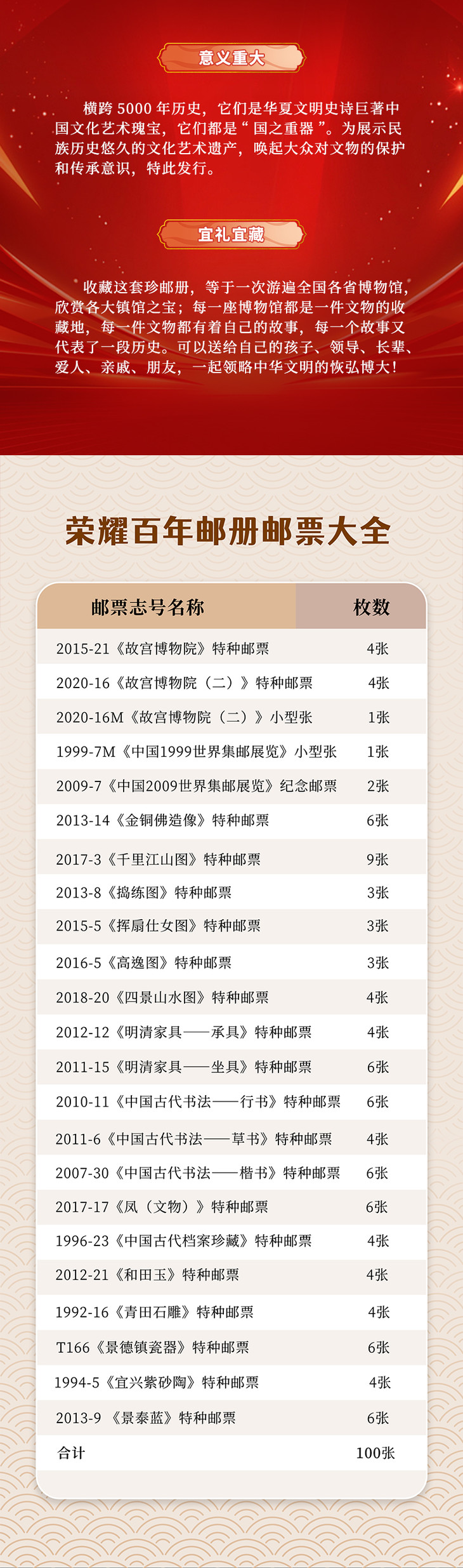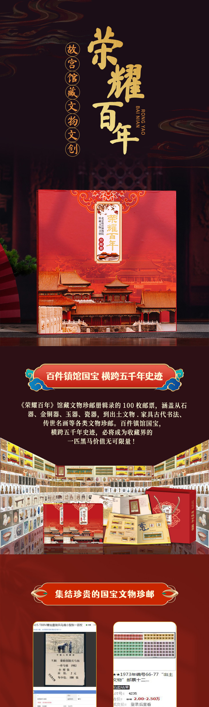 【赠《五牛图》】《荣耀百年》北京故宫馆藏文物珍邮册 共100枚文物珍邮 涉及多个领域 一次集齐镇馆之宝 含收藏证书