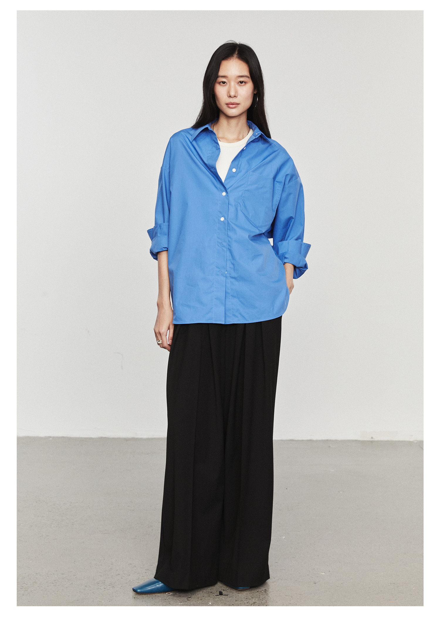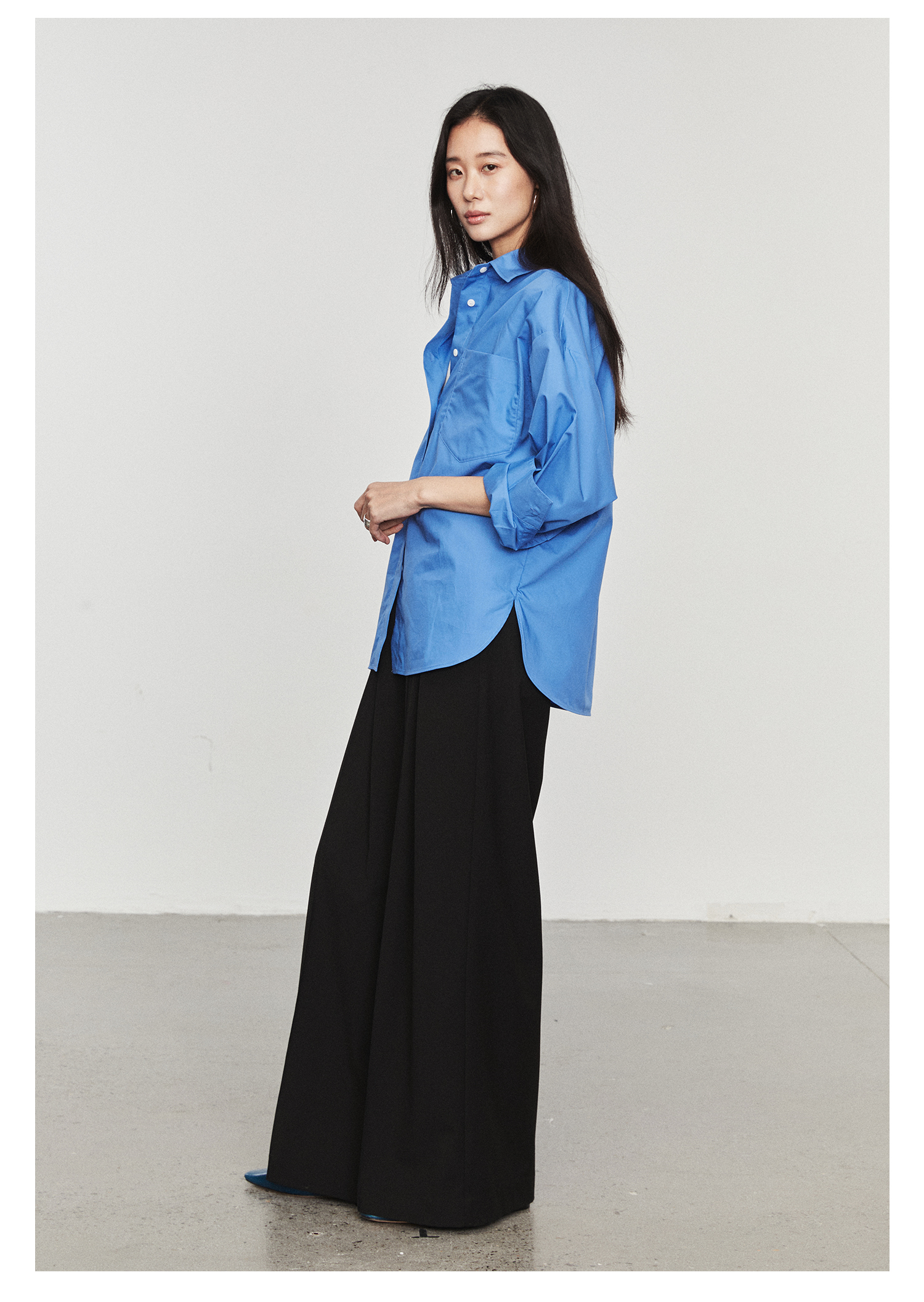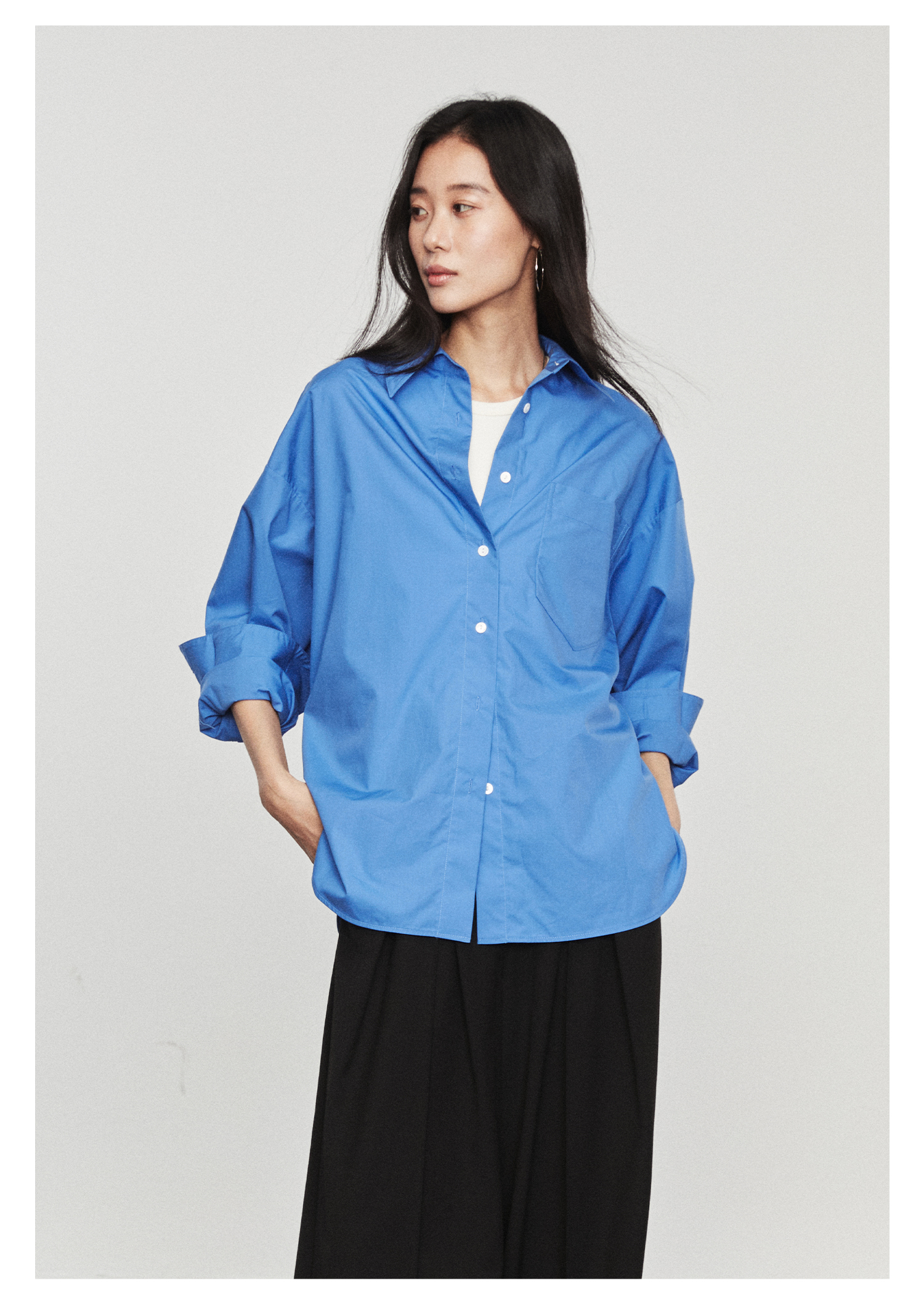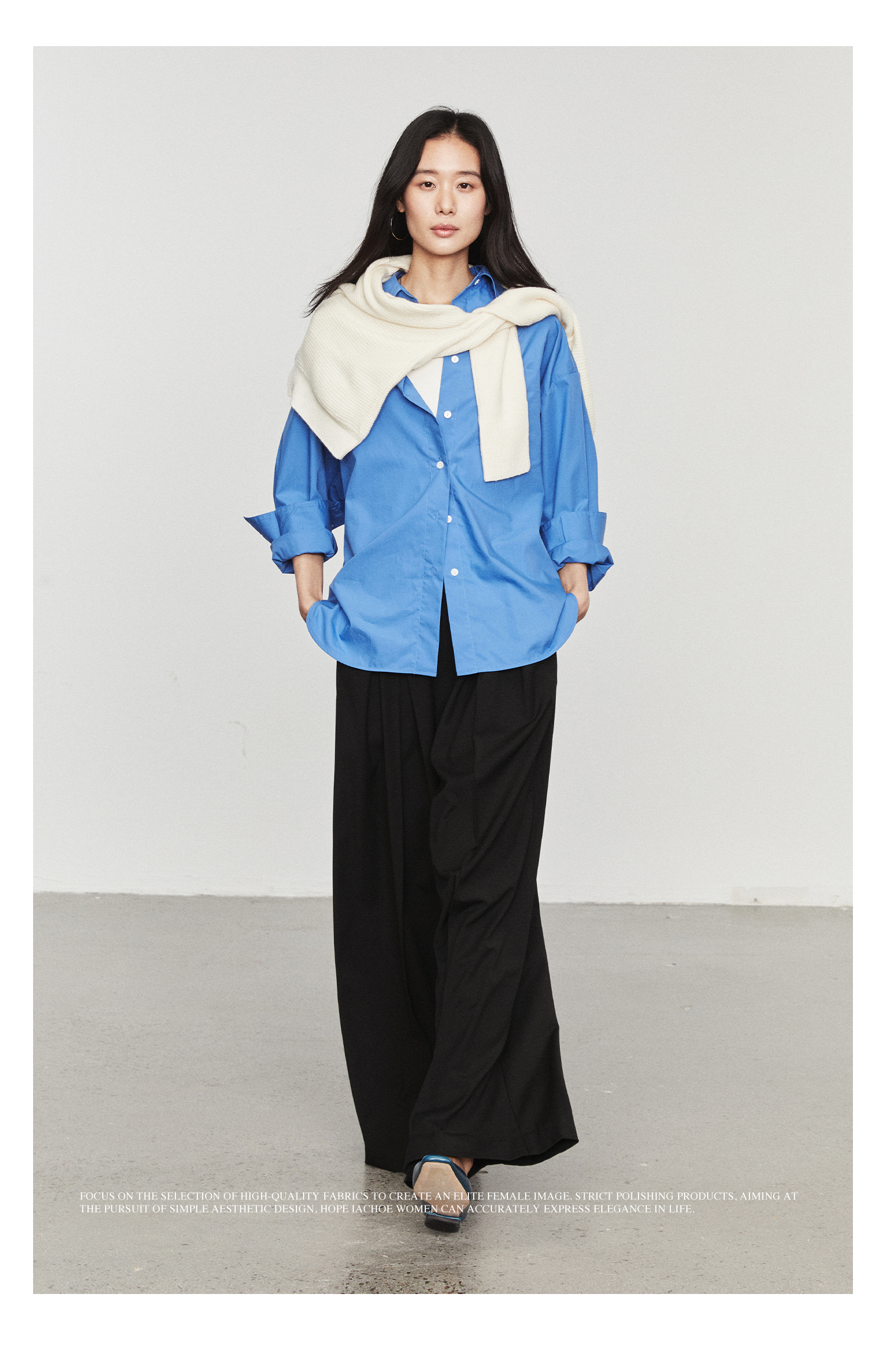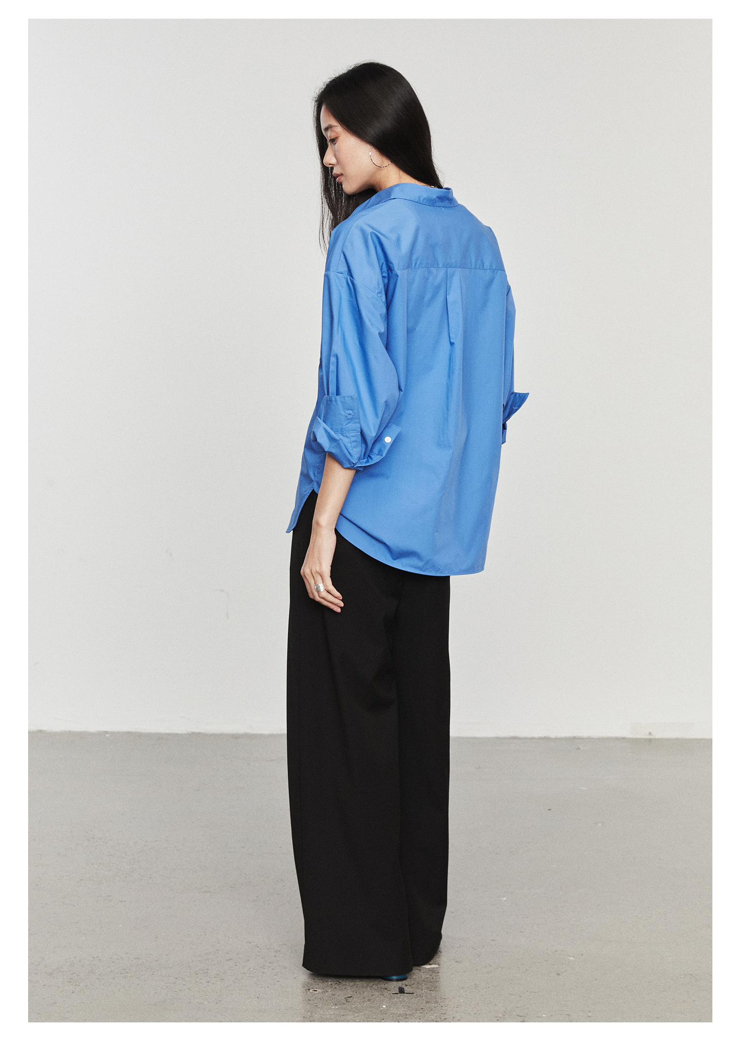 棉仓3561504004-【蓝朋友】克莱因蓝宽松通勤衬衫 设计感法式长袖衬衣