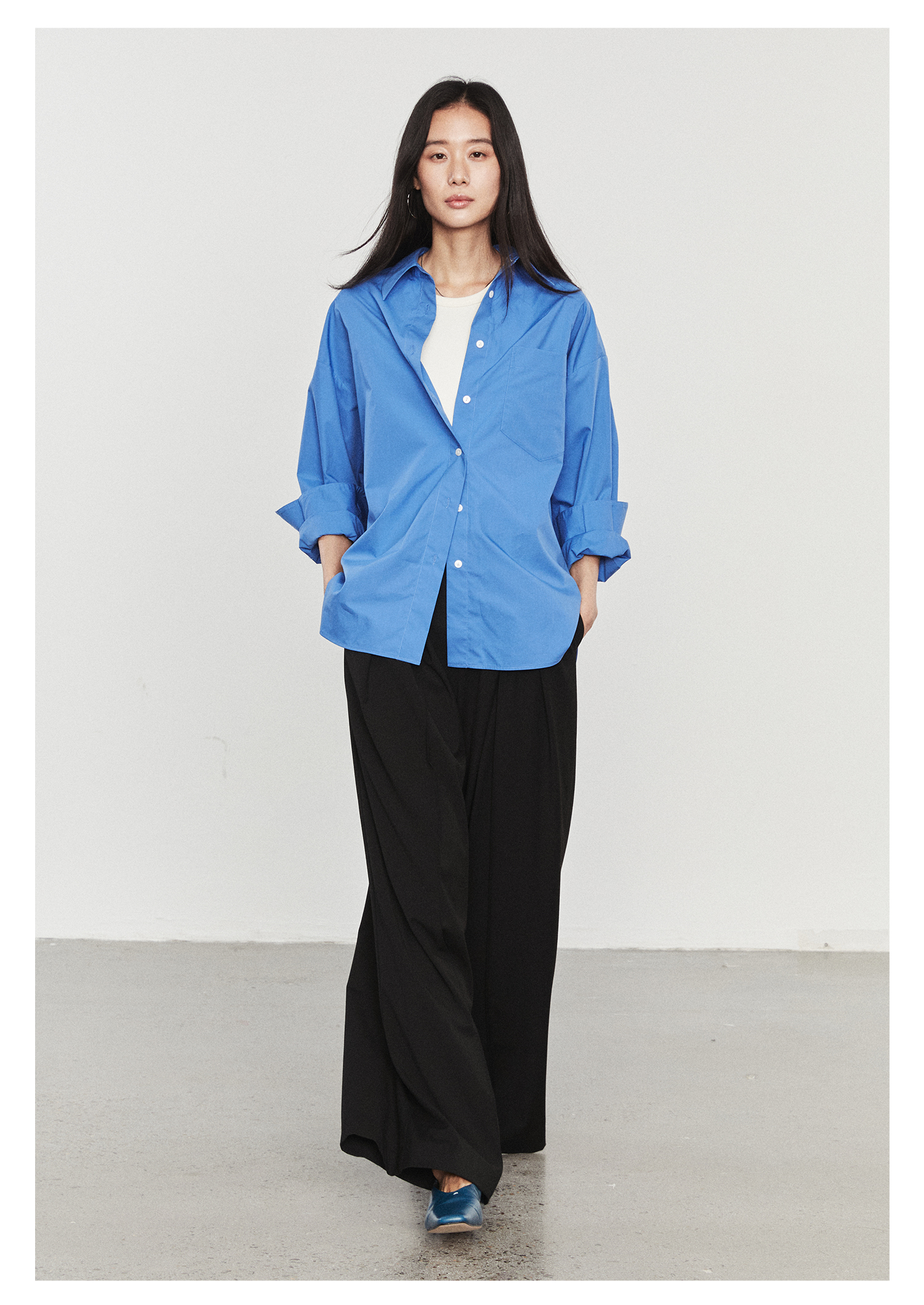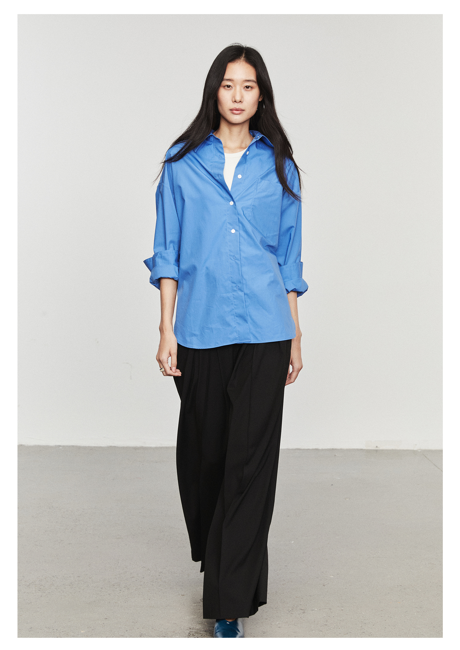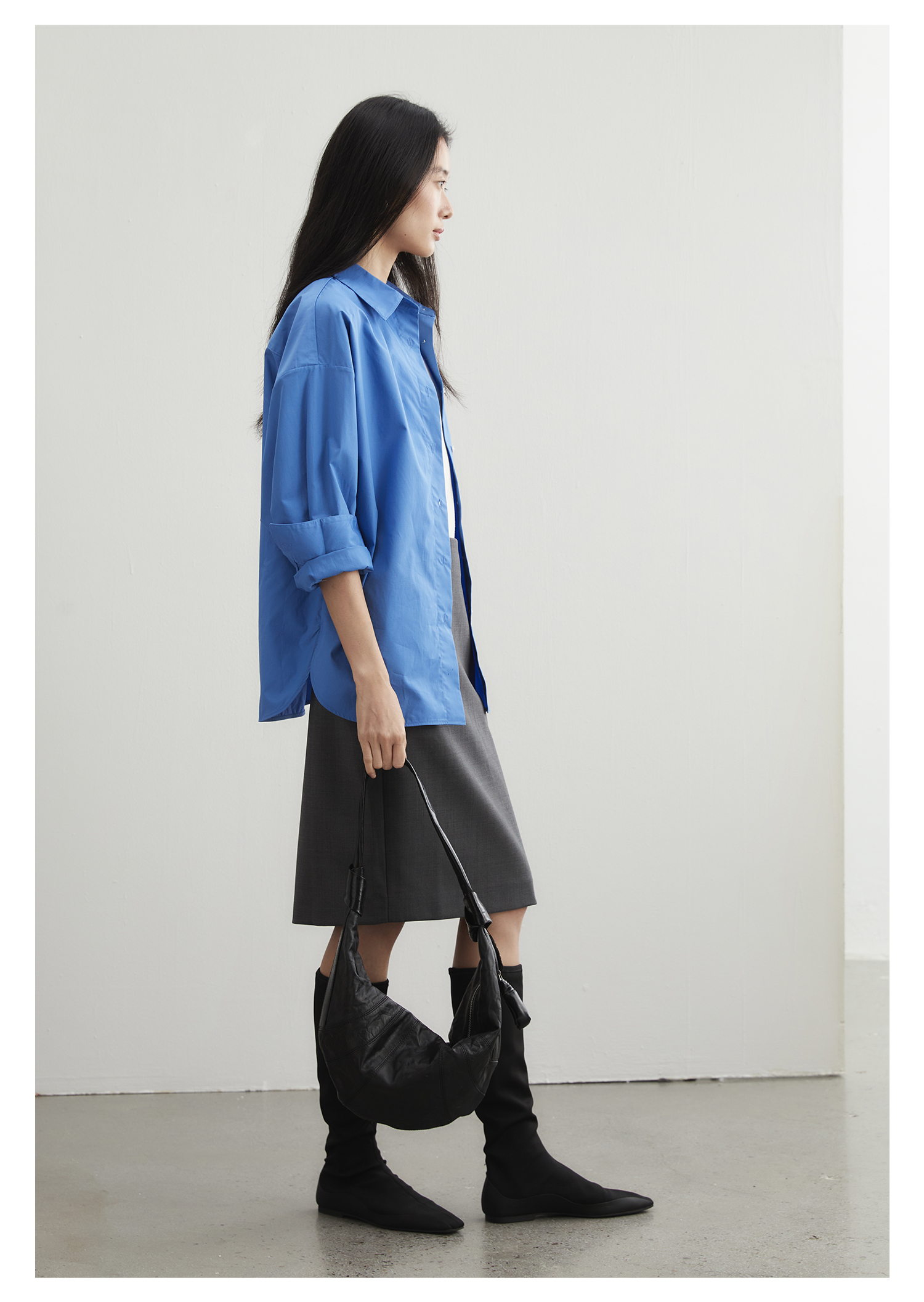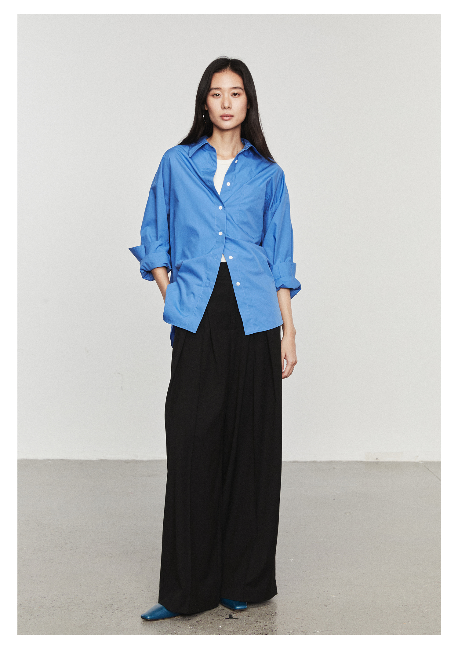棉仓3561504004-【蓝朋友】克莱因蓝宽松通勤衬衫 设计感法式长袖衬衣