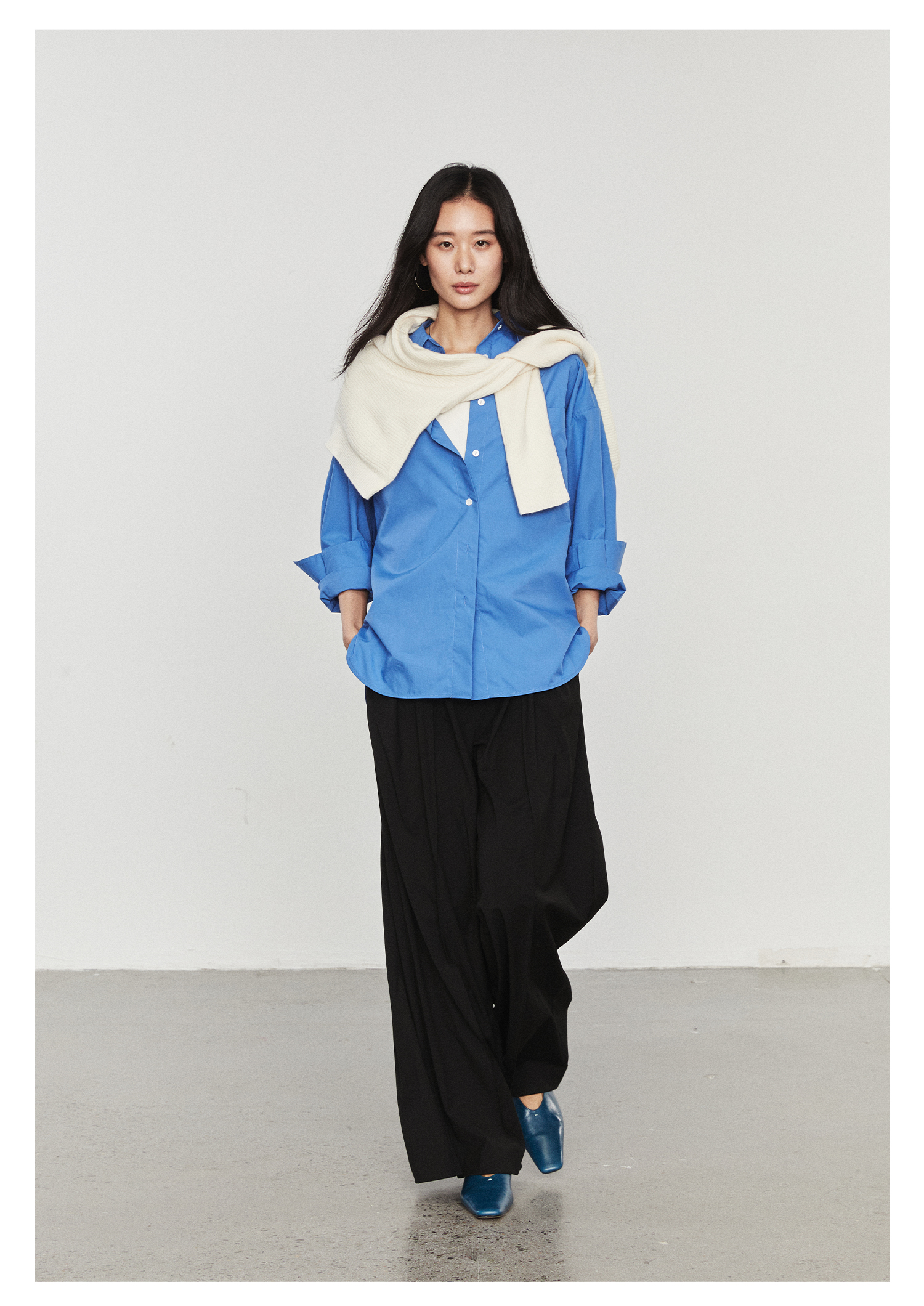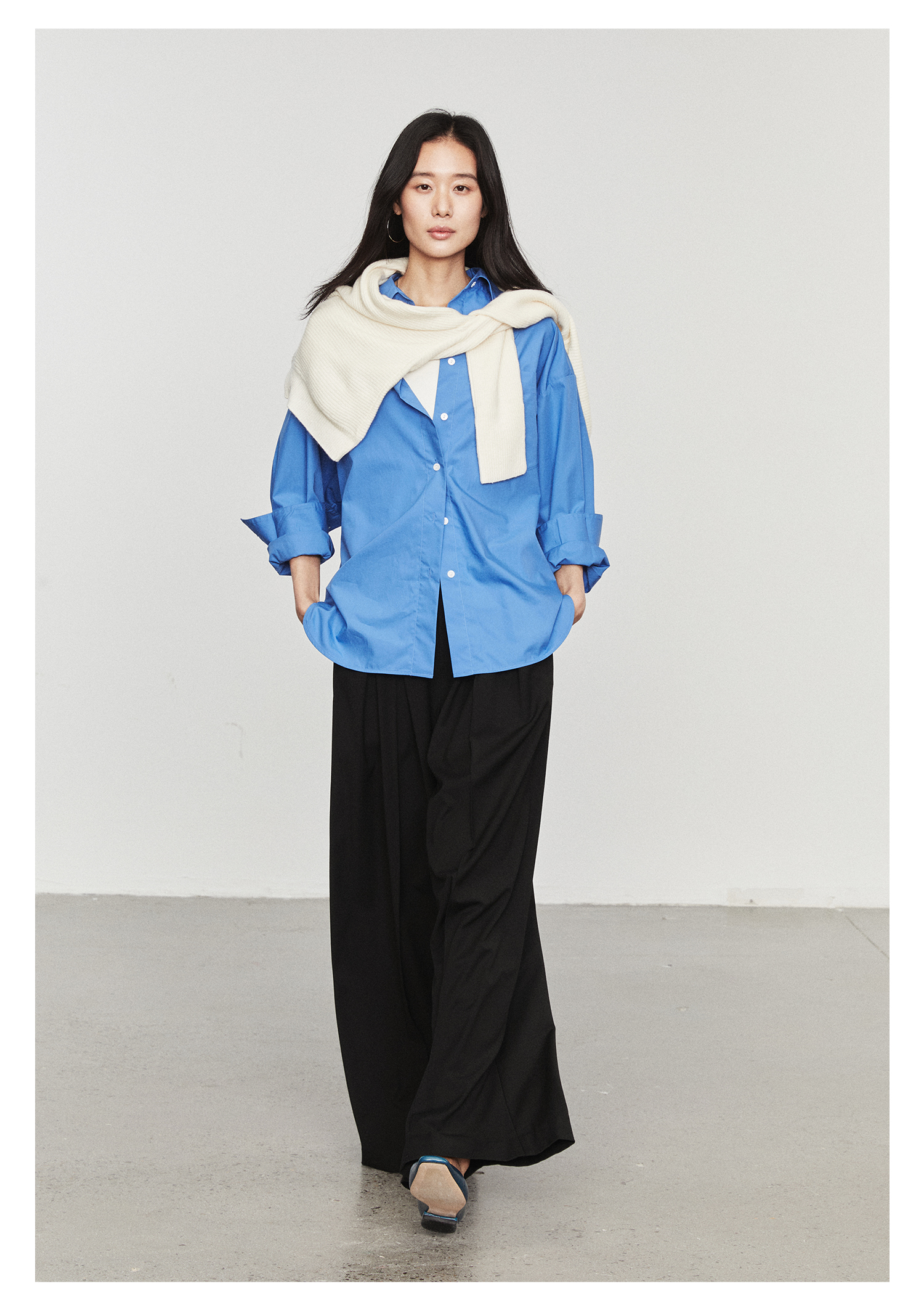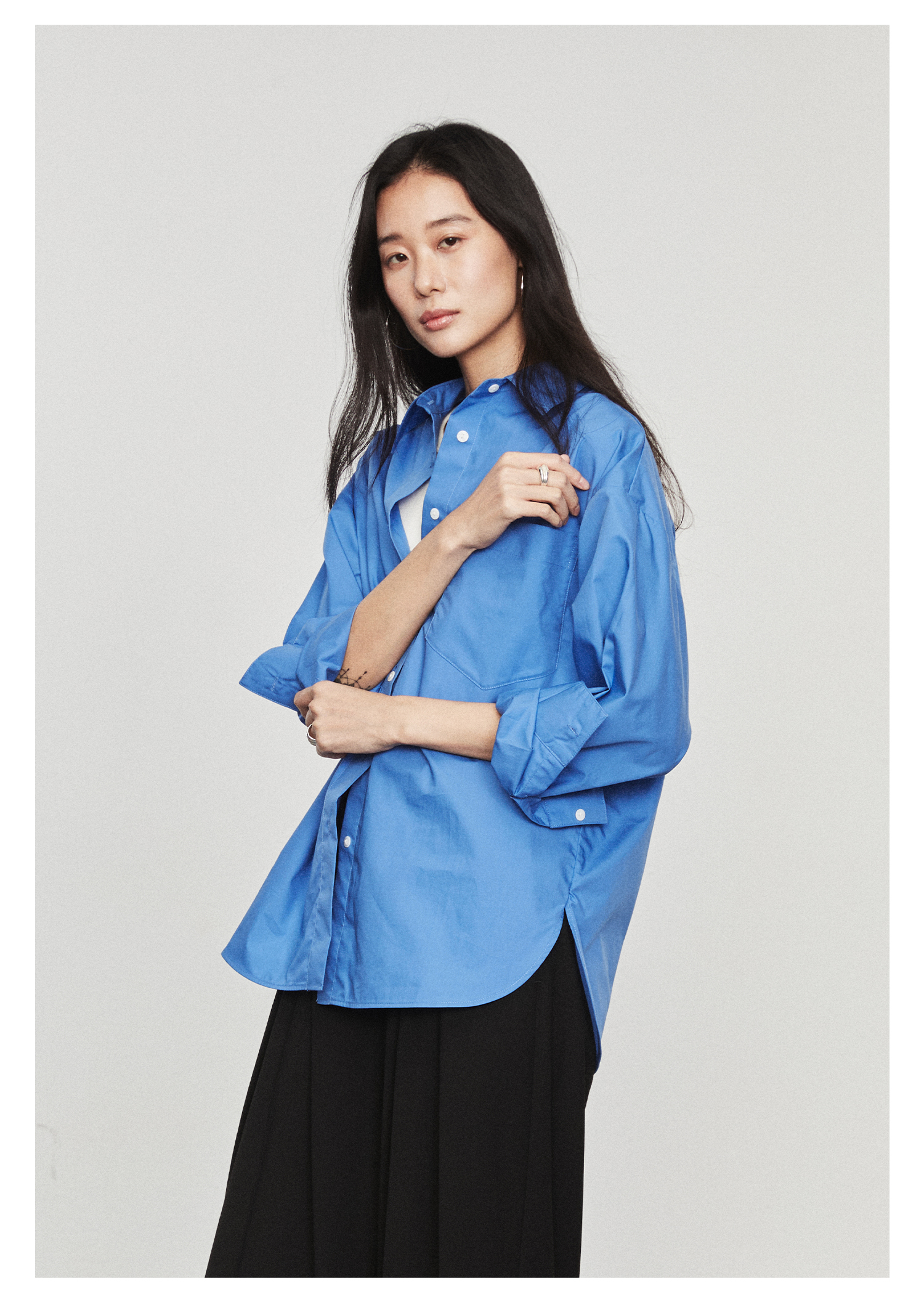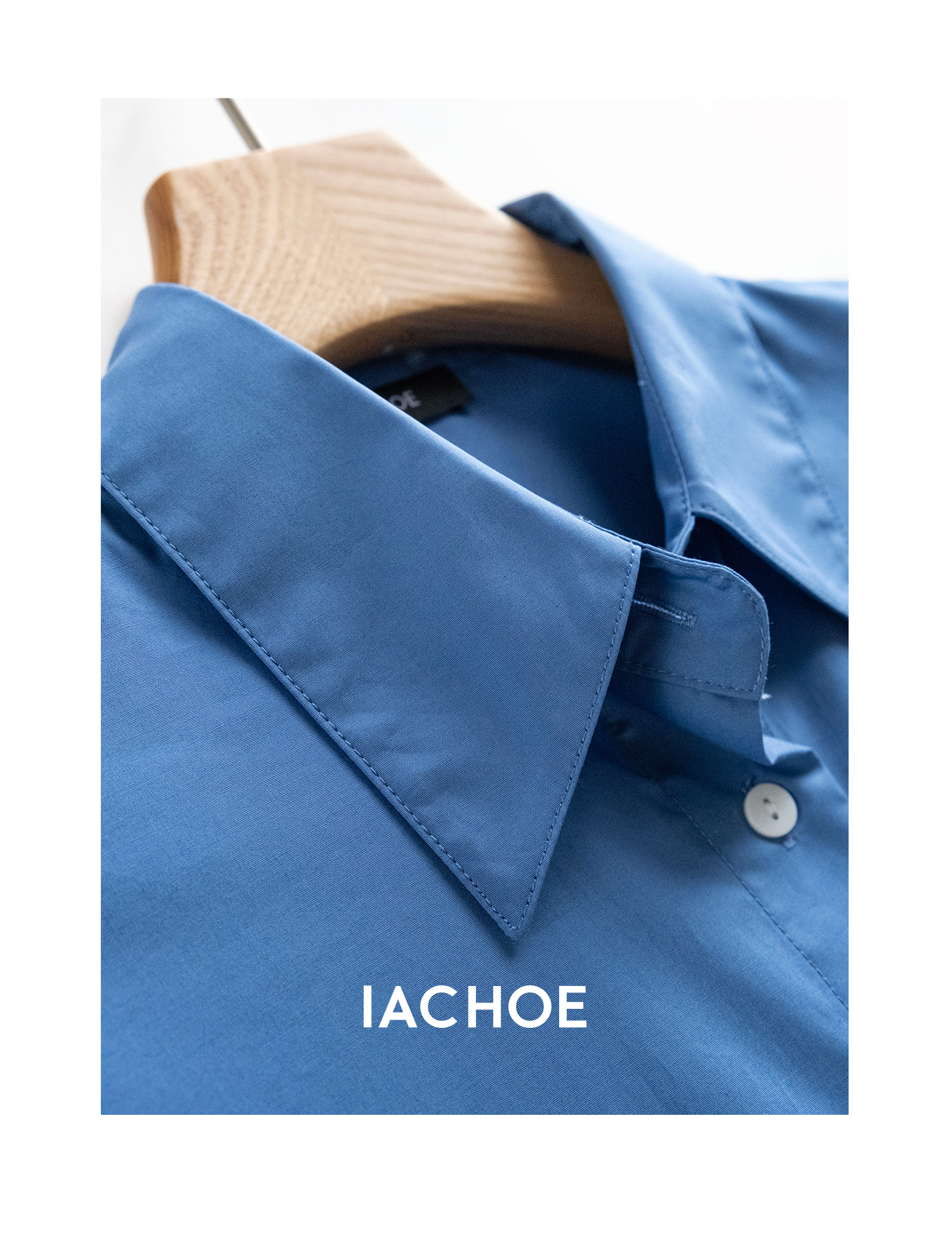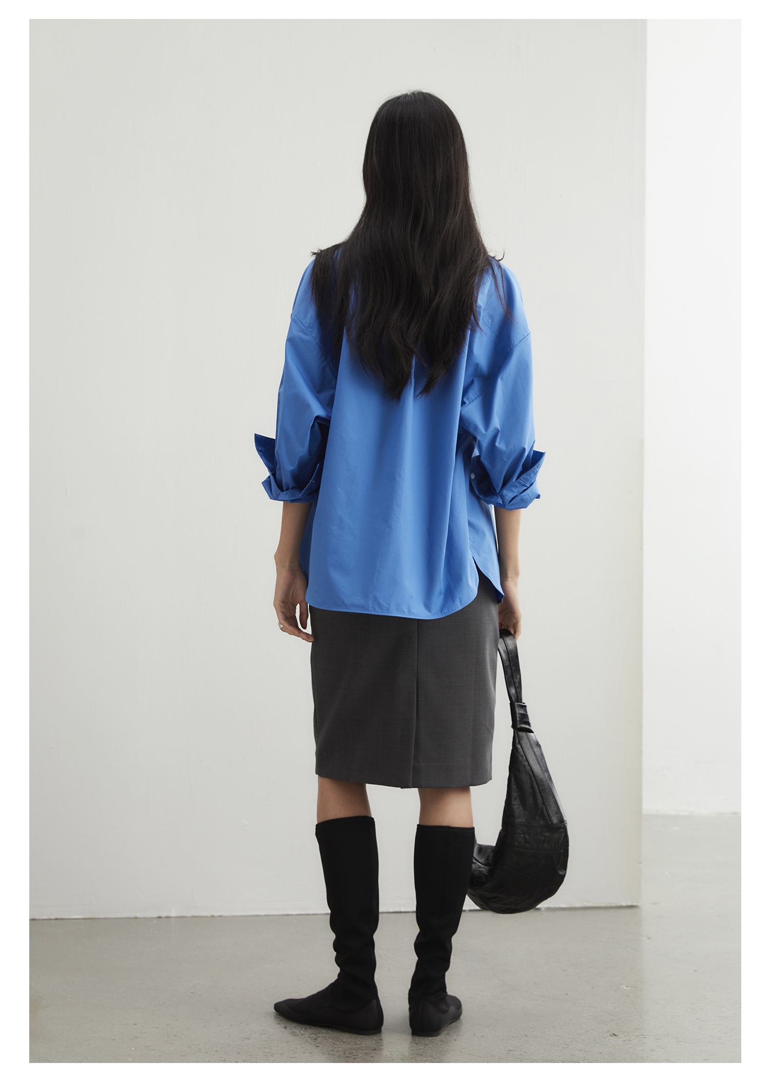 棉仓3561504004-【蓝朋友】克莱因蓝宽松通勤衬衫 设计感法式长袖衬衣