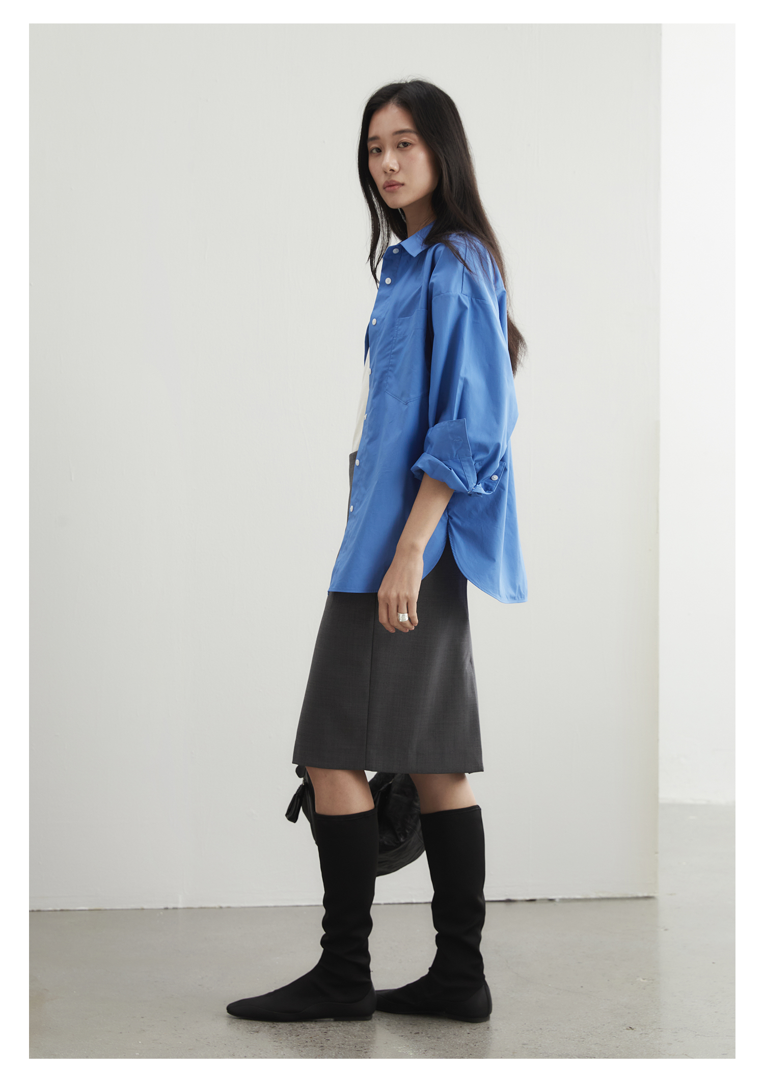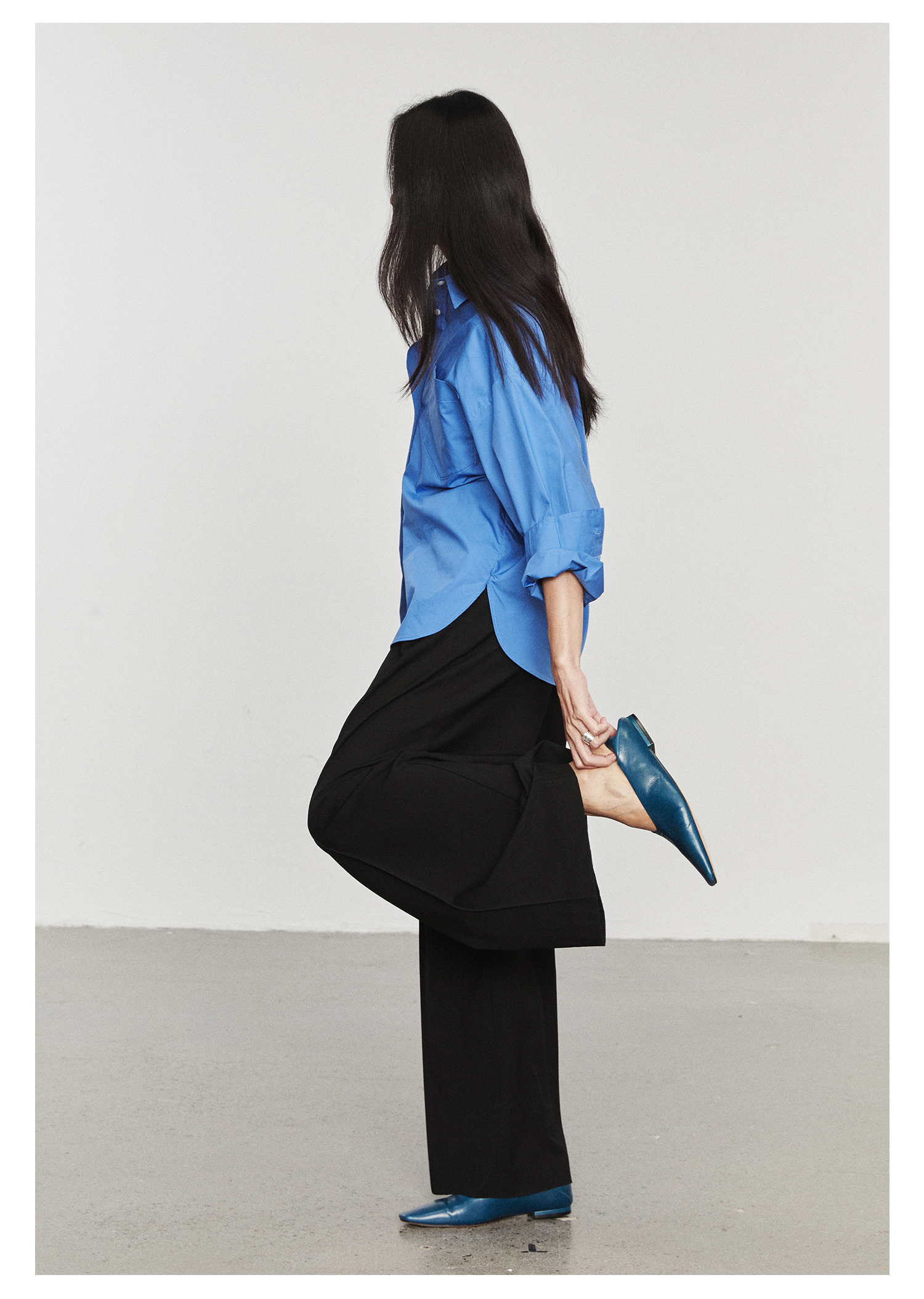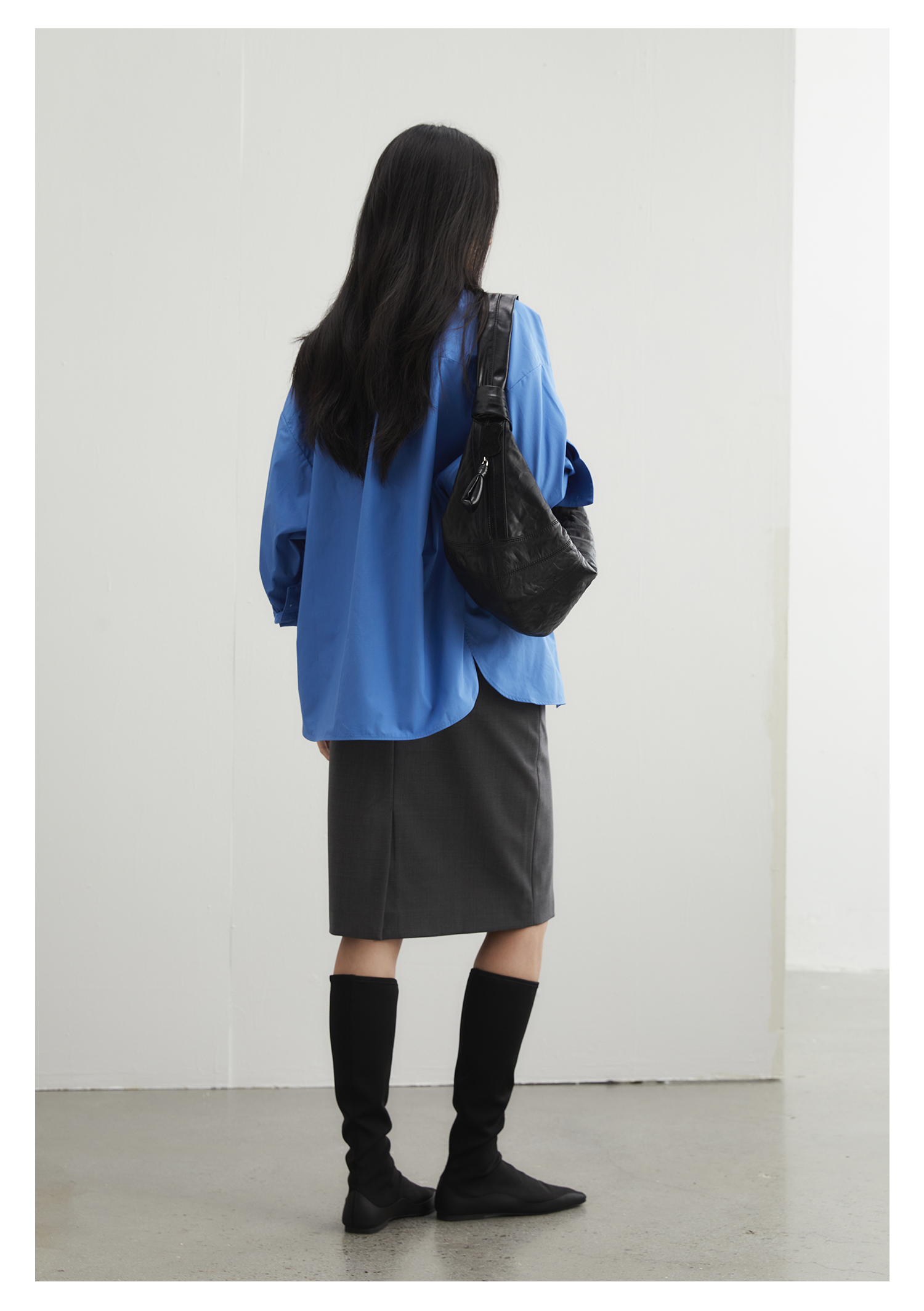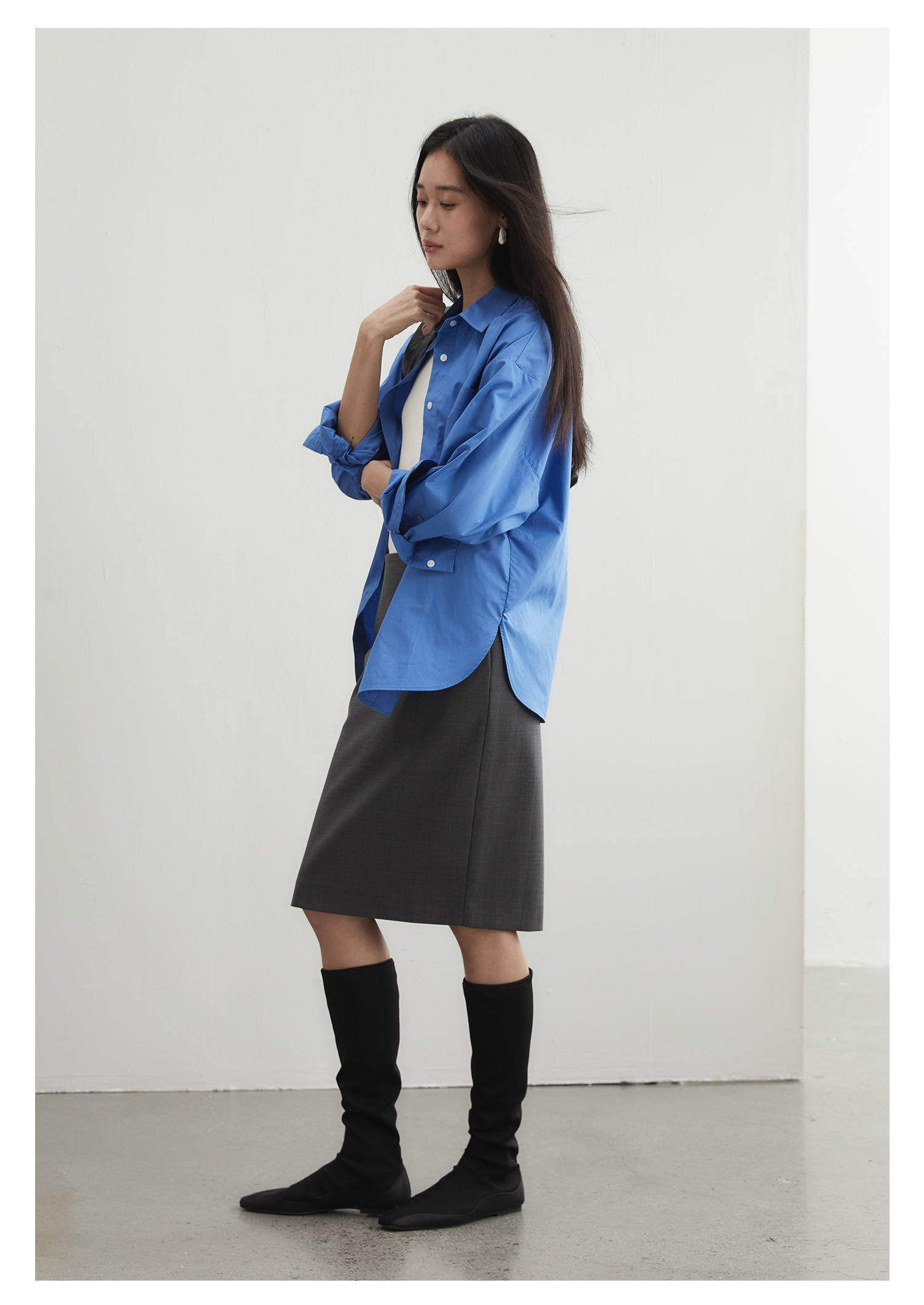 棉仓3561504004-【蓝朋友】克莱因蓝宽松通勤衬衫 设计感法式长袖衬衣