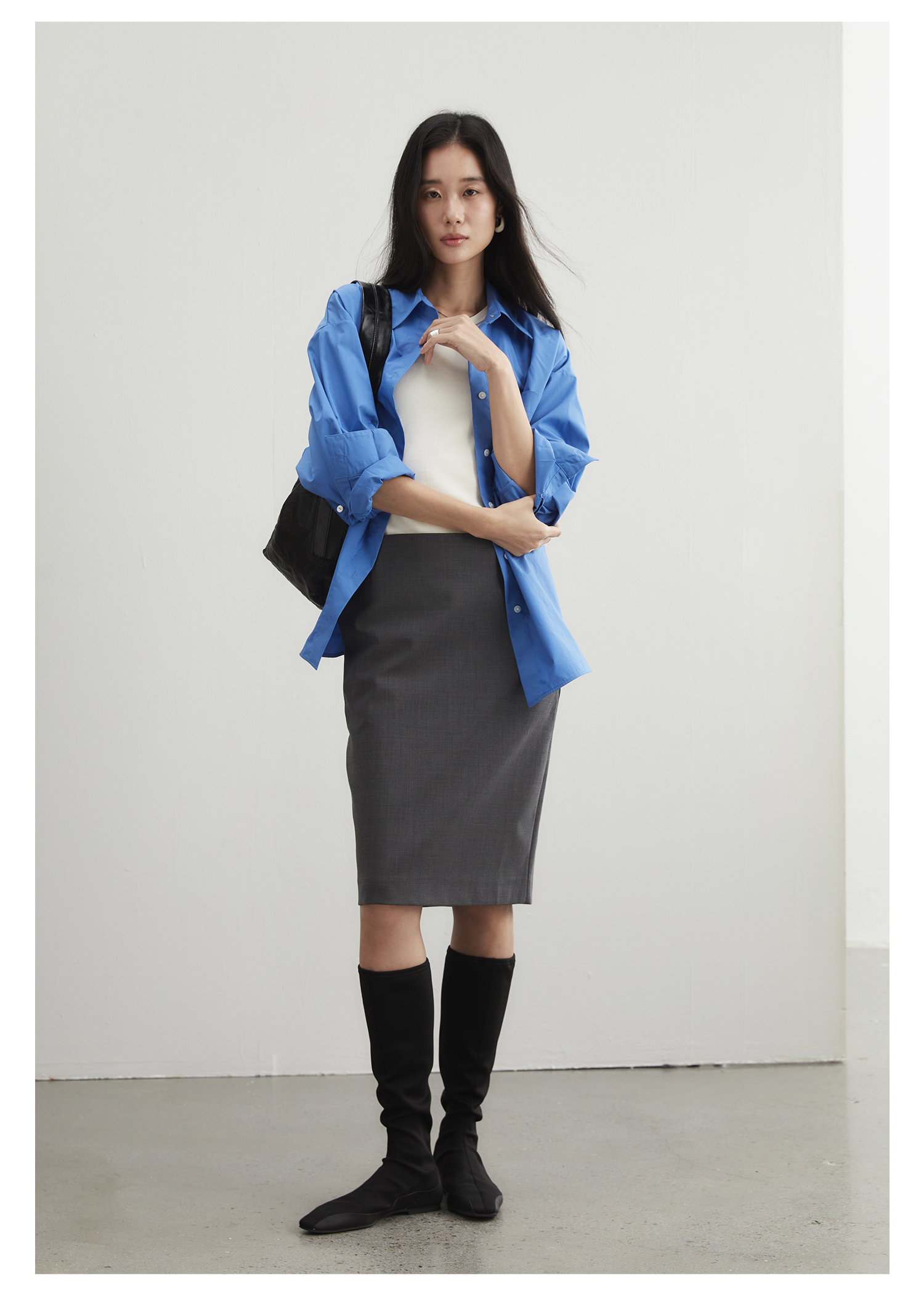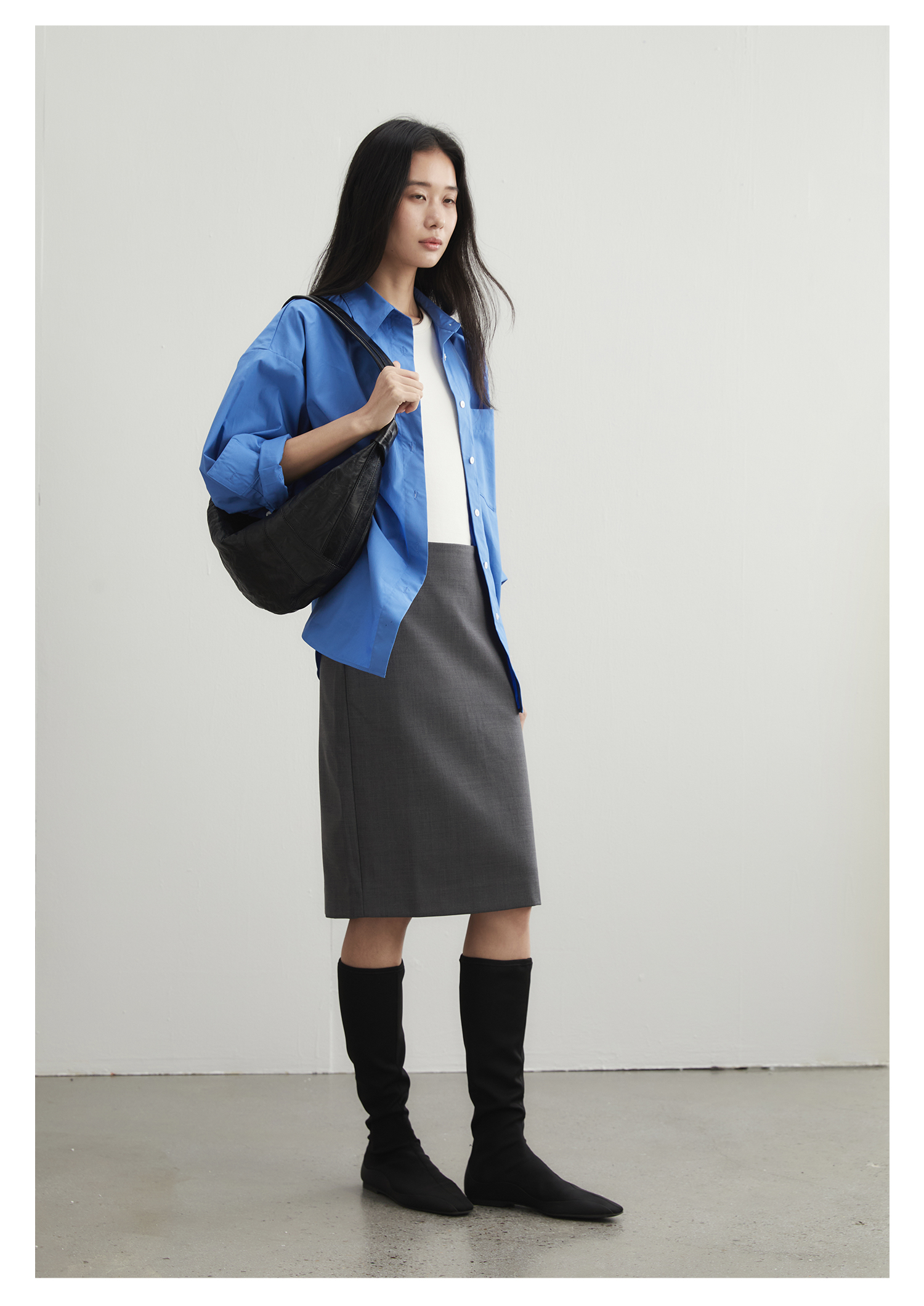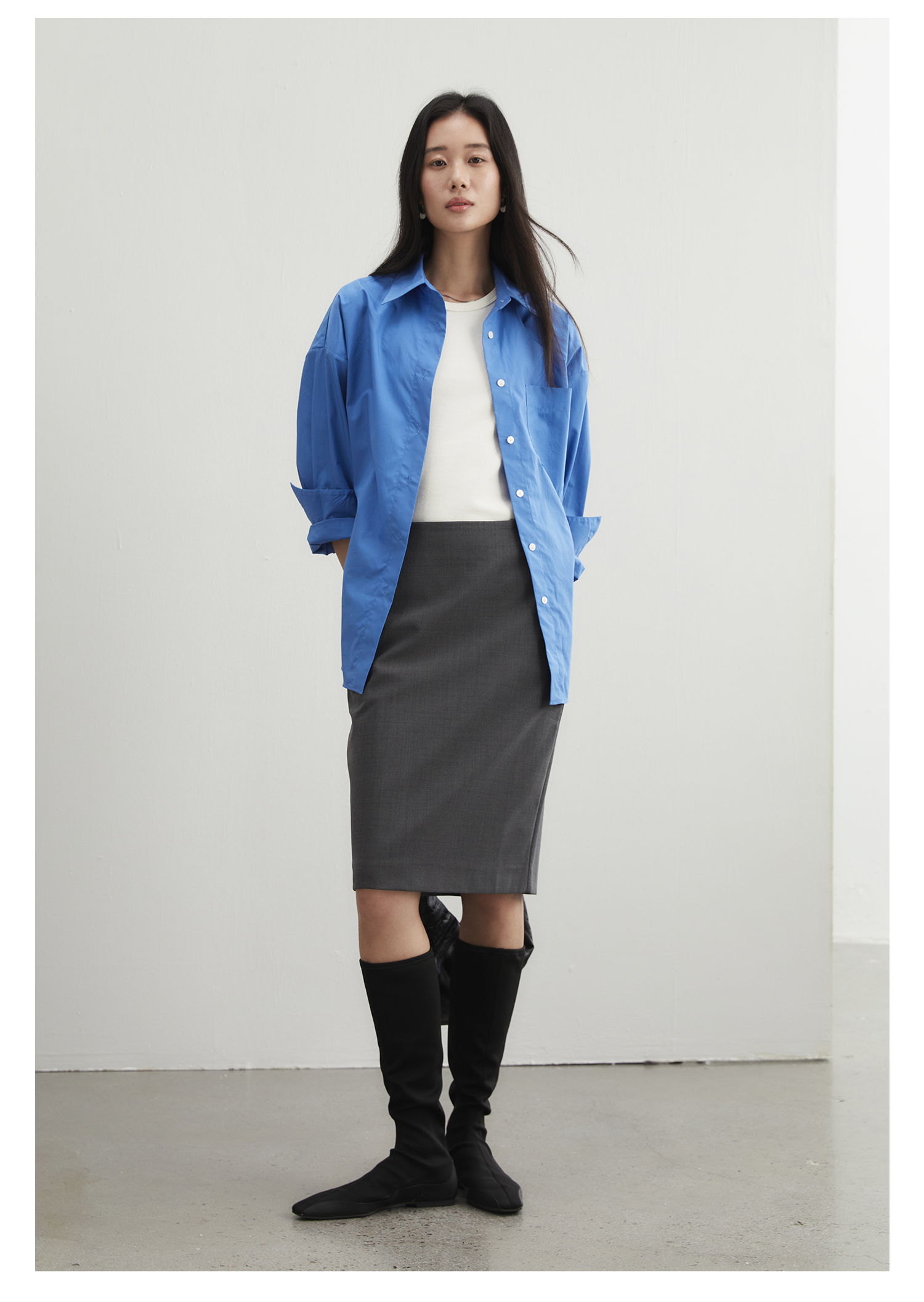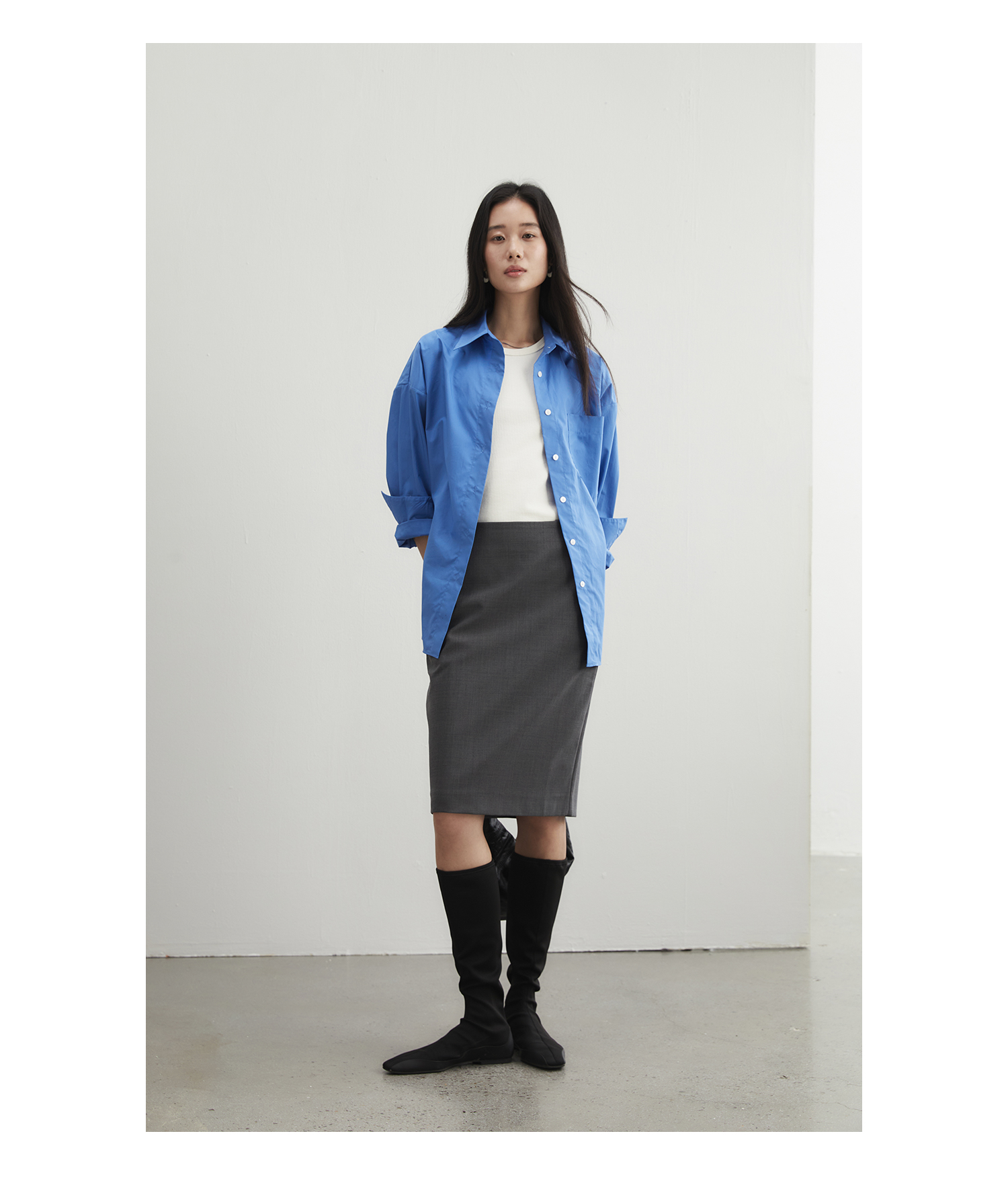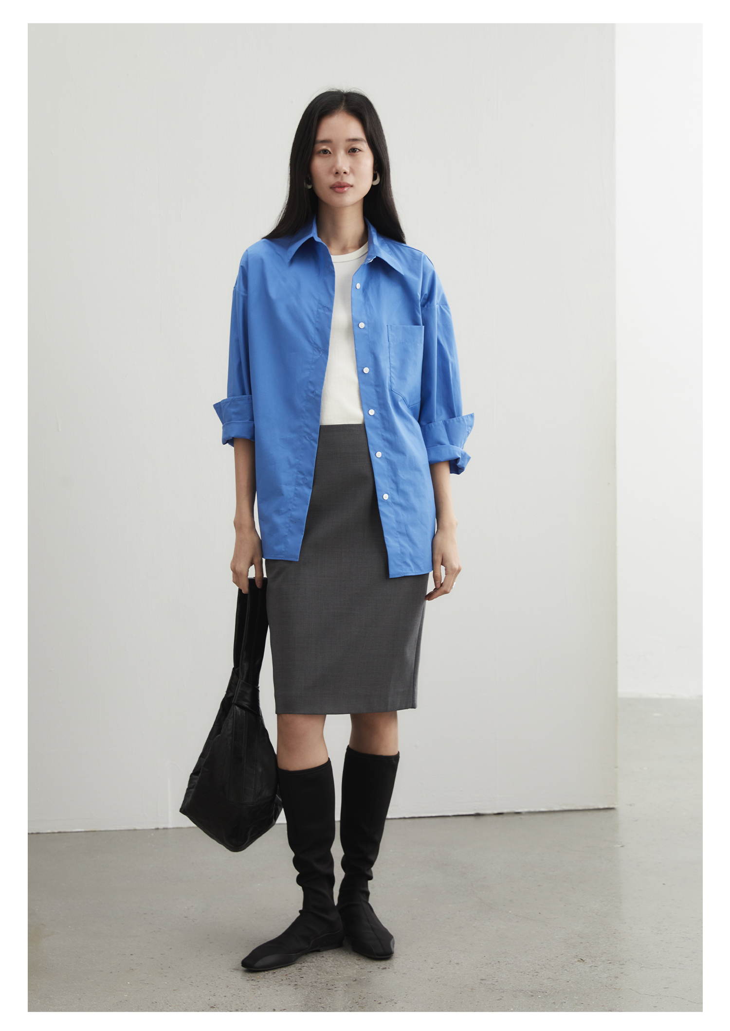 棉仓3561504004-【蓝朋友】克莱因蓝宽松通勤衬衫 设计感法式长袖衬衣
