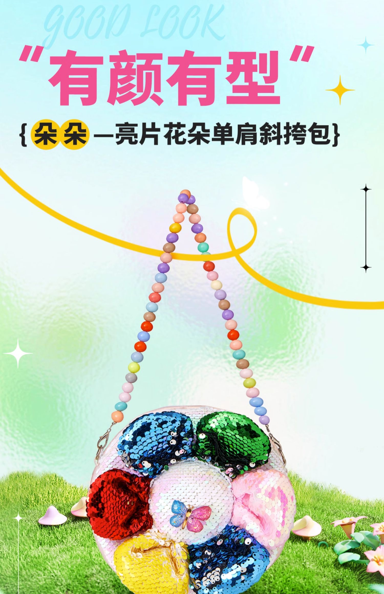 9楼母婴生活馆 CozyWorld亮片花朵包包女生卡通斜挎包可爱单肩包手提百搭 活动价:189元