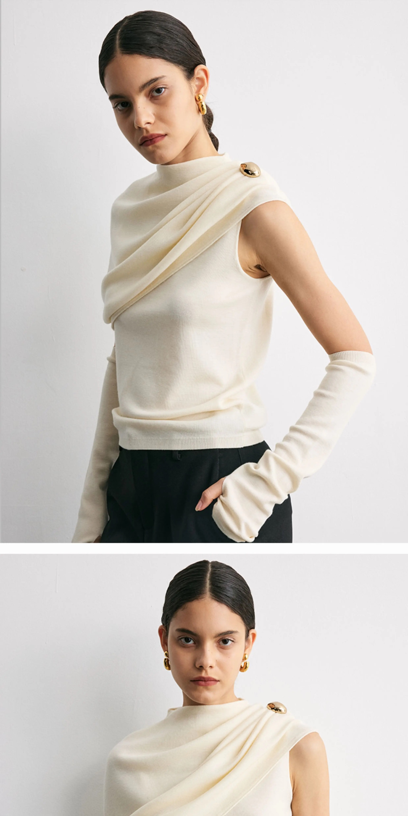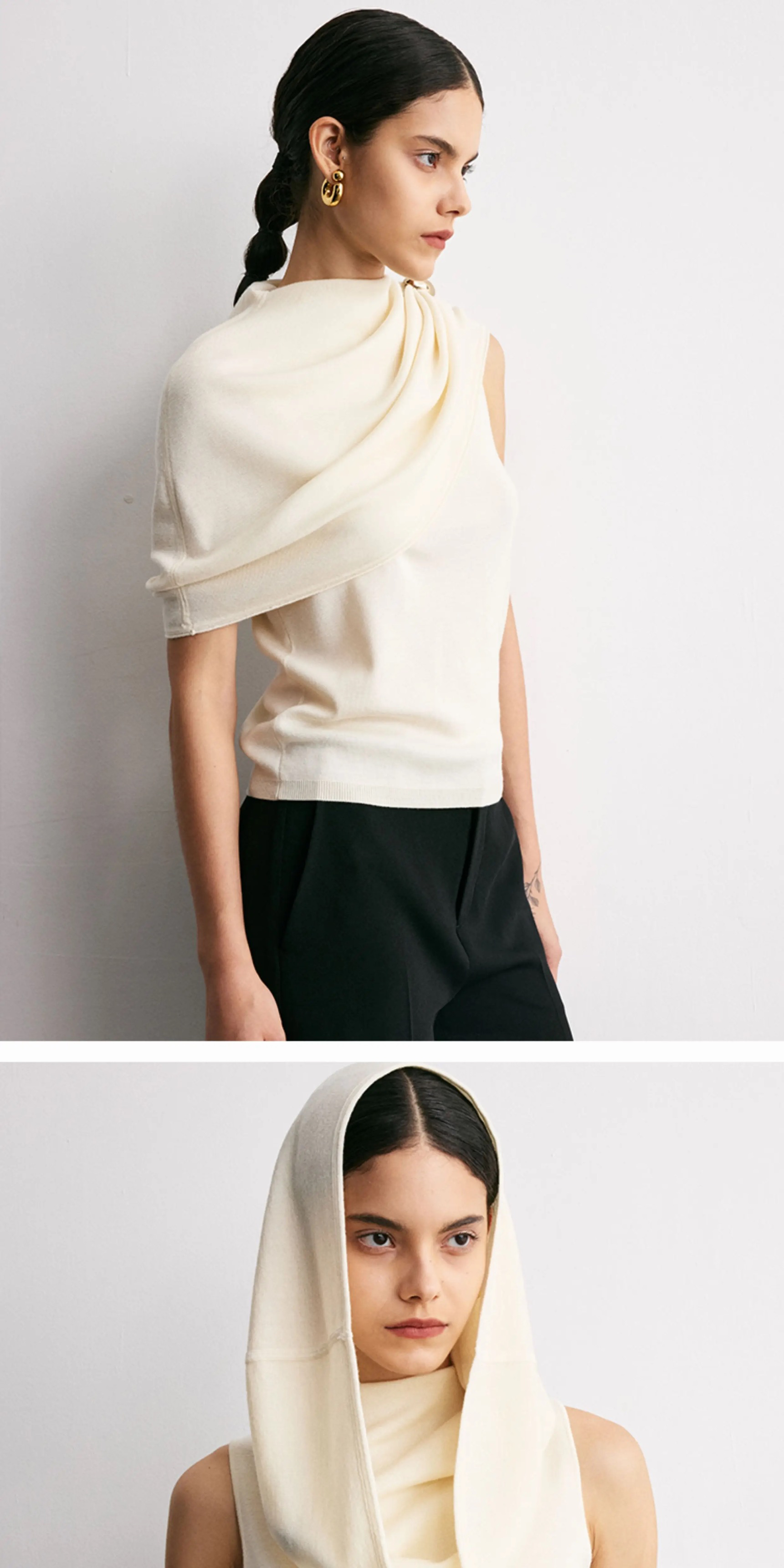 YANYI CHANG|91910941 可脱卸袖子披肩式 套头毛衫 [ 雅白 ]
