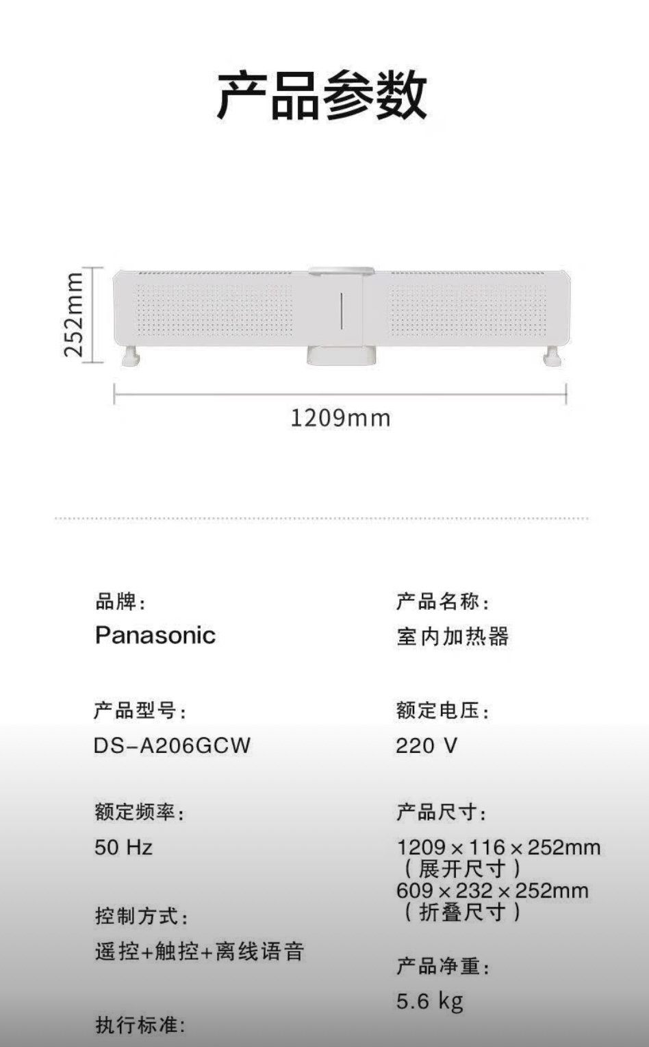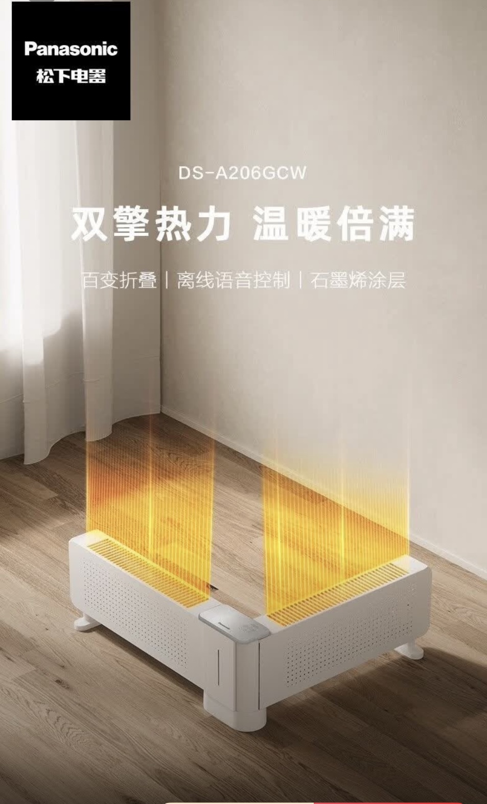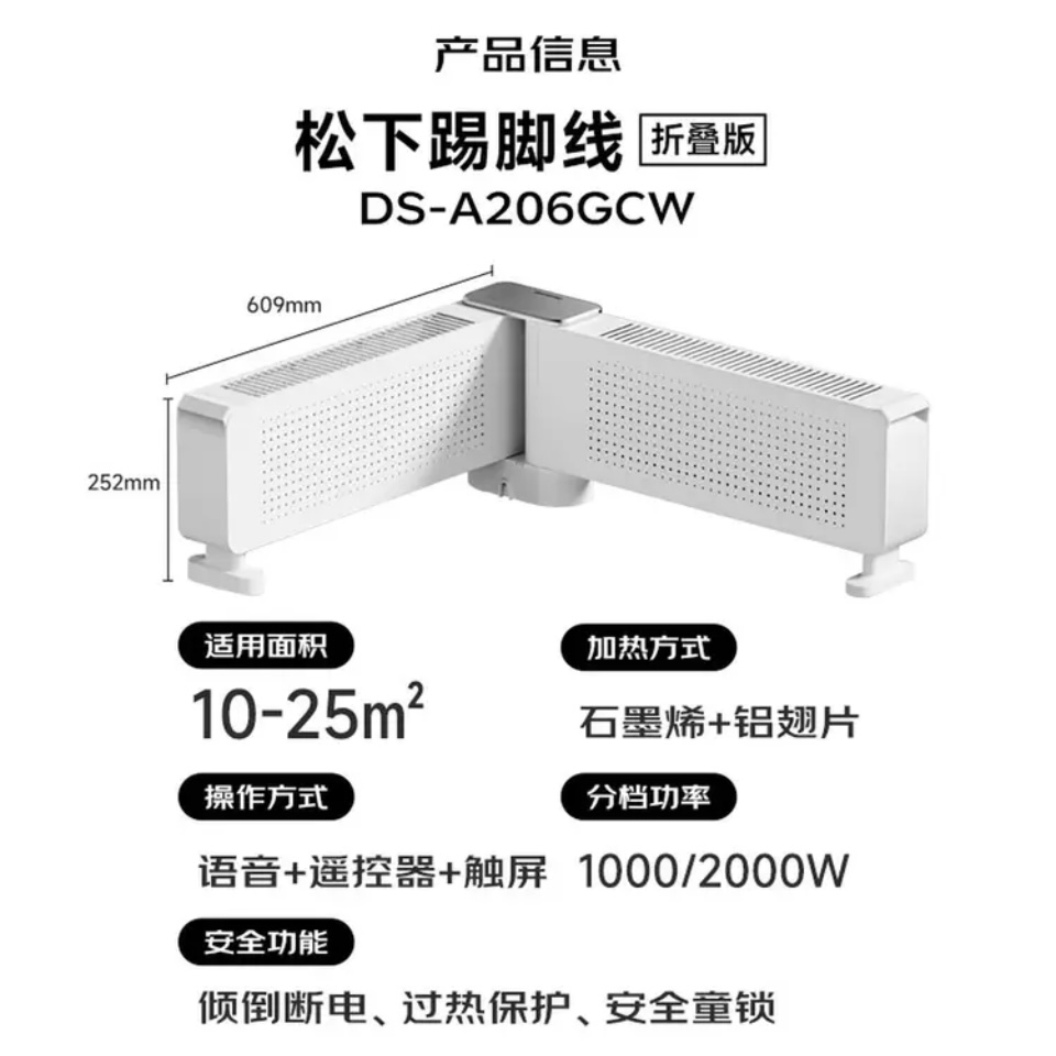 【春上新】10楼松下【智能语音】石墓烯百变折叠踢脚线取暖器防水防烫移动电暖 DS-A206GCW 吊牌价1999元 活动价1299元