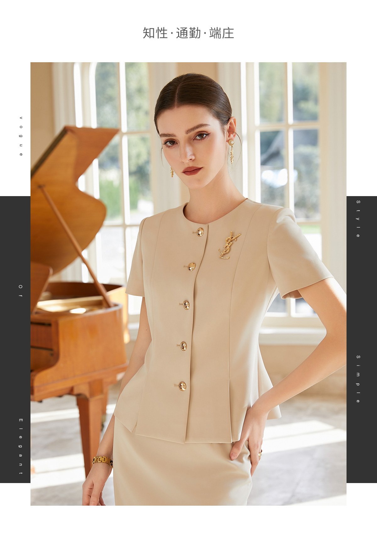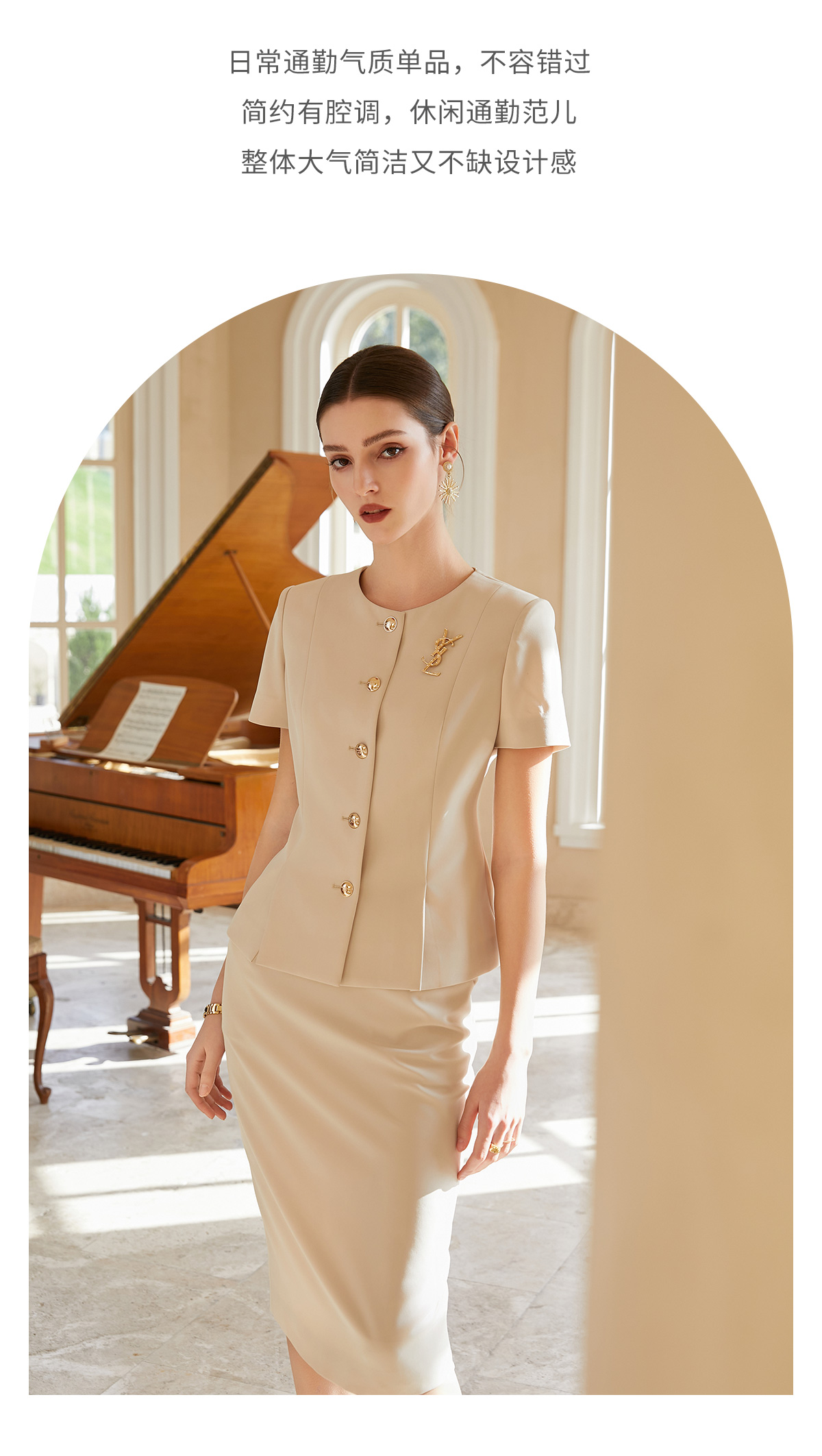 AD气质名媛范西装套装女总裁正装套裙2024夏季时尚韩版米色两件套