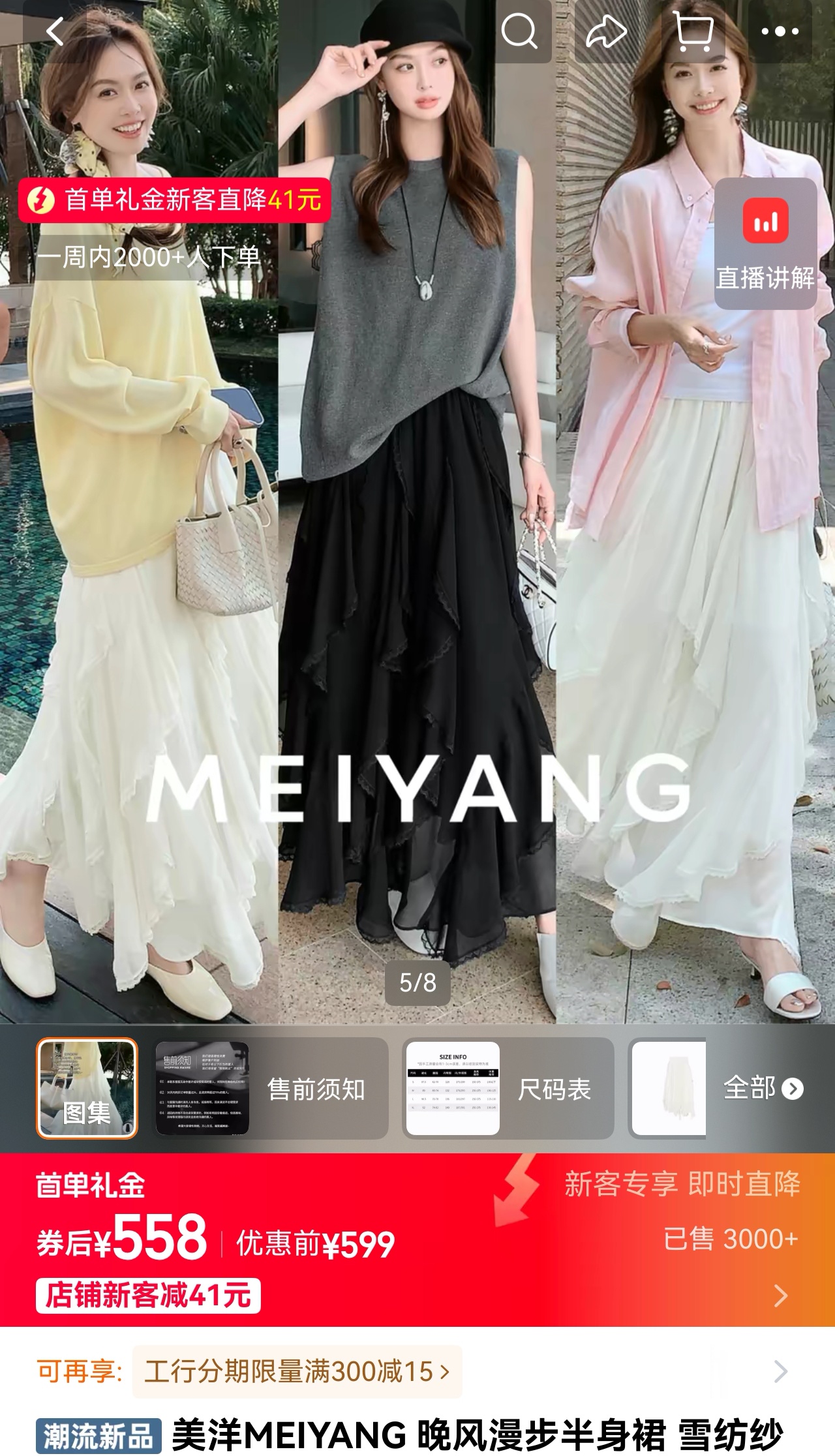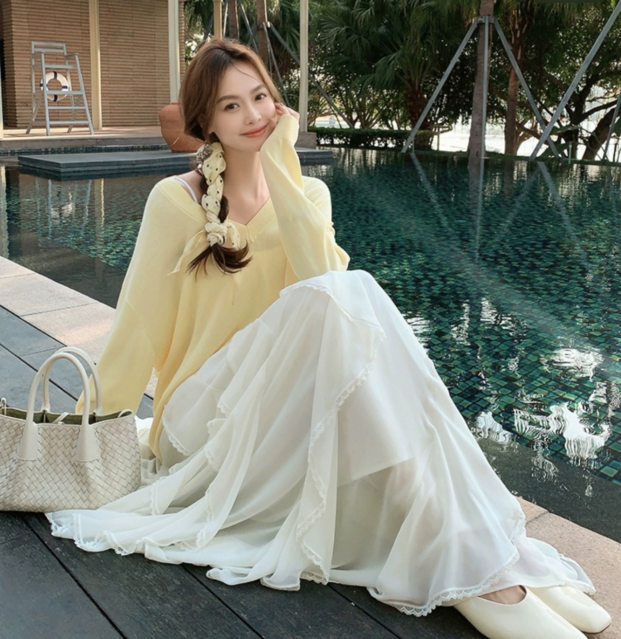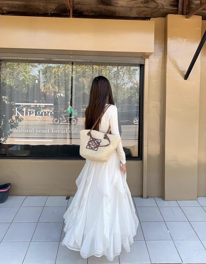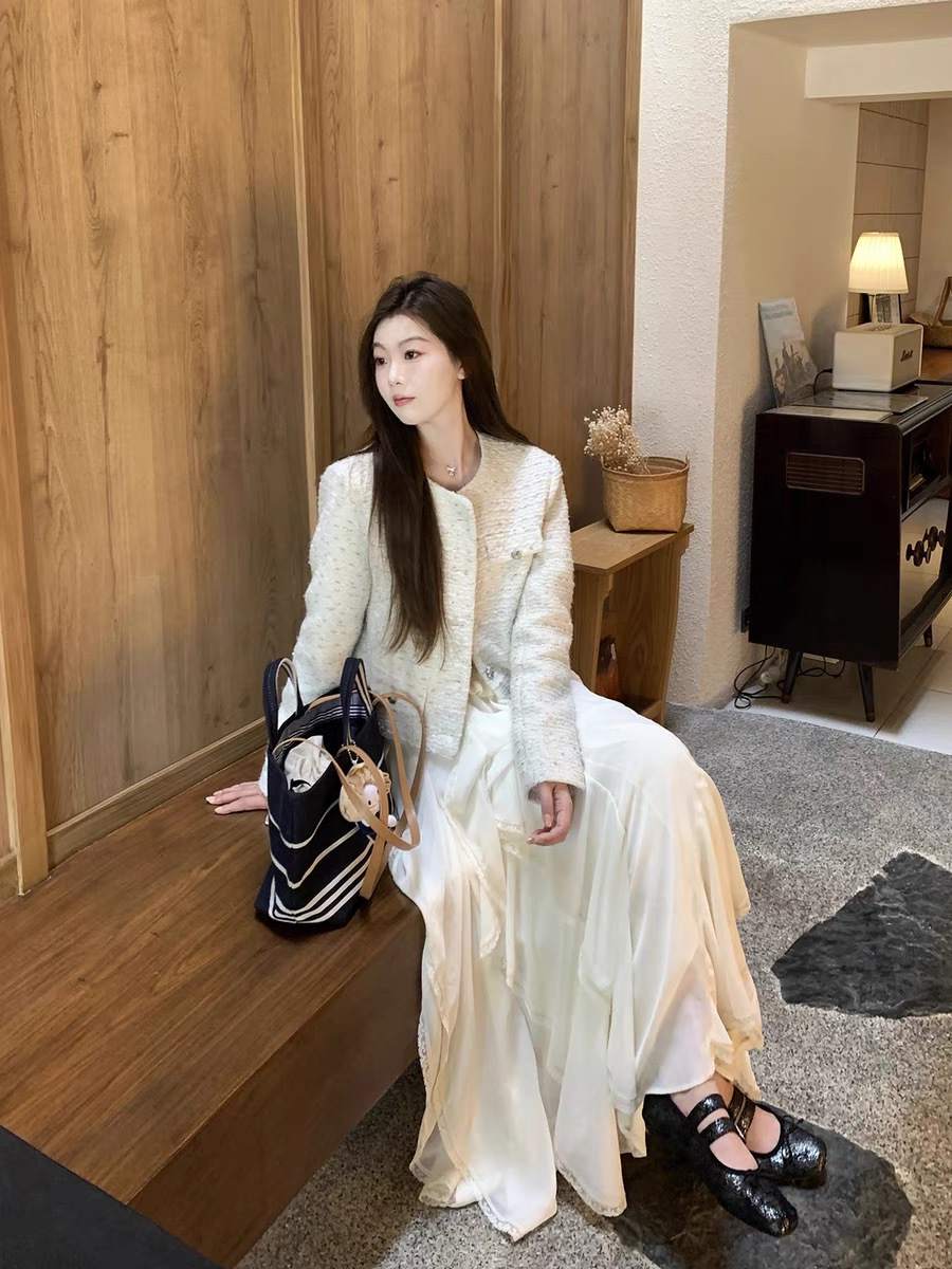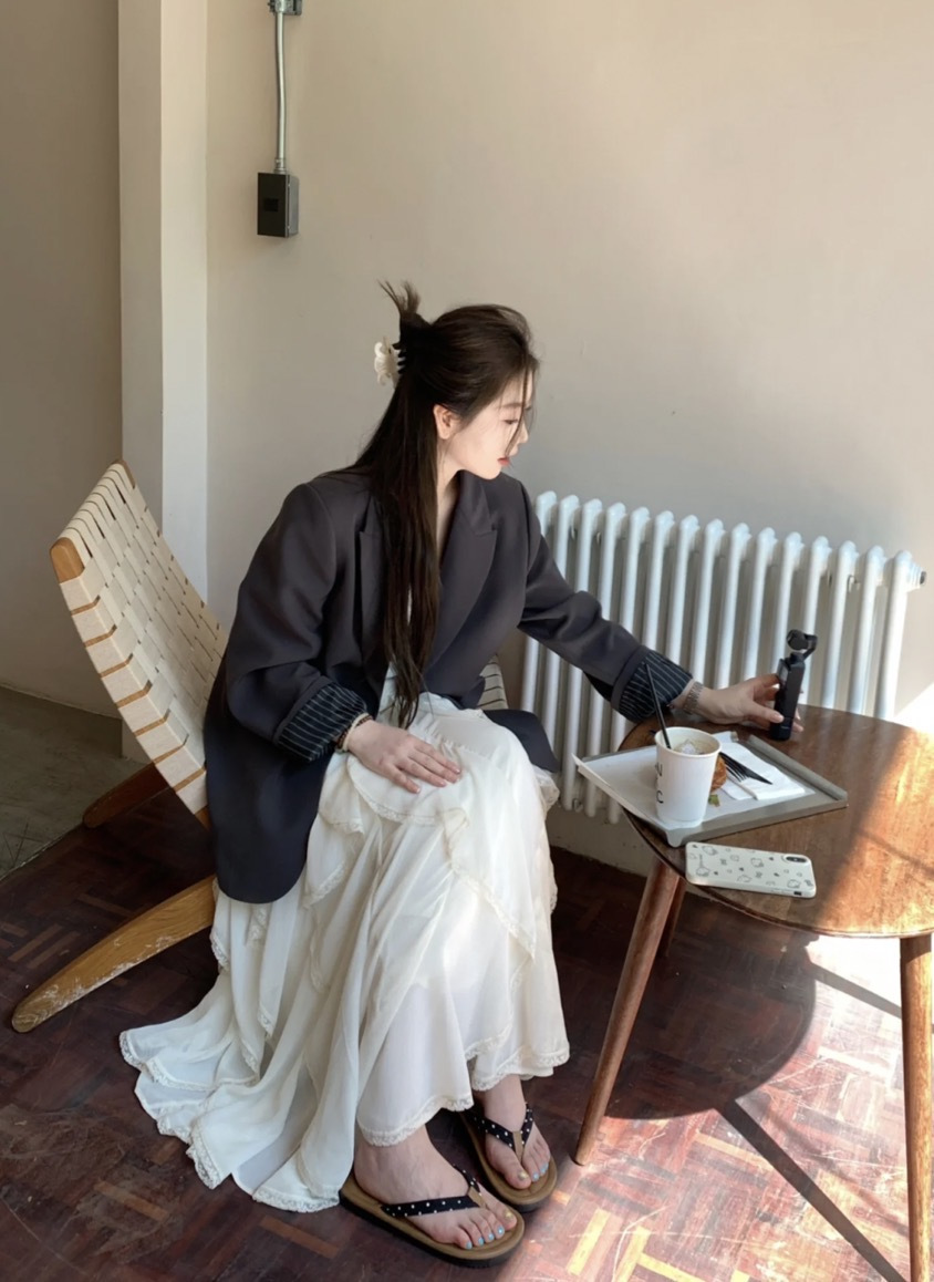 完全对得起重工!清透雪纺纹理面料轻盈飘逸,白色温柔得像融化的奶油~
