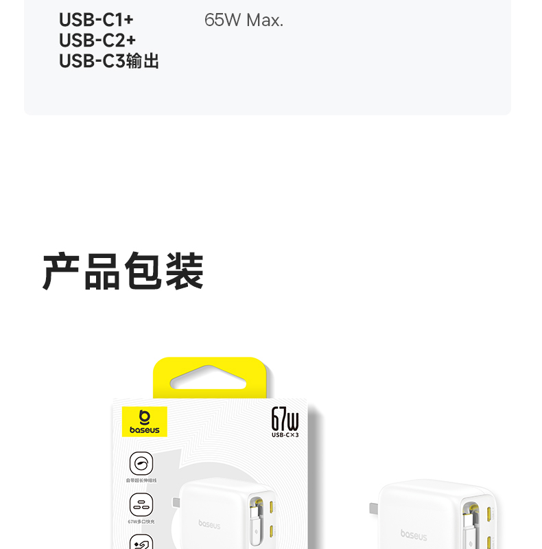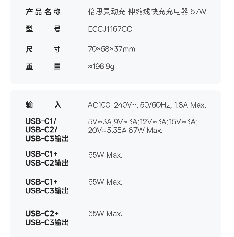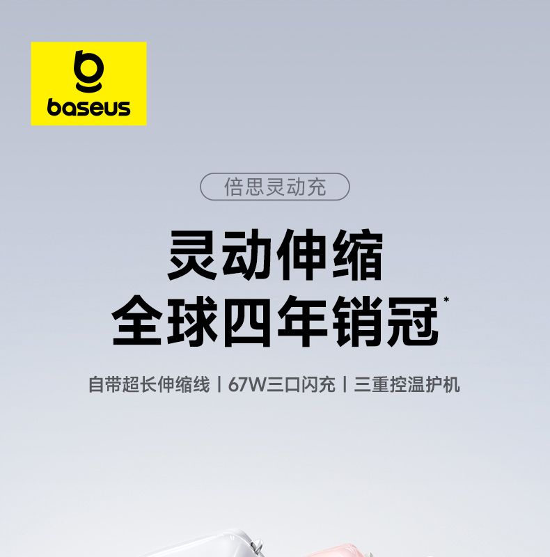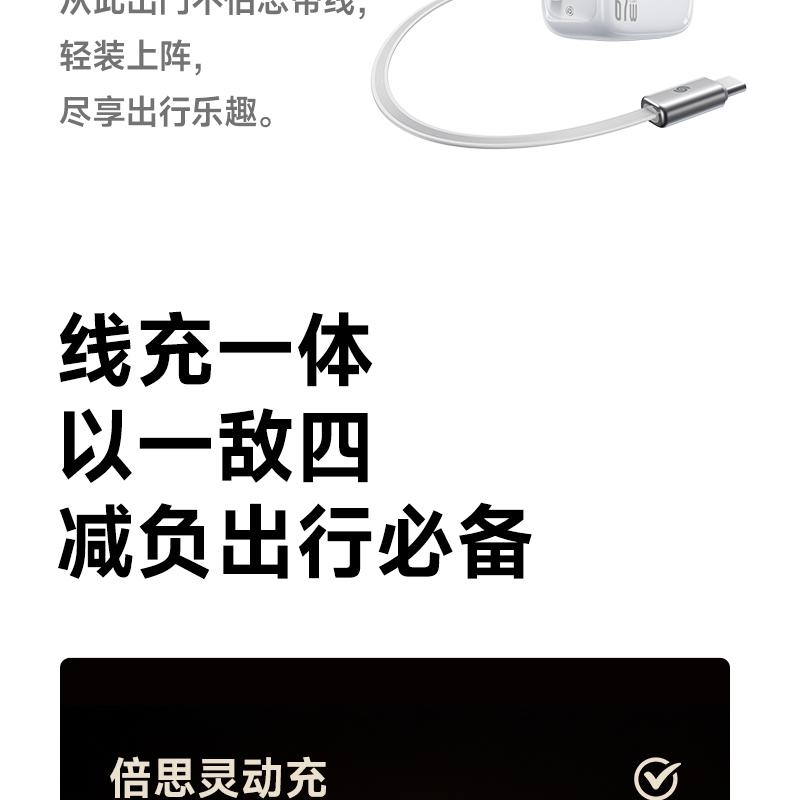 倍思灵动充 EnerCore CJ11 伸缩线快充充电器 3C 67W