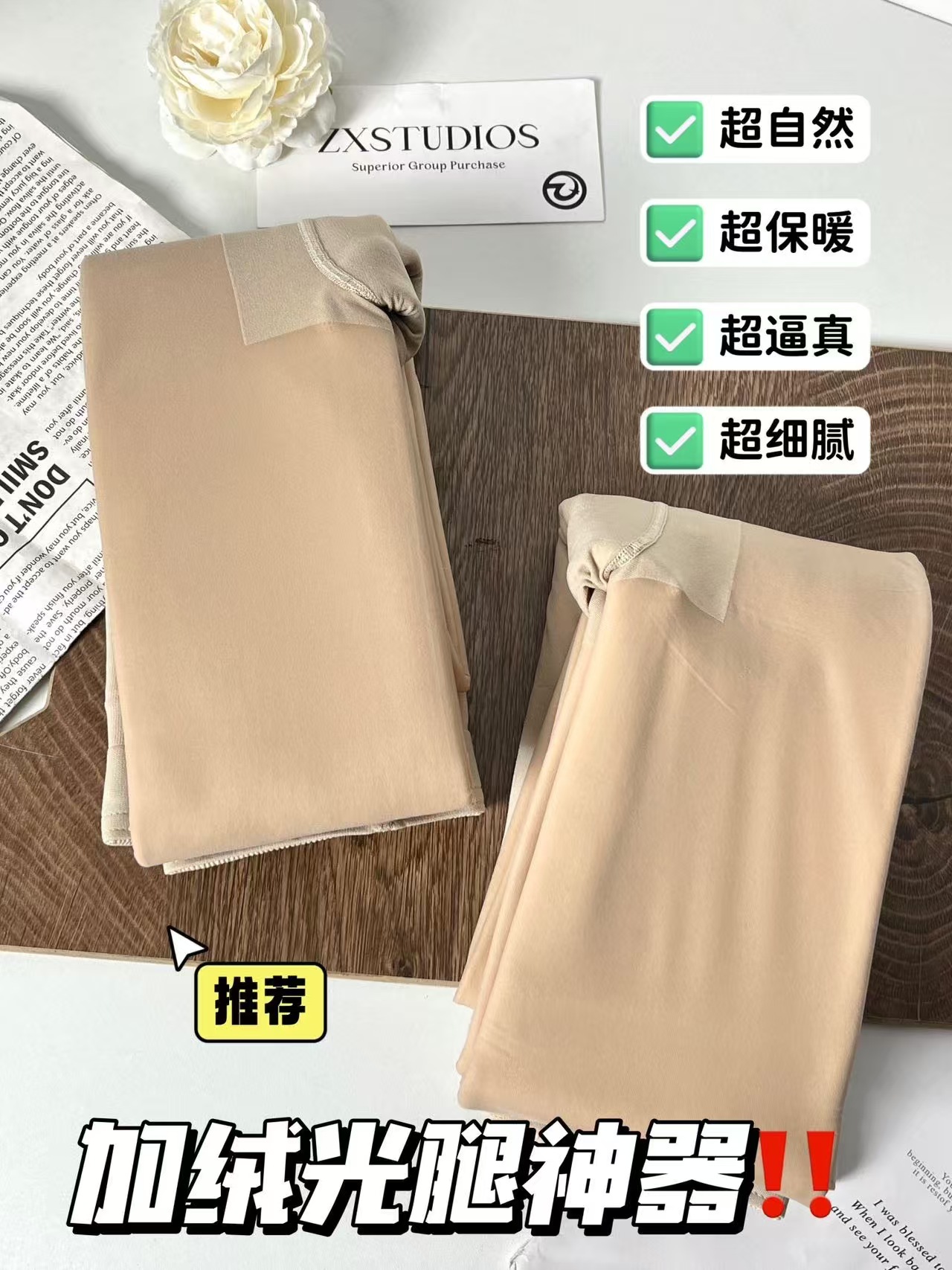 进口莱卡纱线,一键磨皮,蹲下不起褶微压塑形设计,提高臀部线条~ 强光不反光,肤色超自然,不假白!自然调肤色~