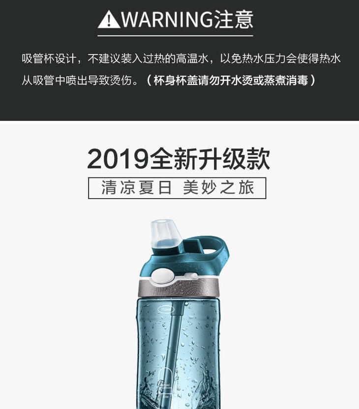运动水杯便携健身吸管杯 I 成人大容量户外水壶 密封升级
