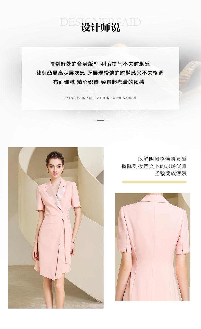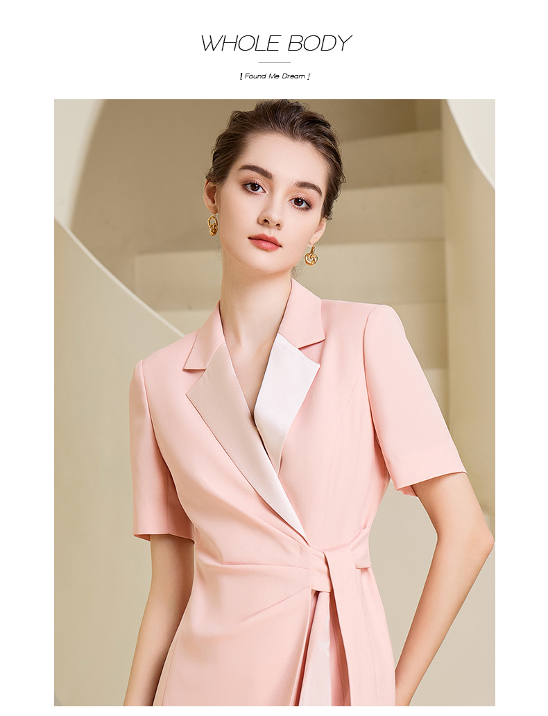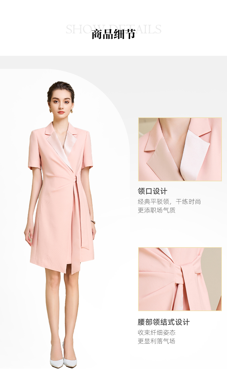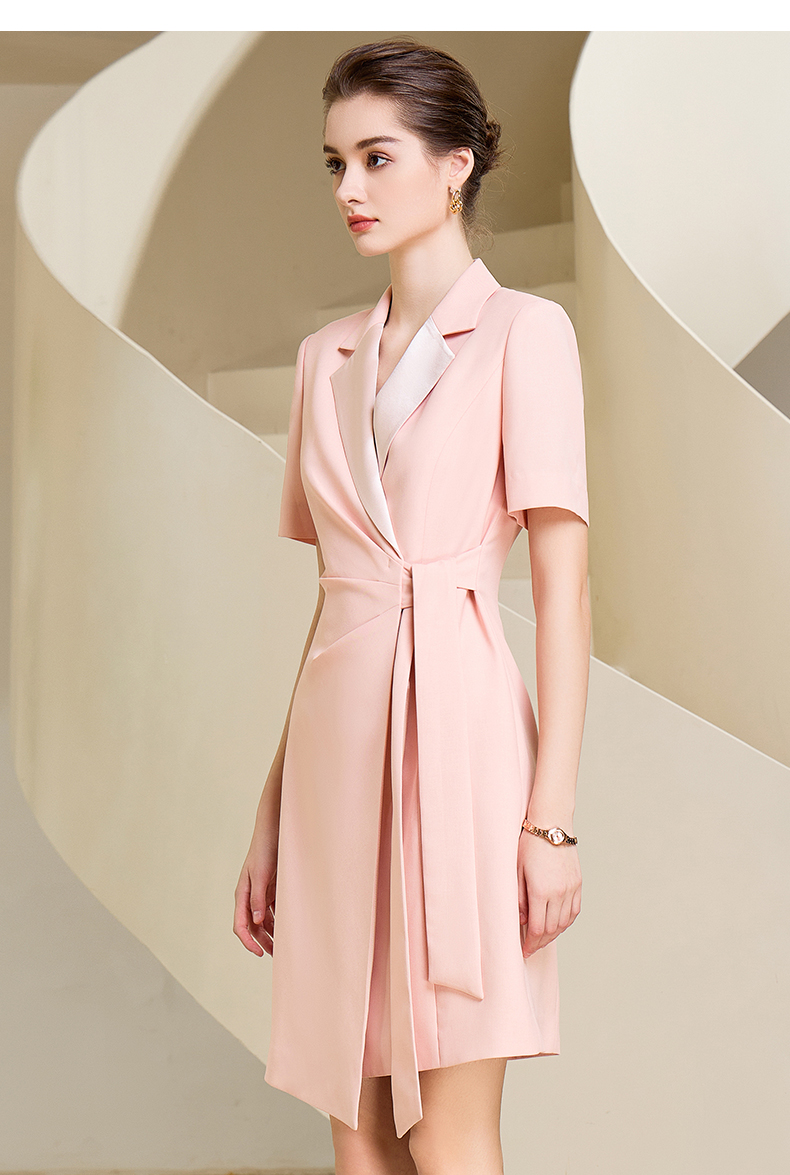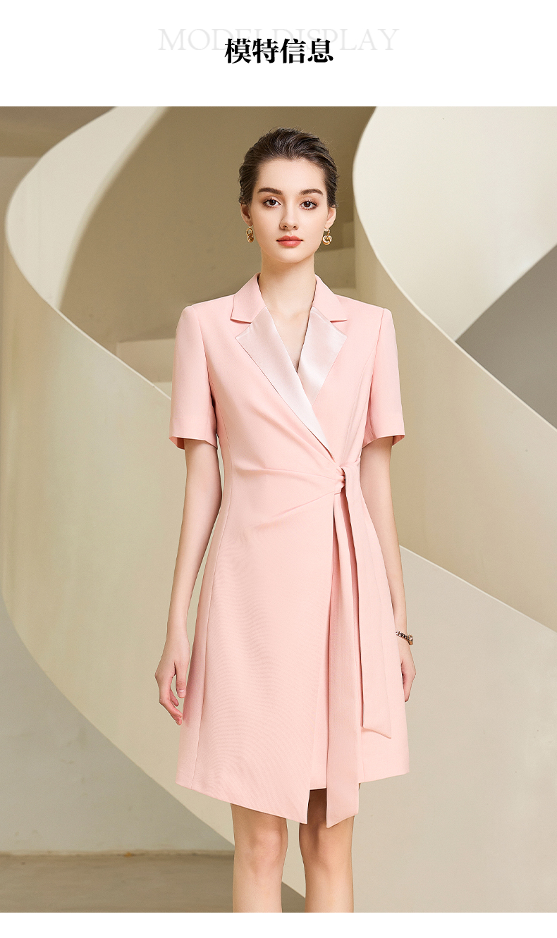 夏季高端粉色绑带连衣裙女短袖主持人职业装气质时尚
