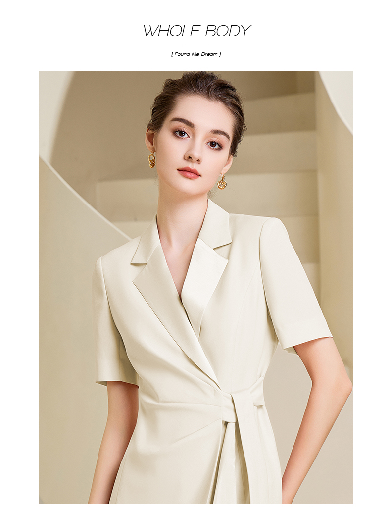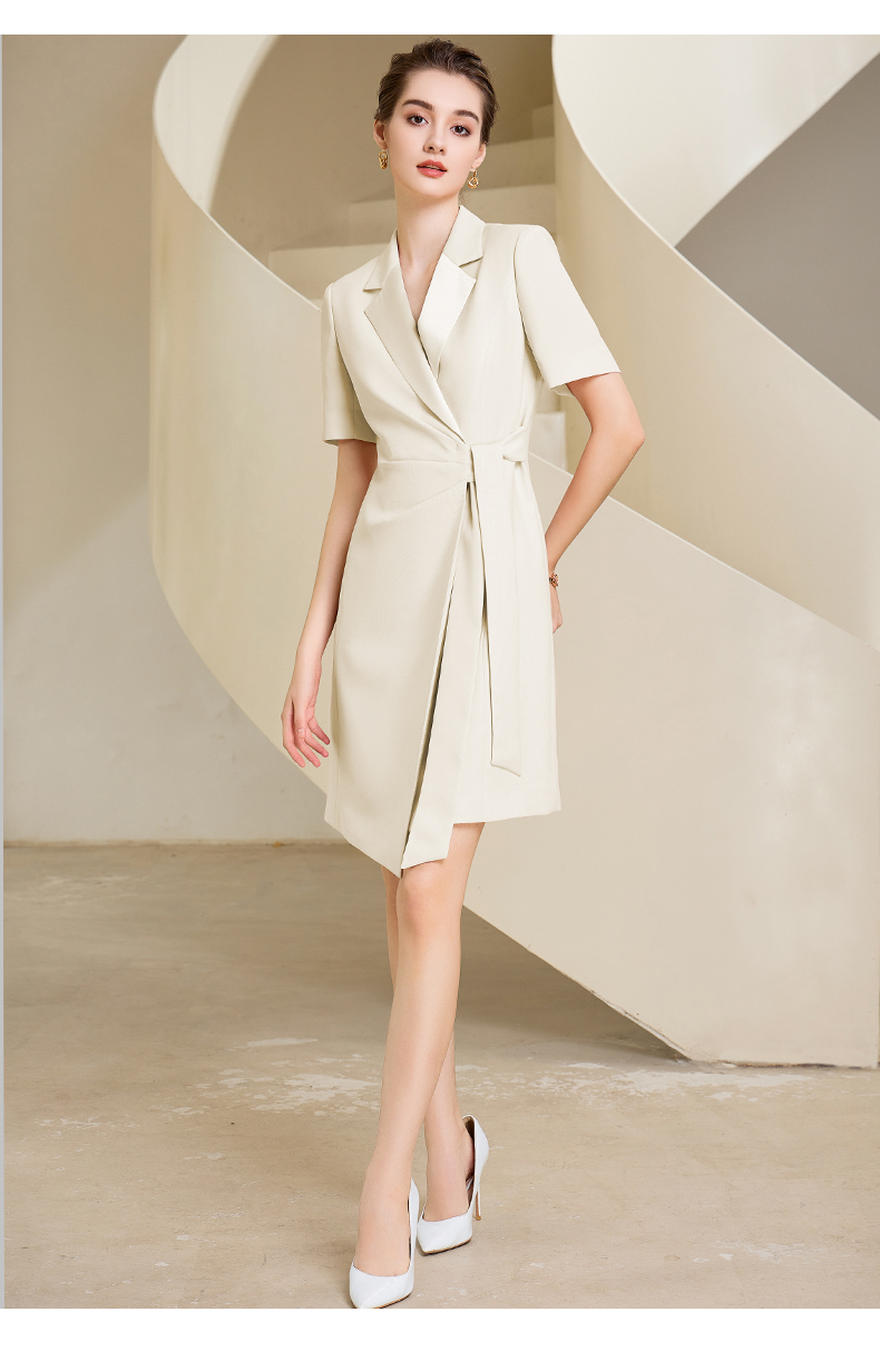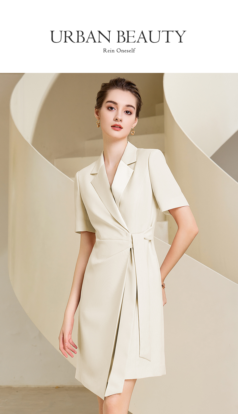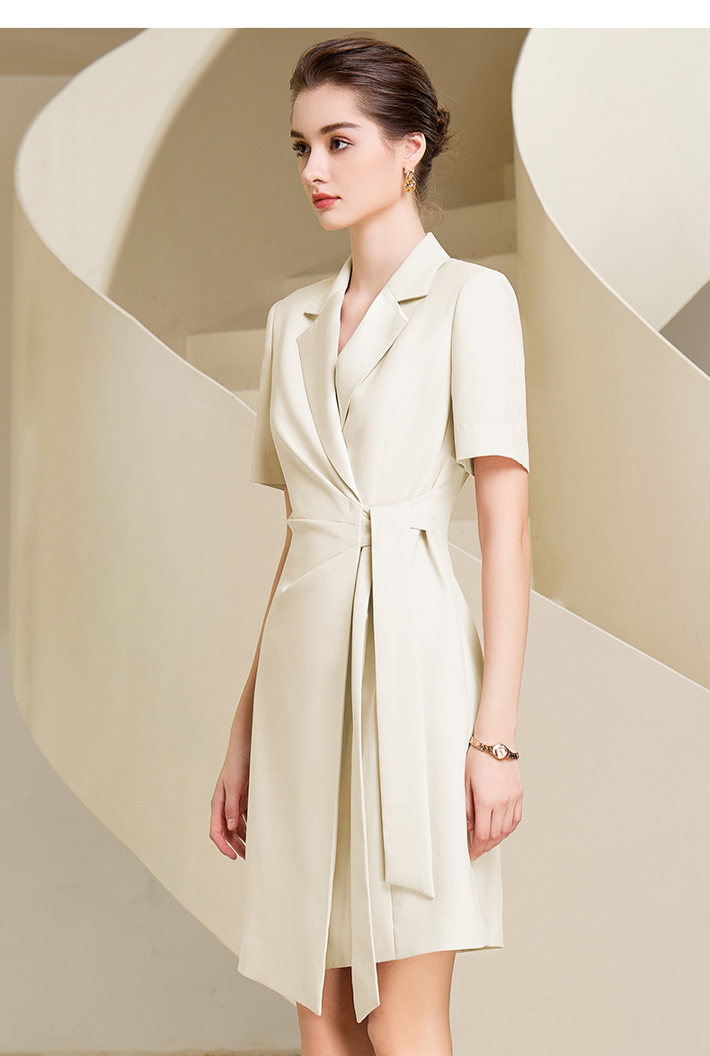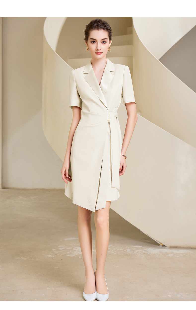 夏季高端粉色绑带连衣裙女短袖主持人职业装气质时尚
