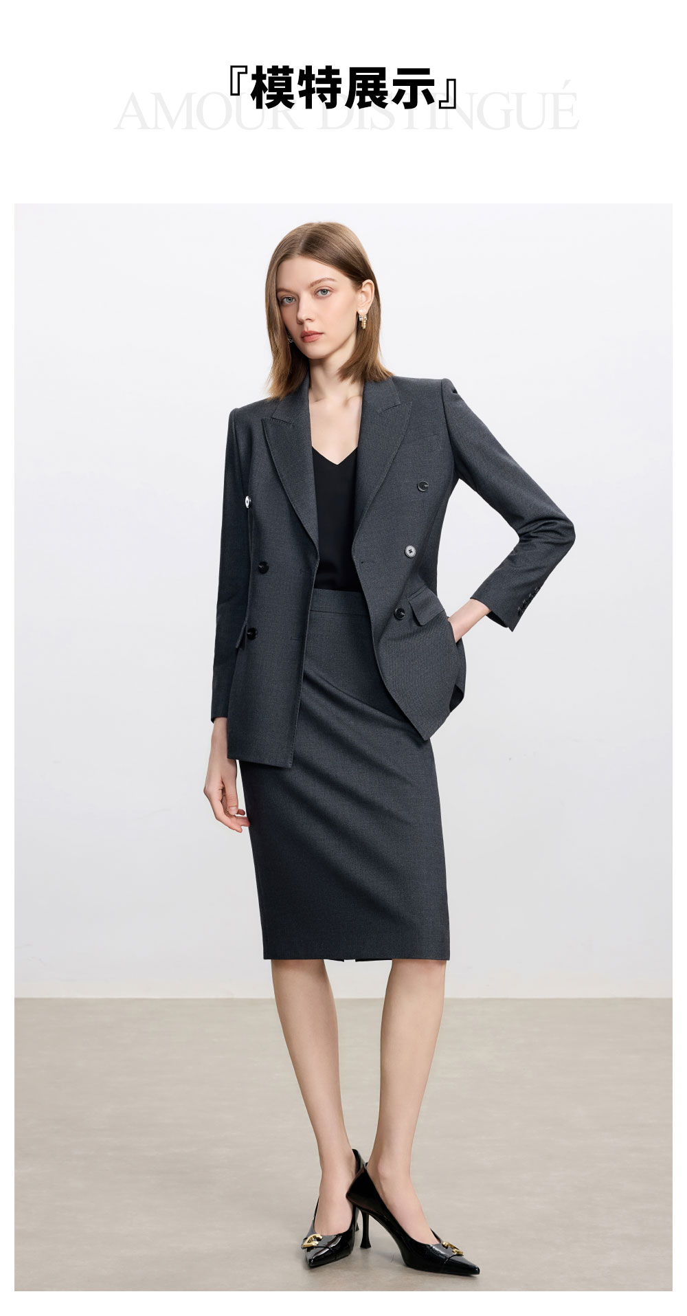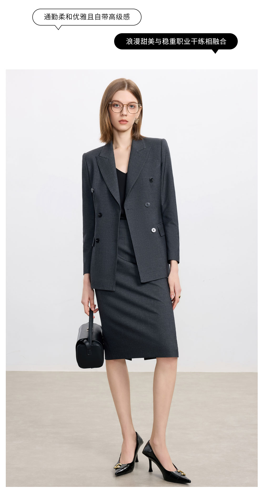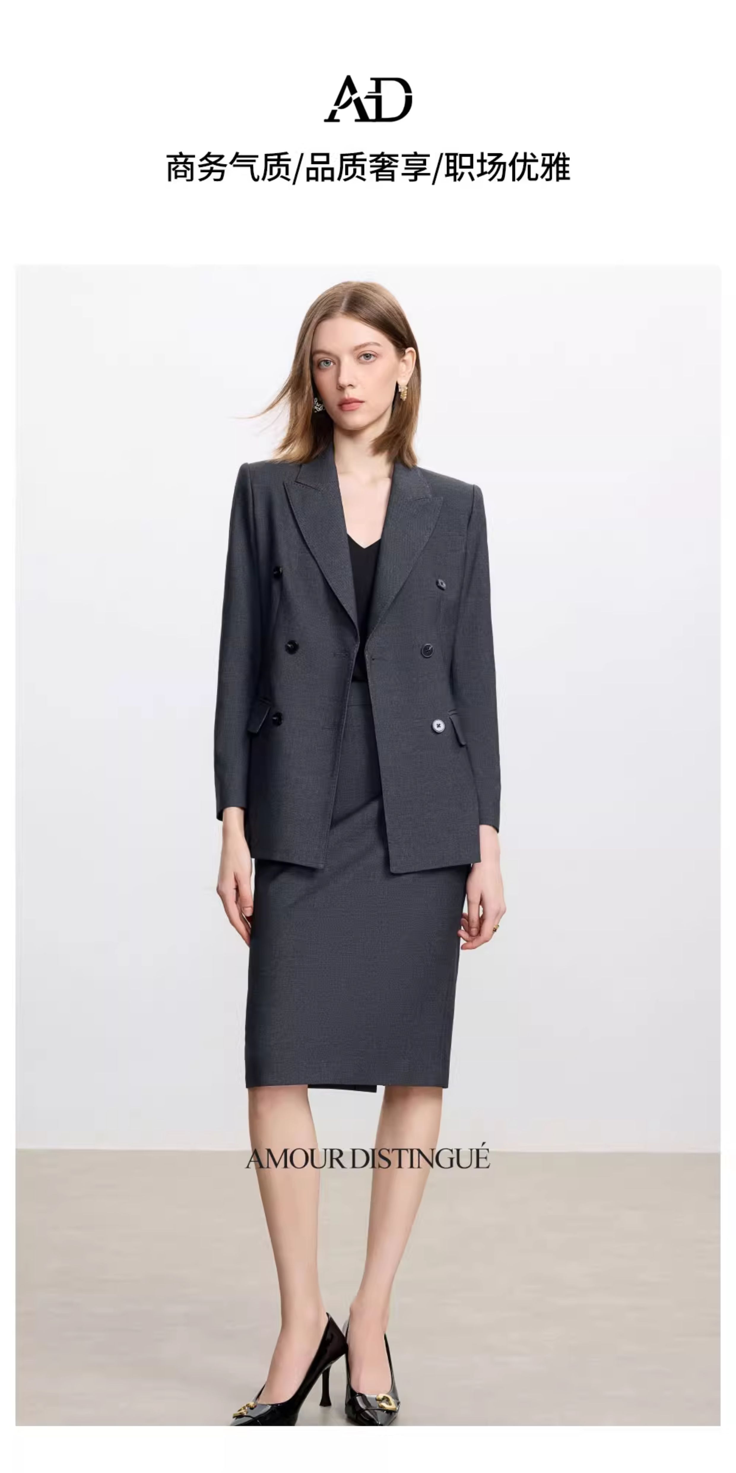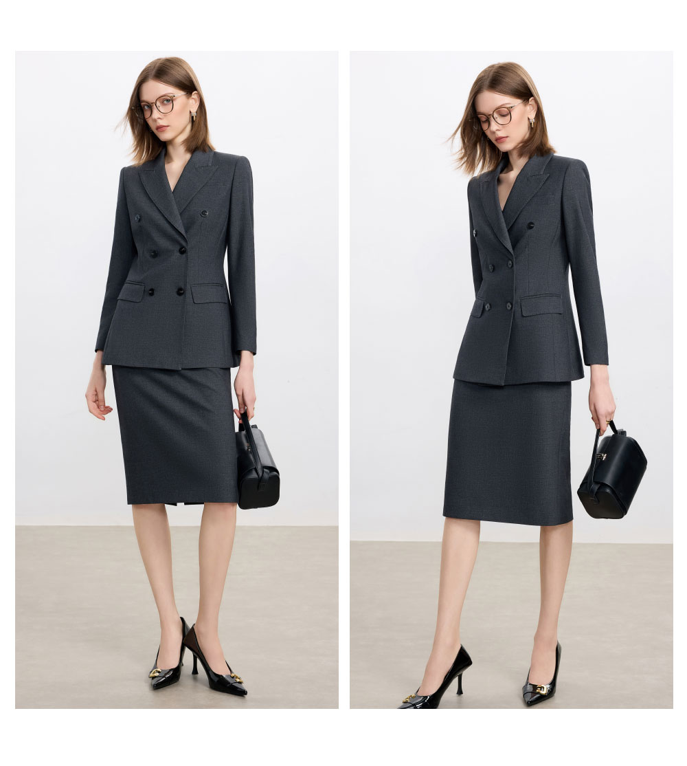 AD高级感碳灰色西装套装女2025新款气质名媛范职业装天丝羊毛半裙