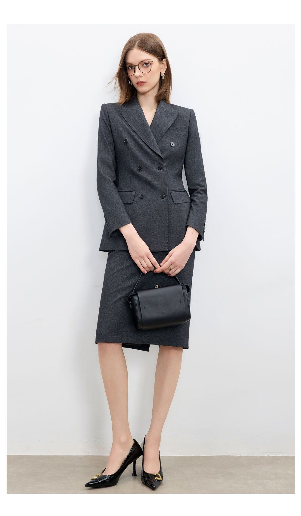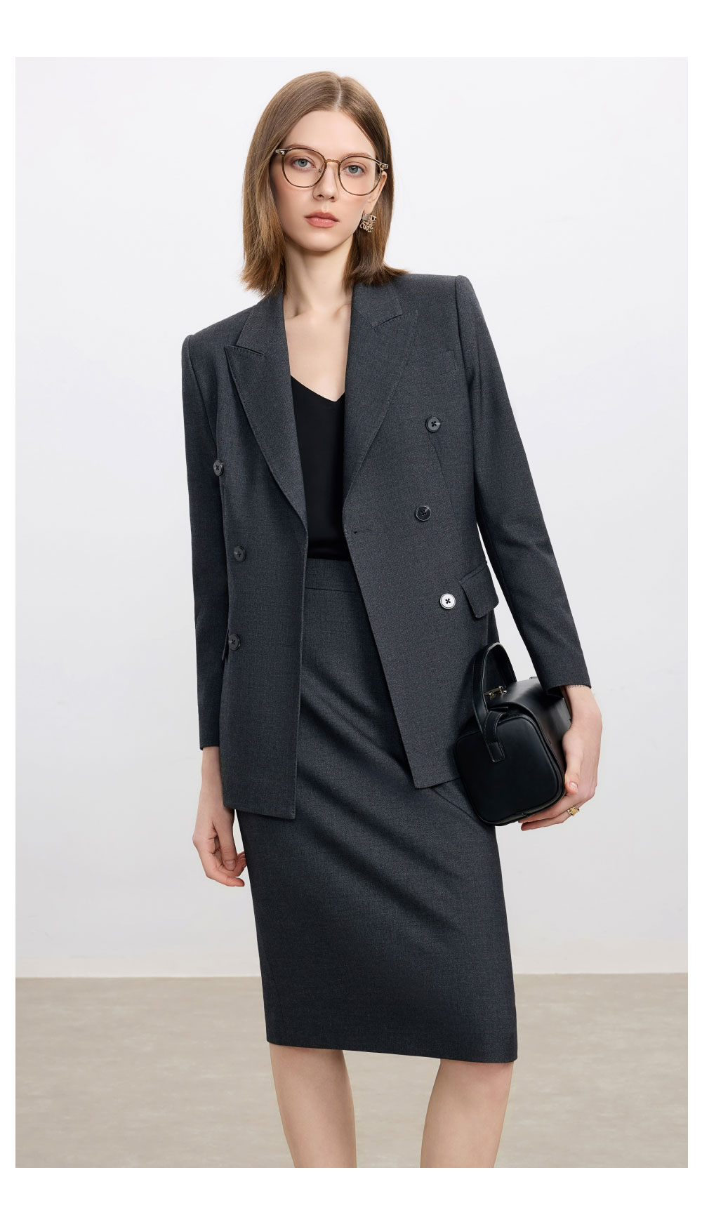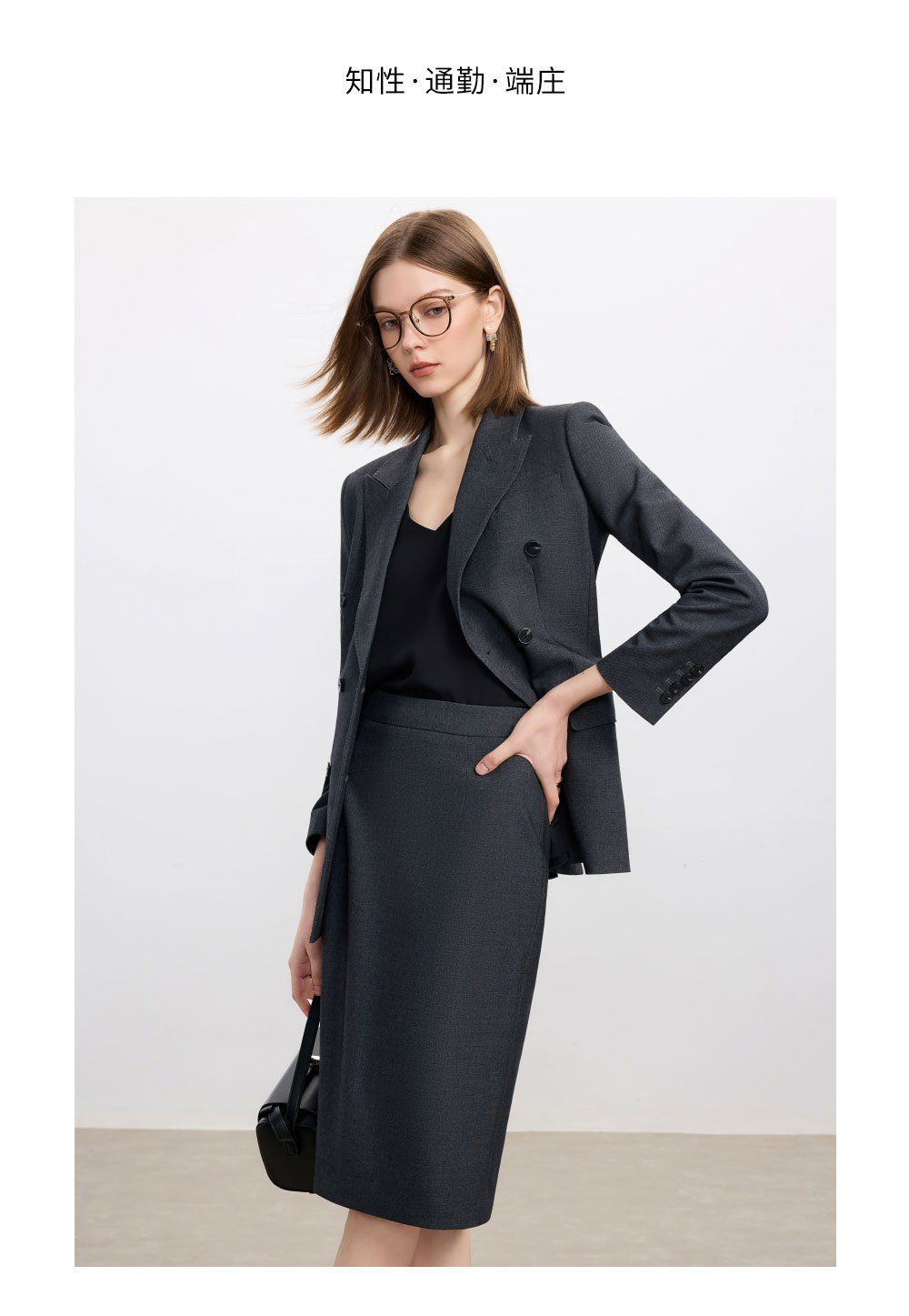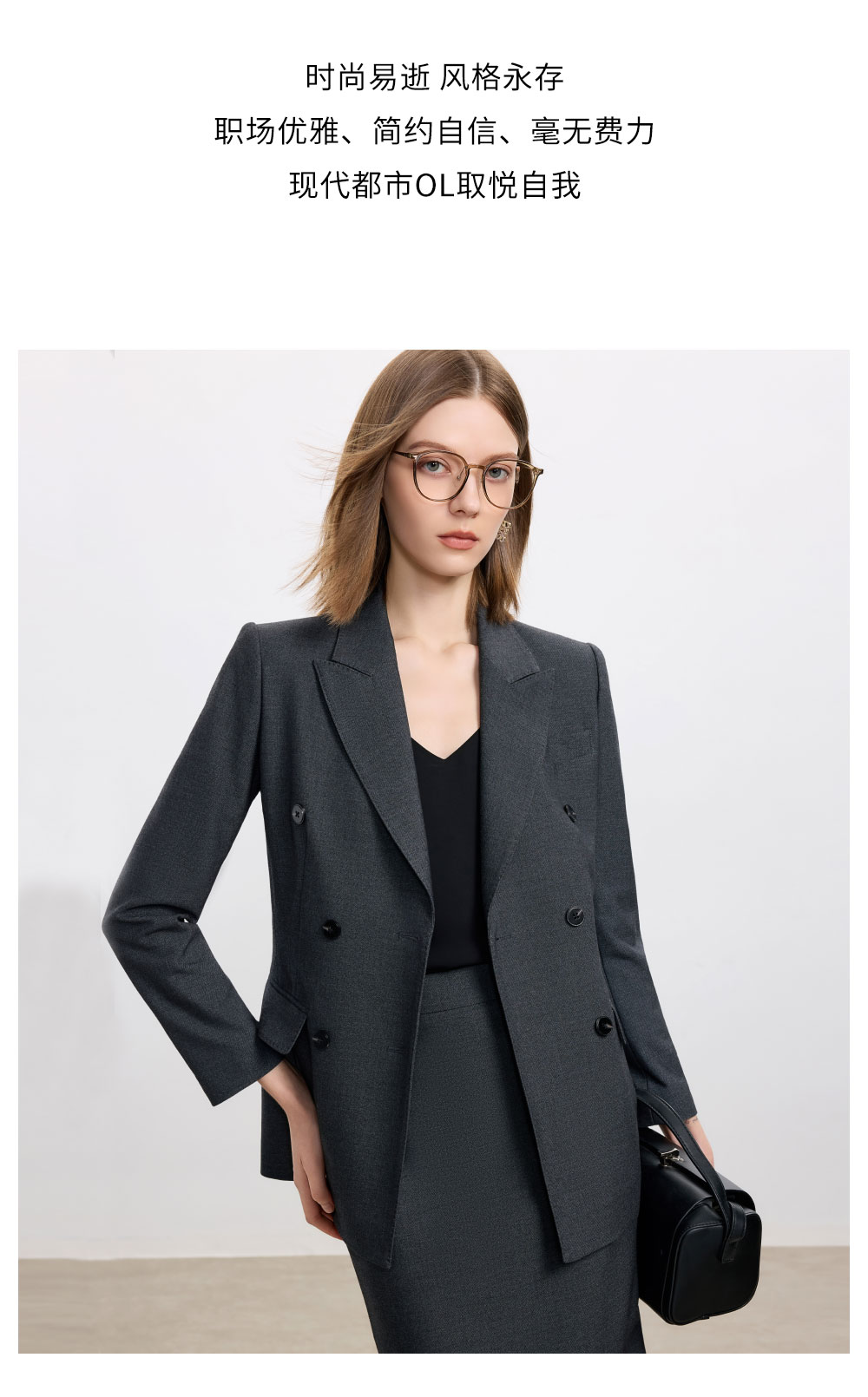 AD高级感碳灰色西装套装女2025新款气质名媛范职业装天丝羊毛半裙