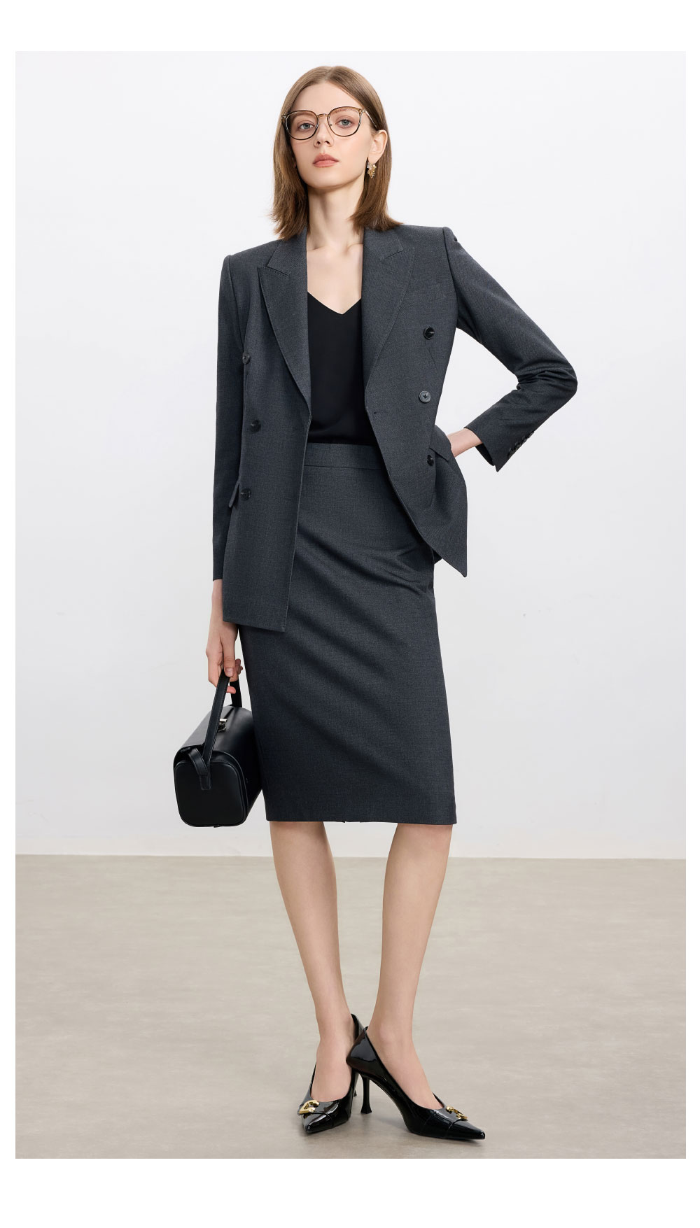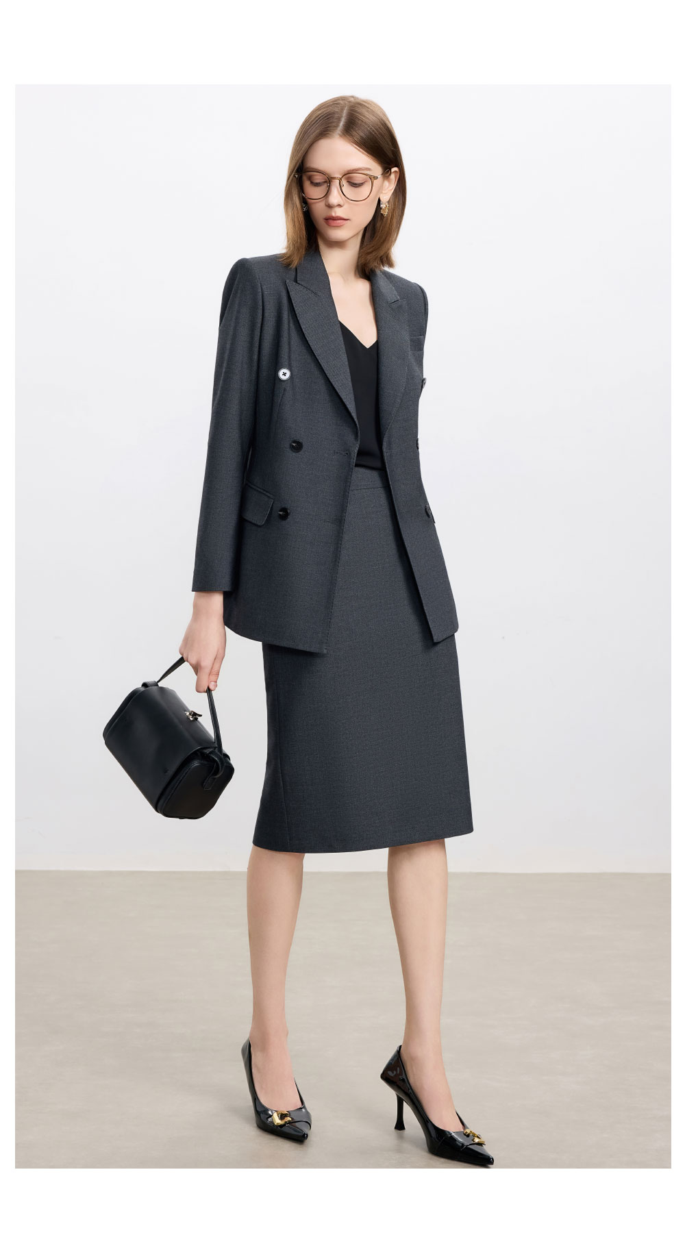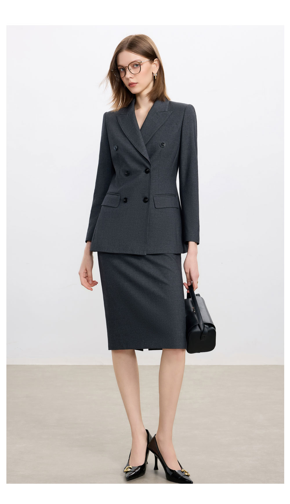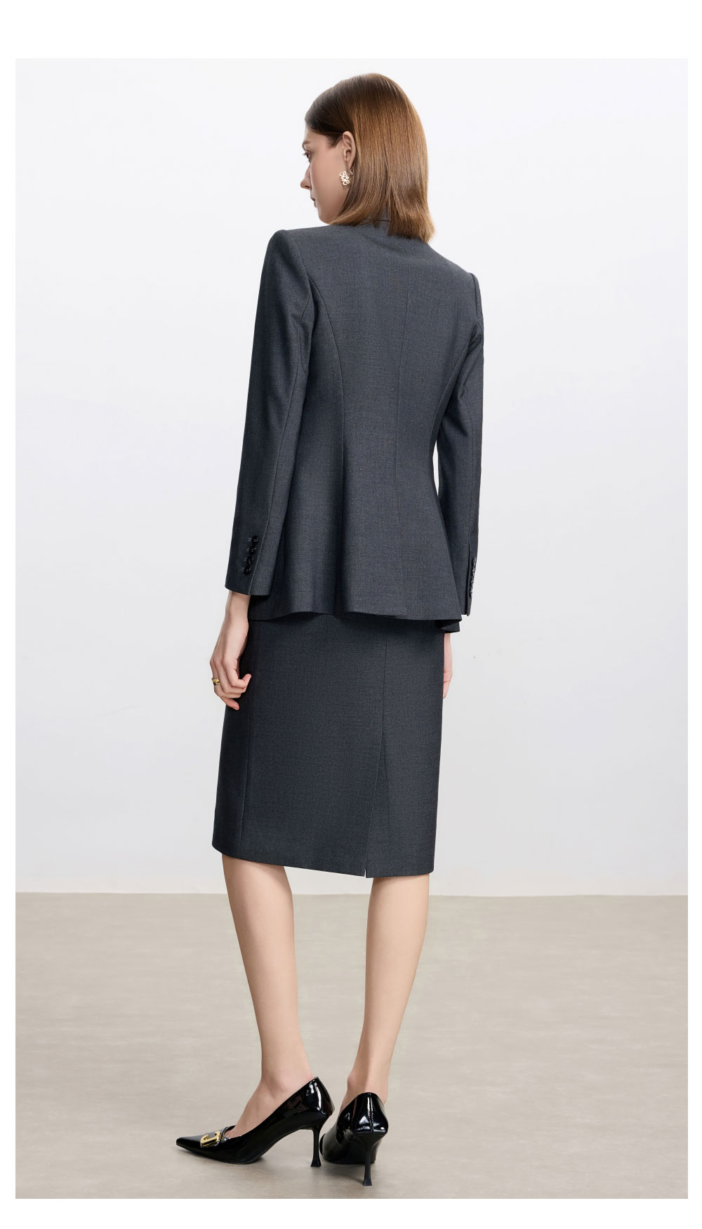 AD高级感碳灰色西装套装女2025新款气质名媛范职业装天丝羊毛半裙