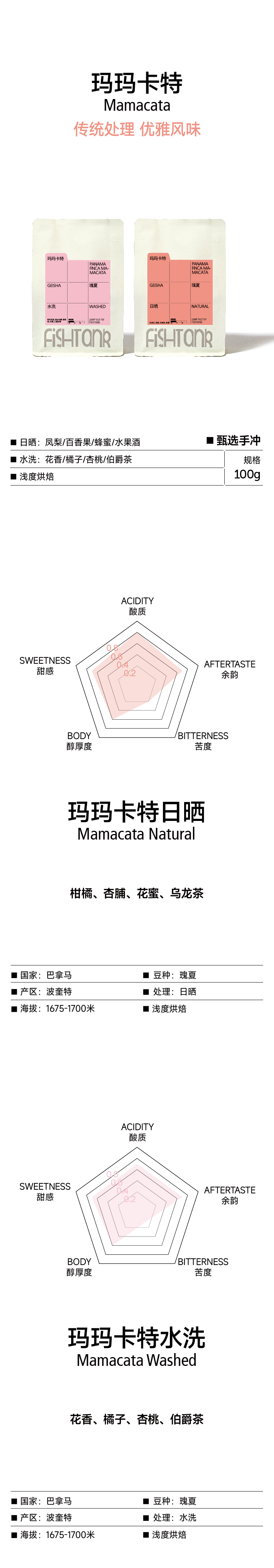 巴拿马 玛玛卡特瑰夏 水洗/日晒手冲咖啡豆