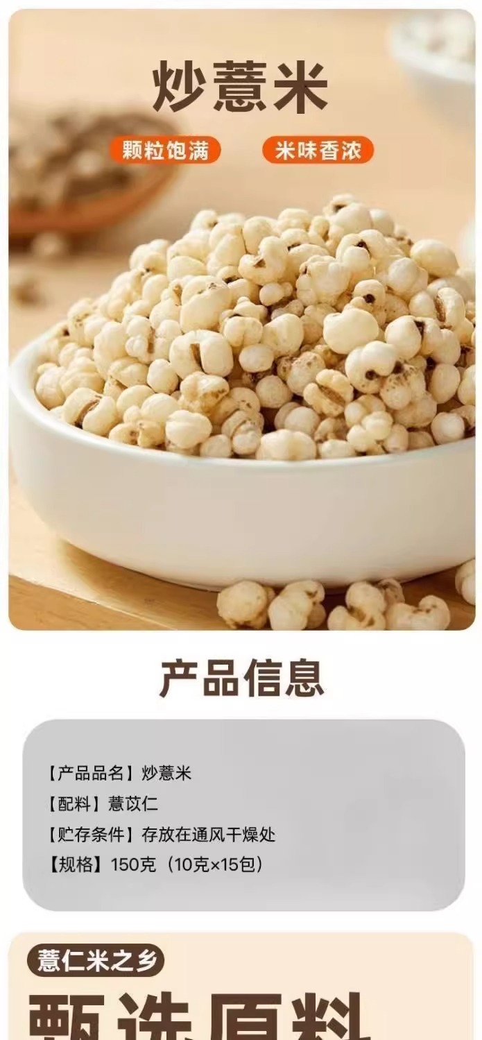 福东海 炒薏仁米150g 砂烫炒熟的意米花薏米膨化薏米