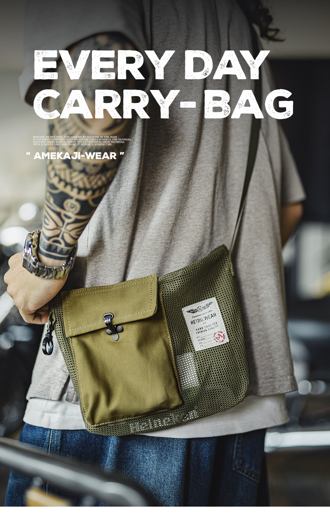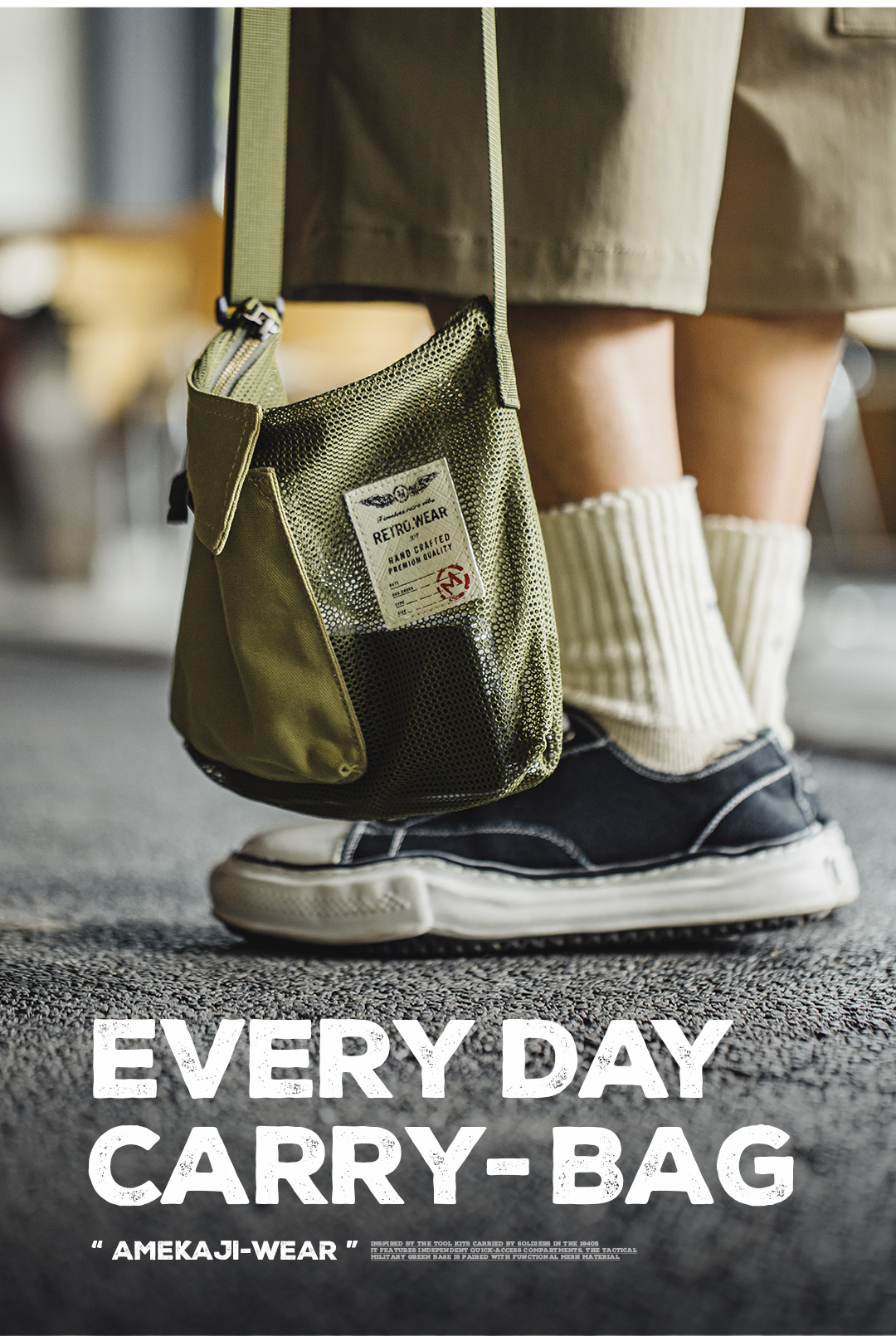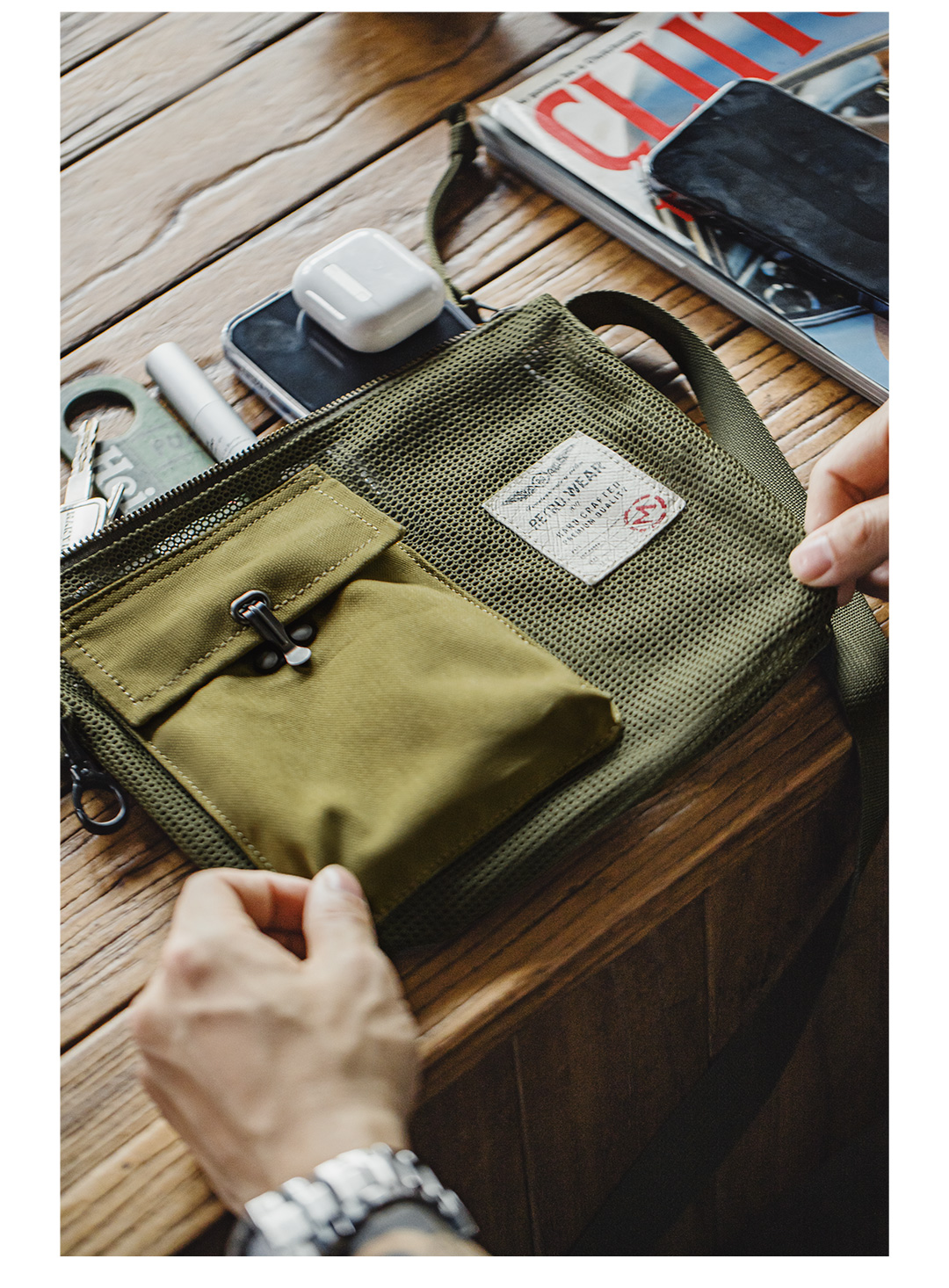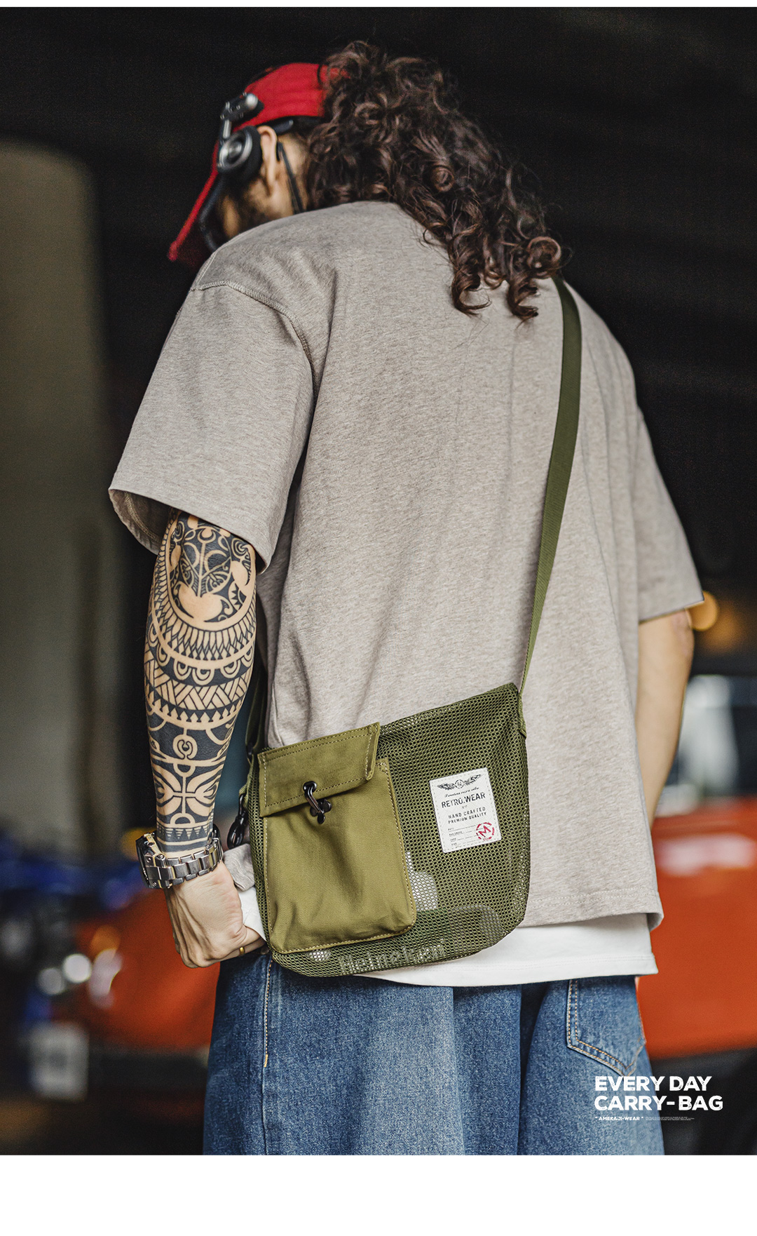 马登工装山系户外斜挎包小包轻便手拎包机能手提包网眼邮差包男夏
